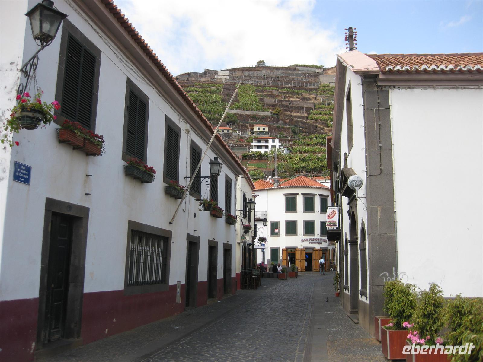 Wir fahren auf der Schnellstraße oberhalb Funchals direkt bis nach Ribeira Brava. Gegen 9.15 Uhr erreichen wir das kleine Städtchen im Tal und am Fluss Ribeira. Als erstes besuchen wir die Pfarrkirche Sao Bento. Wir sind noch rechtzeitg da, um sie von innen zu bewundern, denn um 10.00 Uhr beginnt der Gottesdienst. Dann bummelt jeder durch das Städtchen. Sehr schön ist es an der Uferpromenade. Hier laden kleine Restaurants zum Verweilen ein.