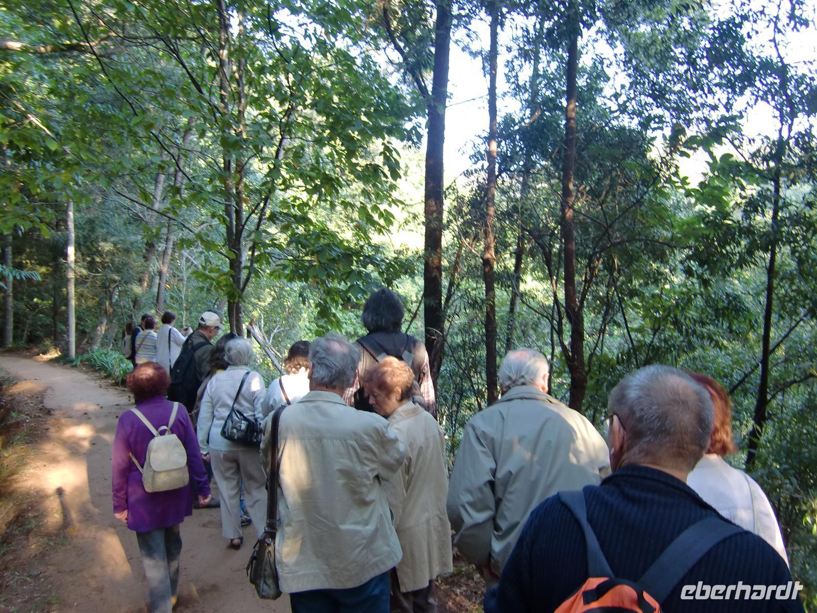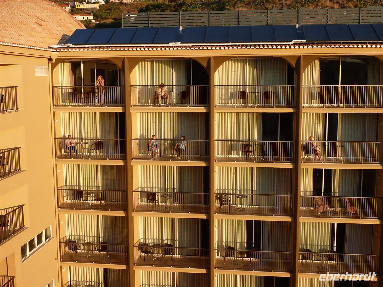 Für heute stand unser Aktivausflug auf dem Programm. Wir wurden wieder 9 Uhr vom Hotel abgeholt und fuhren zum Vale Paraíso (Paradiestal) wo wir unsere kleine Levadawanderung begannen. Levadas sind künstlich angelegte Bewässerungskanäle, die dazu beitragen das Regenwasser auch in die sonst so trockenen Ribeiras und Küstenregionen zu befördern. Auf dem Weg konnten wir wieder die vielfältige Fauna Madeiras betrachten. Auf halber Strecke nach Rochão machten wir eine Kaffeepause. Viele ließen sich auch hier eine köstliche Poncha schmecken. Nach der Pause konnte man wählen ob man weiter wandern oder mit dem Bus schon zum nächsten Treffpunt fahren möchte. Der Wanderweg führte weiter entlang einer Levada. Wir kamen vorbei an Verkaufsstnden und gelangten dann ins Tal nach Rochão, wo Paulo schon mit dem Bus auf uns wartete. Wir fuhren zurück zum Hotel, wo jeder seine freie Zeit ganz individuell nutzte. Einige ergriffen auch die Gelegenheit sich im Zentrum Canicos absetzen zu lassen. Dort konnte man unter anderen die wunderschöne Gartenanlage der Quinta Splendida, der Unterkunft unserer Wiederholerreise, besichtigen. Zum Abendessen gingen wir in das nahegelegene Restaurant „Le Buffet“, eine Top-Adresse wenn es um die Qualität des Essens geht. Das Restaurant, welches von Robert, einem deutschen Koch betrieben wird, ist mittlerweile ein Geheimtipp in vielen Madeira-Reiseführern und das zu Recht, wie wir bei unserem Besuch feststellen konnten. Nach dem Besuch im Restaurant erwartete uns ein traditionelles Folkloreprogramm im Hotel. Leider mit gut einer Stunde Verspätung kamen die Musiker im Hotel an und führten typische Tänze auf. Zum Ende der Veranstaltung wurde das Publikum mit einbezogen und so fanden sich schon nach kurzer Zeit auch Mitglieder unserer Reisegruppe auf der Tanzfläche wieder und versuchten den für uns fremdem Tanzstil zu folgen. Den Zuschauern hat das riesigen Spaß gemacht.