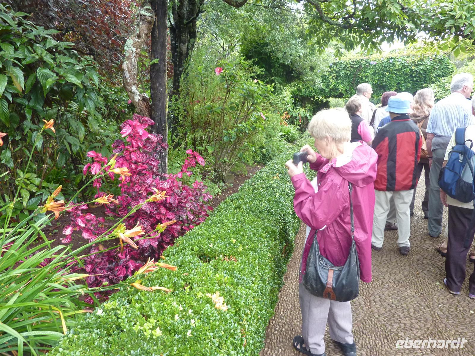 Für viele Gäste Madeiras ist die einzigartige Blumenvielfalt auf der Insel im Atlantik DER Reisegrund. Am heutigen Tag wollten wir diese Pracht in geballter Form besichtigen und so standen drei Gärten auf dem Programm, der Orchideengarten, der Blandy's Garten und der Stadtpark in Funchal. Als erstes besuchten wir den "Jardin Orquídea", wohingegen die andere Gruppe zuerst zum Blandy's Garten fuhr.Der Orchideengarten wurde von der Familie Pregetter gegründet und beschäftigt sich nun schon in der 4. Generation mit Pflanzenforschung und Neuzüchtungen. Als erstes bekamen wir ein kurzes Seminar zum Thema Orchideenhaltung und lernten dabei, dass Orchideen Biertrinker sind Nach dem Vortrag hatten noch Freizeit, so dass wir uns ganz individuell noch den kleinen Dschungel mit Orchideen und exotischen Pflanzen zu durchstöbern. Danach fuhren wir zum Blandy's Garten, ein 200 ha großes Gelände, dass 1885 von der Familie Blandy gekauft wurde. Heute ist auf diesem Gelände noch ein bewohntes Herrenhaus und ein Hotel zu finden. Dieser Teil ist für Besucher nicht zugänglich. Der Teil jedoch, den wir besichtigt haben, ist ebenfalls sehr beeindruckend. Eine riesige Parkanlage in der sich hinter jeder Ecke ein neuer fantastischer Blick auf die Vielfalt der Pflanzenwelt Madeiras bot. In dem Café machten wir eine kurze Pause, bevor wir weiter durch den Park liefen, immer mit den Ausführungen von Teresa. Kurz bevor wir uns zum Ausgang begaben, machten wir das Gruppenfoto.