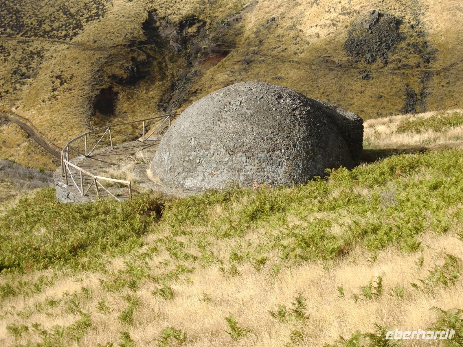 Da der Blandy’s Garten, der für den heutigen Tag geplant war, am Wochenende für Besucher nicht zugänglich ist, haben wir kurzerhand die Ausflüge getauscht, so dass wir am Samstag einen Ganztagesausflug zur östlichen Seite der Insel geplant haben. Wir verließen Caniço de Baixo und fuhren nach Camacha, dem Zentrum der Korbflechterei. Dort besuchten wir eine Korbflechterfabrik. Ein Wahnsinn, was es dort alles gab, gefertigt mit mühevoller Handarbeit: Möbel, Taschen, Körbe in den verschiedensten Varianten und Deko. Da wir noch etwas Zeit hatten, war es auch möglich sich die moderne Kirche Camacha’s anzusehen. Auf ging es zu unserem nächsten Stop, den Pico do Ariero, dem dritthöhsten Berg Madeiras. Dort oben ist die Landschaft eher kahl. In dieser Höhenlage schneit es auch mal und dieser Schnee wurde früher gelagert. So entstanden die ersten Kühlschränke auf Madeira Heute sieht man noch die kuppelförmigen Dächer über den Erdlöchern, in denen der Schnee gelagert wurde. Erinnert ein bisschen an ein Iglu aus Stein. Auf dem Pico do Ariero selber hat man einen weiten Blick auf die umliegende Landschaft. Viele Wanderer starten von hier aus ihre Touren. Wir hingegen stiegen wieder gemütlich in den Bus und fuhren zur Forellenzuchtstation Ribeiro Frios. Die Becken sind in einem kleinen Park eingebettet. Etwas weiter die Straße runter gibt es Souvenirläden und ein Café. Von hier aus hat man die Möglichkeit eine kleine Wanderung zu machen. Da wir strahlend schönes Wetter hatten, machten wir das auch und liefen ca. 45 Minuten auf gerader Strecke entlang einer Levada und dann bergab zum nächsten Treffpunkt. Hier stiegen wir in den Bus und fuhren nach Santana. Diese traditionelle Kleinstadt ist bekannt für die buntgestrichenen Bauernhäuser, deren Strohdächer fast bis zum Boden reichen. Hier machten wir unsere Mittagspause und hatten danach noch etwas Zeit um den Ort zu erkunden. Rückzu fuhren wir über Faial bis wir schließlich am Aussichtspunkt des Penha de Águia einen Fotostopp machten. Über den Portela Pass gelangten wir dann zum Pico do Facho, von dessen Aussichtspunkt man einen direkten Blick auf den Flughafen Santa Catarina hat. Dieser war früher ein eher gefürchteter Flughafen, da er direkt am Hang liegt und mit knapp 1800m eher kurz war. Im Jahr 2000 wurde er dann über den Meer mit Hilfe einer aufwendigen Stützkonstruktion um gut einen Kilometer verlängert. Danach fuhren wir ins Hotel und bereiteten uns auf unseren Fado-Abend vor. Fado ist ein typisch portugisischer Musikstil, bei dem ein Sänger von zwei Instrumenten, meistens Gitarren, begleitet wird. In den Liedern selber geht es um Liebe und Herzschmerz. Am Text konnten wir das leider nicht festmachen, aber ich denke man hat es auch sowohl an Mimik und Gestik sowie auch an der Stimmung die die Lieder übermittelten, gemerkt. Bei traditionellen Fado-Abenden ist es normalerweise so, dass auch Besucher sich spontan am Fado beteiligen. In unserer Gruppe wurde leider kein mutiger Sänger gefunden. Ich denke, dass wir an diesem Abend wieder einen anderen Teil der madeirensischen Kultur kennenlernen dürften und jede Menge Spaß hatten.