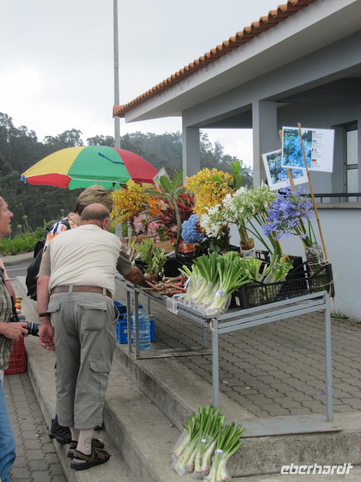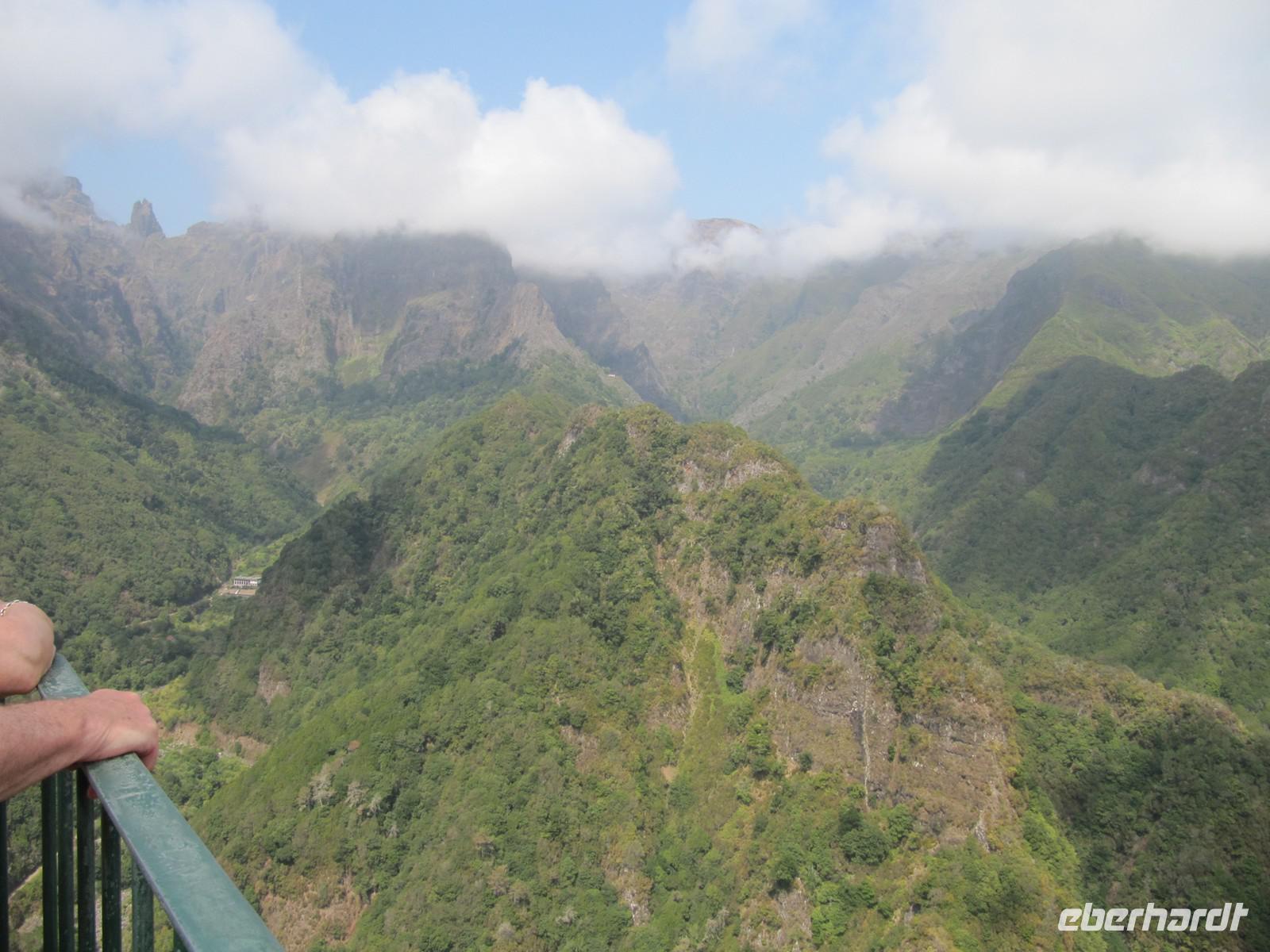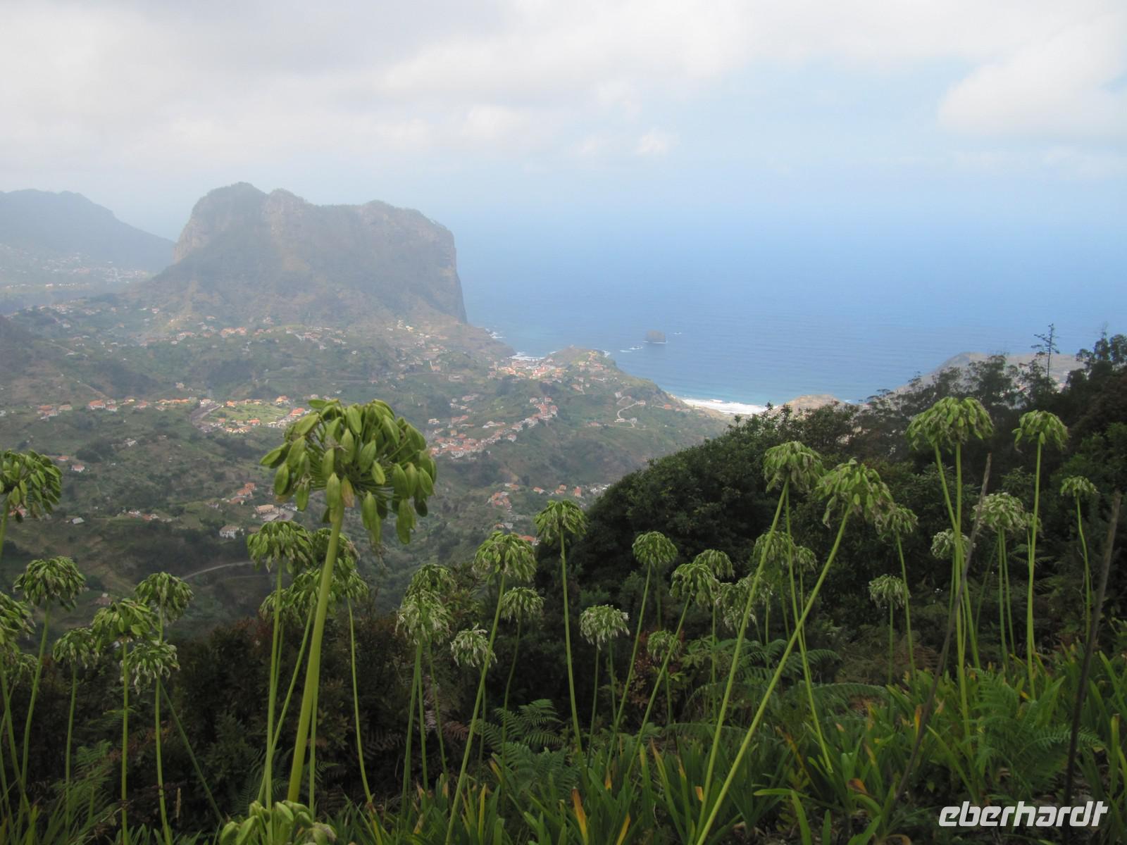 Von dort fuhren wir zum Pico do Arieiro (1818m), dem dritthöchsten Berg Madeiras. Von dort hat man einen weiten Blick auf die umliegende Landschaft. Viele Wanderer starten von hier aus ihre Touren. Wir hingegen stiegen wieder gemütlich in den Bus und fuhren zur Forellenzuchtstation Ribeiro Frios. Etwas weiter die Straße runter gibt es Souvenirläden und ein Café. Von hier aus starteten wir zu einer kleinen Wanderung auf gerader Strecke entlang einer Levada. Diese kleine Tour war zum Testen, ob wir alle fit waren für unsere größere Wanderung am nächsten Tag J. Danach fuhren wir in die traditionelle Kleinstadt Santana. Sie ist bekannt für die buntgestrichenen Bauernhäuser, deren Strohdächer fast bis zum Boden reichen. Nach dem von allen sehr gelobten Mittagessen hatten wir noch Zeit für eine kleine Besichtigung des Ortes, um die hübschen Häuschen zu fotografieren. Die Rückfahrt erfolgte über Faial und zum Aussichtspunkt Penha de Águia, wo einige Gäste bereits eine erste Auswahl über die später mitzunehmenden Pflanzen trafen und gemeinsam Ihr Pflanzenwissen erörterten. Über den Portela Pass schließlich gelangten wir zum Pico de Facho, von dessen Aussichtspunkt man einen direkten Blick auf den einzigen weißen Sandstrand der Insel in Machico sowie bis zur Ostspitze der Insel hat. Danach fuhren wir zurück ins Hotel, wo einige Gäste mit mir in einem nahe gelegenen Restaurant den Abend ausklingen lassen.
