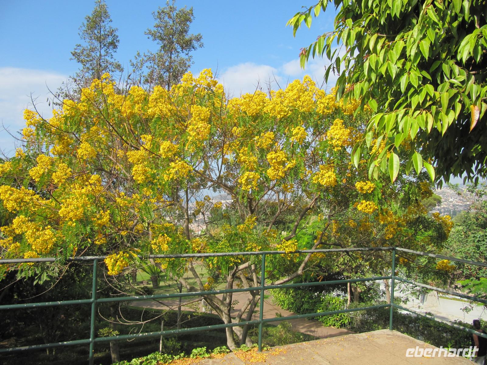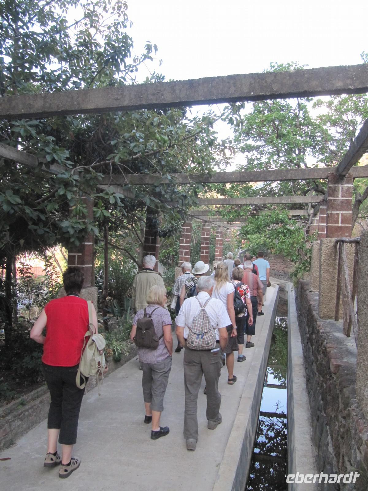 Zuerst fuhren wir zum Blandy's Garten, ein 200 ha großes Gelände, dass 1885 von der Familie Blandy gekauft wurde. Heute ist auf diesem Gelände noch ein bewohntes Herrenhaus zu finden. Dieser Teil ist für Besucher nicht zugänglich. Wir versuchten aber trotzdem einen Blick auf den Gutsherrn beim Frühstück zu erhaschen. Der Teil, den man besichtigen kann, ist ebenfalls sehr beeindruckend, unterscheidet sich aber völlig von dem bisher gesehenen. Es ist eine riesige Parkanlage mit uralten Bäumen, tollen Pergolen und wunderschönen Teichen mit Seerosen. Als zweites Highlight stand der Orchideengarten "Jardin Orquídea" auf dem Programm. Wir hören Helenas Ausführungen zur Familie Pregatter, die den Garten nun schön in 4. Generation betreibt und sich mit der Pflanzenforschung und -züchtung beschäftigt. Wir lernen außerdem, wie man Orchideen richtig wässert und pflegt und nehmen auch hier wertvolle Tipps nach Hause mit. Einige Gäste bleiben mit mir noch in Funchal, wo wir noch eine kleine Stadterkundungstour machen und dann mit dem Linienbus über die kurvenreiche Streck wieder in unsere Quinta zurückkehren. Am Abend schauen wir uns gemeinsam die Prozession um die Kirche an, die anlässlich des traditionellen Festes stattfindet. Im Anschluss fahren wir gemeinsam in das Restaurant „Atlantis" in Canico de Baixo, wo wir noch einmal den Degenfisch mit Banane essen und Meeresluft schnuppern.