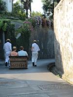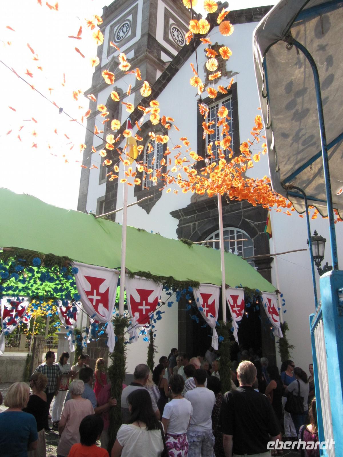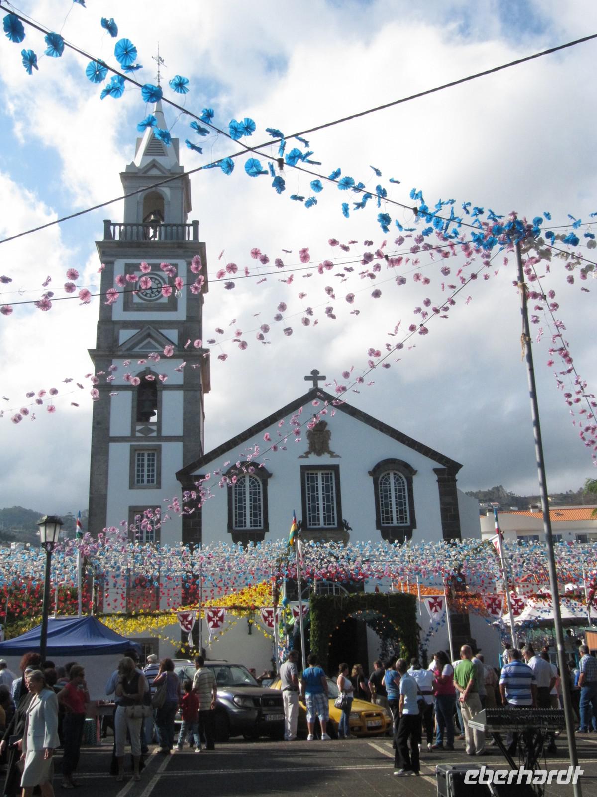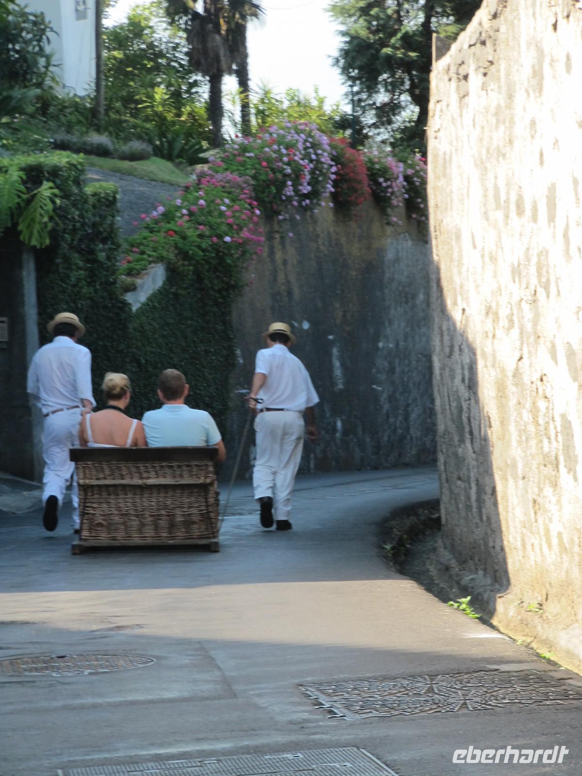 "Wer nicht im Nonnental war, war nicht auf Madeira" so wird oft zitiert. Das wollten wir uns natürlich nicht zweimal sagen lassen und machten uns heute auf den Weg ins Nonnental und den Ort Monte. Wir fuhren als erstes nach Monte. Monte ist ein kleinerer Ort, der 550m über Funchal gelegen ist. Wir stiegen am Busparkplatz aus dem Bus aus und gingen einen kleinen Fußweg hinauf zur Wallfahrtskirche Nossa Senhora do Monte, welche wir auch im Inneren besichtigten. Eine breite Treppe führte hinab zum Startpunkt der Korbschlittenfahrt. Etwa die Hälfte der Gäste wagten dieses Abenteuer und waren begeistert. Ganz in weiß gekleidet und mit einem Strohhut auf dem Kopf steuern jeweils 2 junge Herren eine Korbschlitten. Wir hatten jede Menge Spaß! Doch oh Schreck,am Endpunkt der Tour, als wir uns wieder mit den Nicht-Schlittenfahrern treffen wollten, fehlten 2 Herren. Die Damen sind gemeinsam mit dem Schlitten gefahren und die Herren wollten sie fotografieren. Doch leider gab es dann Missverständnisse zum Treffpunkt und die Herren verpassten den Bus. Nachdem wir gerade eine großangelegte Suchaktion starten wollen, kamen die beiden Herren den immens steilen Berg hinab GELAUFEN. Größten Respekt, das ging wirklich in die Knie. Aber nun waren wir froh, dass wir keine „Verluste" erlitten hatten und konnten unsere Fahrt in Richtung Nonnental vollzählig fortsetzen. Am Eiro de Serrado stiegen wir aus dem Bus aus und spazierten einen kleinen Wanderweg entlang bis zu einem Aussichtspunkt, der uns einen wundervollen Blick ins Nonnental bot. Im 16.Jh. war dies Zufluchtsort für Ordensschwestern aus Funchal vor Piratenüberfällen. Einige dieser Nonnen haben ihr ganzen Leben in diesem Nonnental, einem kleinen Ort umringt von Bergen, verbracht. Helena verkürzte uns die Rückfahrt mit kleinen „Nonnenwitzchen". Unser heutiges Programm war aber noch nicht zu Ende. Wir fuhren zu Esmeralda, unserer „Kräuterhexe". Heute war ein sehr heißer Tag und so freuten wir uns über ein schattiges Plätzchen. Sie empfing uns mit einem Zitronen-Ingwer-Tee und einem selbst gebackenen Kuchen und führte uns danach durch ihren wilden Garten, zeigte uns die verschiedenen Kräuter und klärte uns über ihre heilende Wirkung auf. Einige dieser Tipps werden wir sicher zu Hause ausprobieren. Nach dieser Führung fuhren wir zurück zum Hotel und genossen die freie Zeit. Am heutigen Abend begann in unserem Ort ein Kirchenfest zu Ehren der Heiligen Maria und das Städtchen und die Kirche wurden festlich geschmückt. Wir spazierten durch die Straßen und probierten das typische Fladenbrot oder tranken den bekannten Poncha.