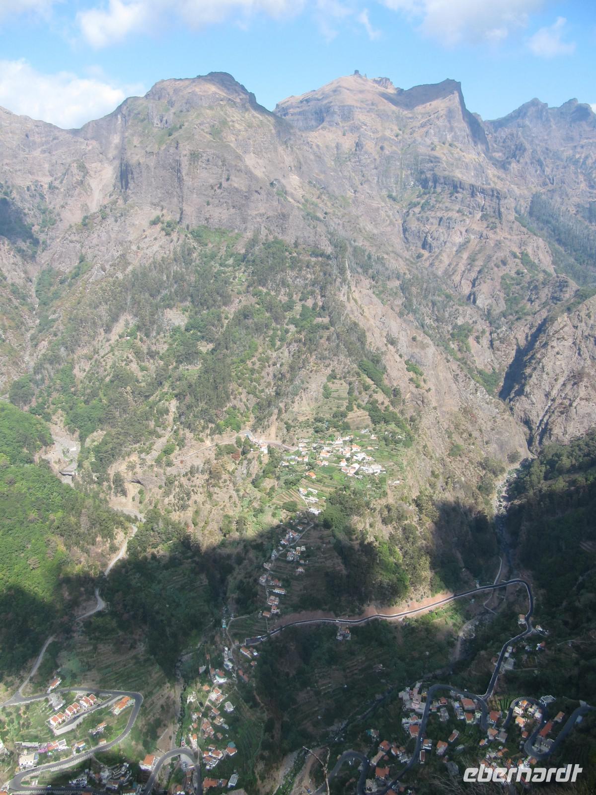 Heute fuhren wir etwas eher ab, denn unser Tag sollte sehr lang werden. Uns erwartete eine Fahrt zur Nordwestküste der Insel. Unser erstes Ziel war die Ribiera Brava- am frühen Morgen noch etwas verschlafen- aber gut vorzustellen, dass es in der Saison ein lebhafter Touristenort ist. Wir besichtigten die Kirche São Bento, eine Kirche aus dem 16.Jh., die im typischen Sakralstil gehalten ist und konnten auf der Strandpromenade flanieren. Jeder hatte etwas Freizeit und einige nutzen diese, um Andenken zu kaufen bevor wir unser Fahrt ins Landesinnere fortsetzen. Über zahlreiche Serpentinen gelangen wir zum Encumeada-Pass, einem einzigartigen Aussichtspunkt. Wir hatten tolles Wetter und konnten von diesem Punkt sowohl die Südküste der Insel als auch die Nordküste sehen. Diese ist nicht so oft der Fall, aber wenn Engel reisen.... Die zweithöchste Erhebung auf Madeira ist der Bica da Cana mit 1620m Höhe. Hier beginnt auch die Paúl da Serra, Madeiras größte Ebene. Wir halten kurz am Ausichtspunkt, wo wir die Illheus da Ribiera da Janela sehen, eine kleine Felsengruppe im Wasser von denen der größte Fels ein Loch hat. In Porto Moniz verbrachten wir unsere Mittagspause. Nach dem Mittagessen hatten wir - leider viel zu kurz - Zeit für ein erfrischendes Bad in den Meerwasserpools von Puerto Moniz. Ein wirklich schönes Erlebnis, da unser Hotel wunderschön ist, aber leider nicht am Meer liegt. Aber man kann nicht alles haben und der traumhafte subtropische Garten entschädigt uns. Aber zurück zum Ausflug. Nach der Mittagspause fahren wir mit einem kurzen Stop am Brautschleier-Wasserfall zurück nach Camara de Lobos, dem kleinen bekannten Fischerort. In einer kleinen Fischerbar lassen wir uns einen Mandarinen-Poncha schmecken und genießen das abendliche Flair am Hafen, bevor wir mit dem Bus ins Hotel zurückkehren. Da Helena am nächsten Tag verdienterweise frei hatte, mußten wir uns von ihr verabschieden. Sie ist eine kompetente und charmante Reiseleiterin mit enormen Fachwissen und setzt die Meßlatte für zukünftige Reisen sicher sehr hoch. Danke Helena, alles Liebe für Dich! Im Panoramarestaurant essen wir zusammen zu Abend den berühmten Fleischspieß „Espetata".