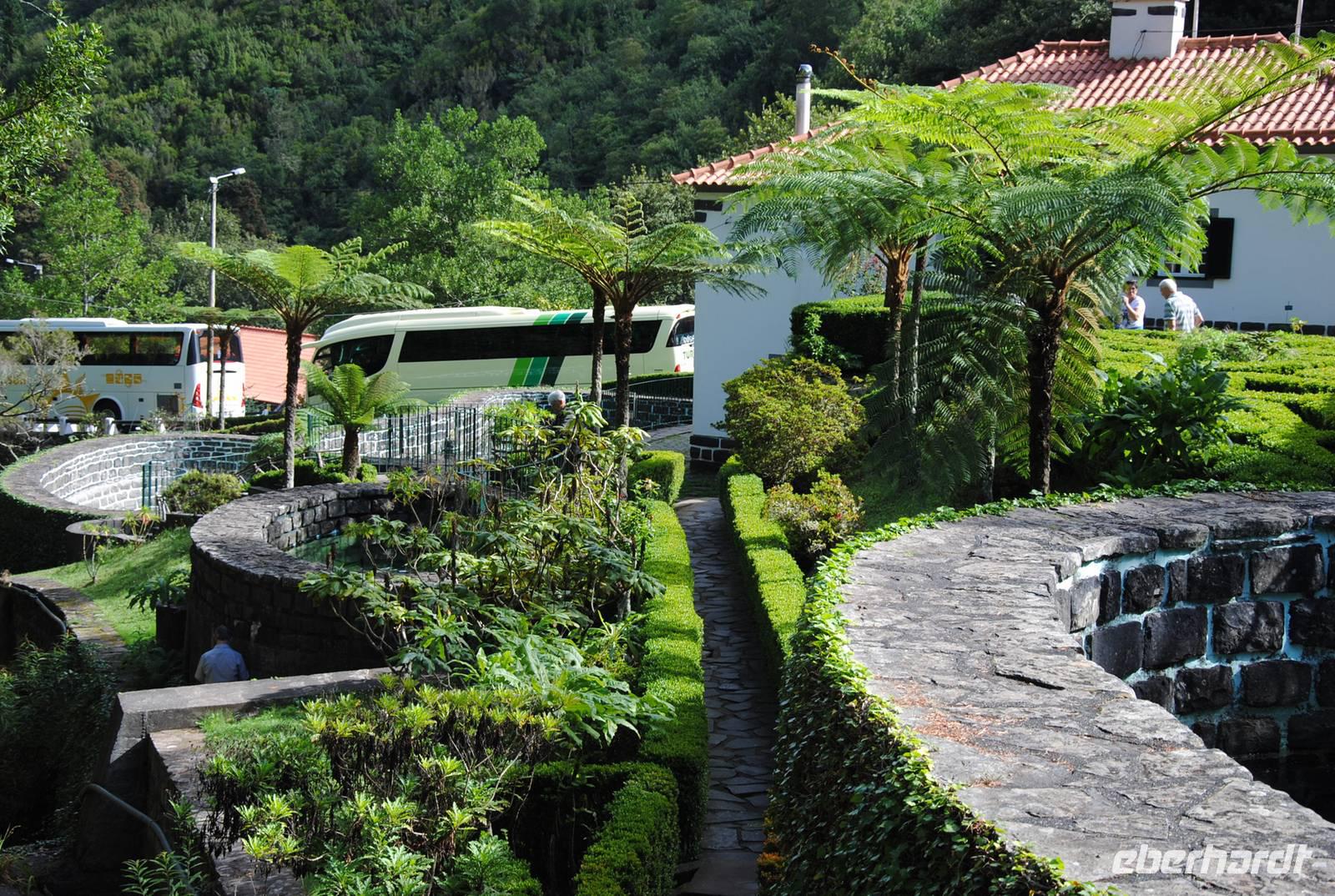 Nach einem gemütlichen Frühstück starten wir nach Camacha, dem Zentrum des Korbflechtehandwerks. In den Werkstätten konnte man den Handwerkern über die Schulter schauen. Auf der Weiterfahrt nach Ribeiro Frio und dem dritthöchsten Berg Madeiras dem Pico do Ariero mit 1810m Höhe, erhielten wir von Helena Informationen zur Hutmode Madeiras. Die sogenannten Pudelmützen, ausschließlich von Männern getragen, geben auch Auskunft zum Familienstand. Hochgeklappte „Ohren" - ich bin ledig, nach unten geklappte „Ohren" - ich bin erledigt unter der Haube, bei unterschiedlicher Stellung der „Ohren" (eine oben, eine unten) bedeutet dies - ich bin erledigt aber nicht dumm. So verging die Zeit auf dem steilen und kurvenreichen Weg wie im Flug.