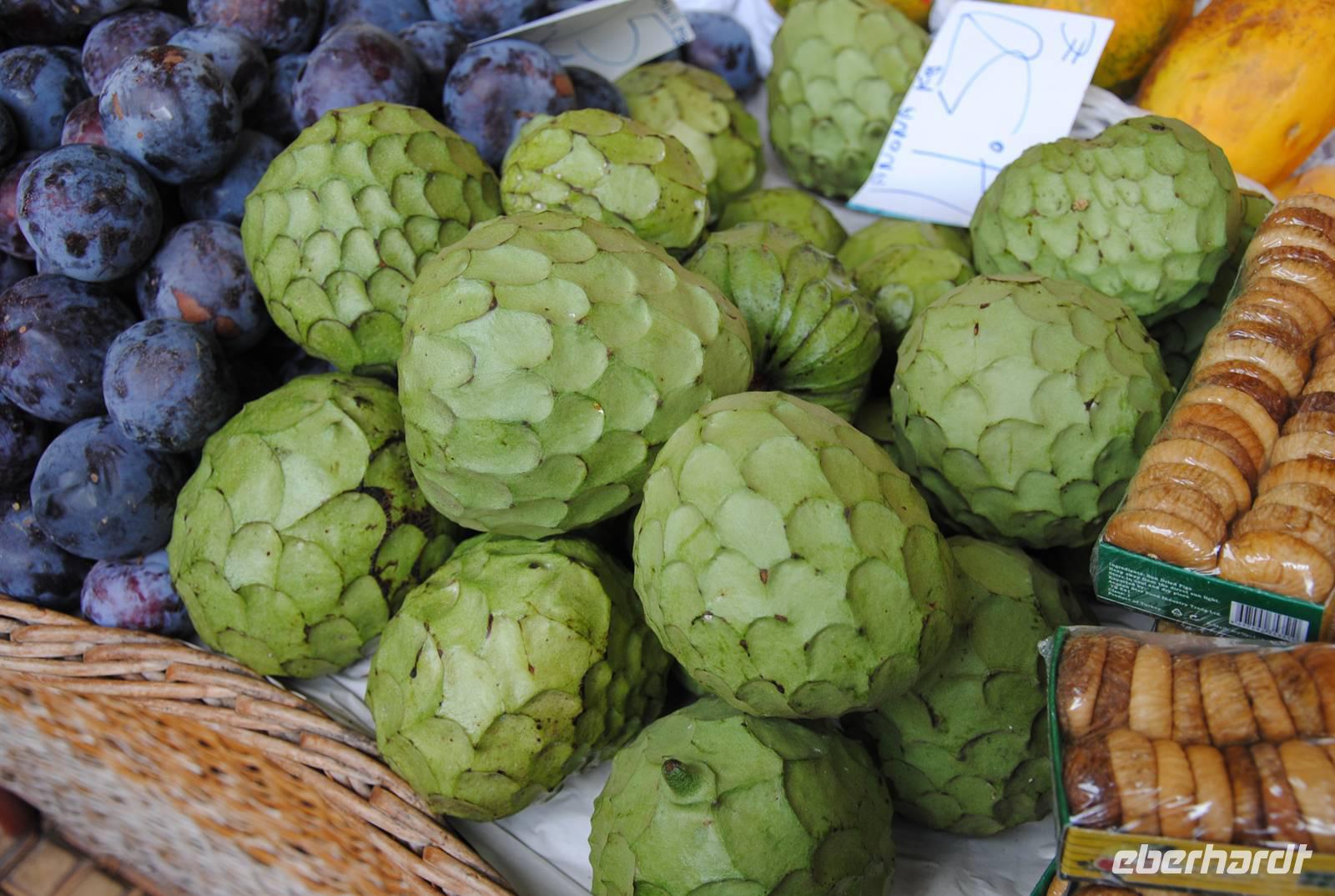 Petrus konnten sich nicht entscheiden. So wechselten sich Sonnenschein und kurze Regenschauer ab. In der Markthalle von Funchal war es trocken....Schon am Eingang erhielt man einen Eindruck von der Vielfalt der Produkte. Helena erläuterte uns Blumen, exotische Pflanzen, einheimisches Obst und Gemüse, sowie traditionelle Handwerksprodukte. Im Anschluss blieb noch genügend Zeit sich ins Getümmel des Marktes zu stürzen und persönliche Einkäufe zu tätigen.