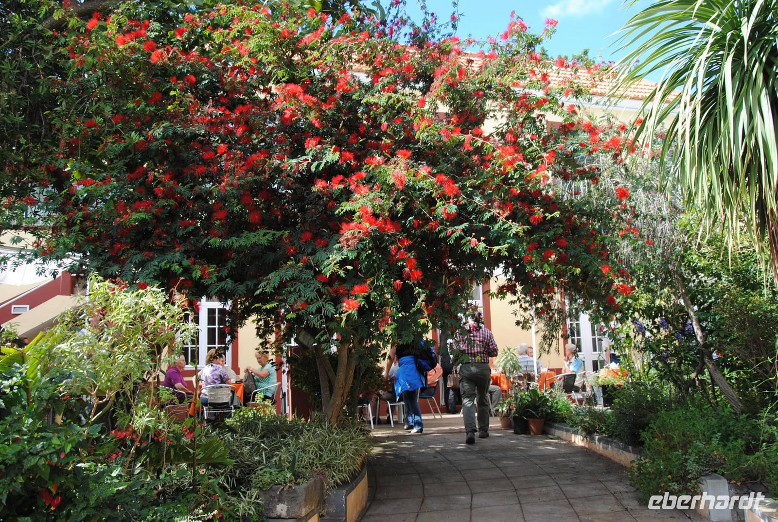 Unser erstes Ziel ist Blandy's Garden, der schon seit 1890 im Besitz der Familie Blandys ist. Erworben hat die englische Familie das Anwesen von einem adligen Madeirer, zu dem unter anderem ein Hotel und ein Golfplatz gehört. Sehenswert die Vielzahl von exotischen, aber auch einheimischen Pflanzen. Ganz besonders aber die reichhaltige Anzahl von Kamelienbäumen, die schon zum Teil ihre Blütenpracht zeigten. Im Anschluss ging es zu einem Orchideenzüchter - einem Österreicher, der 1991 auf die Insel Madeira kam. Diese Familie ist neben einem staatlichen Unternehmen das einzige Unternehmen, das Orchideen züchtet und in alle Welt exportiert. Einen kleinen Eindruck der mehr als 20000 verschiedenen Sorten erhielten wir bei einer kurzen Führung durch unsere Reiseleiterin Helena. Nachmittags hatte alle die Möglichkeit die Seele baumeln lassen. Im Restaurant „Atlantis" in Canico konnten wir am Abend eine Köstlichkeit Madeira's genießen Degenfisch mit Banane.