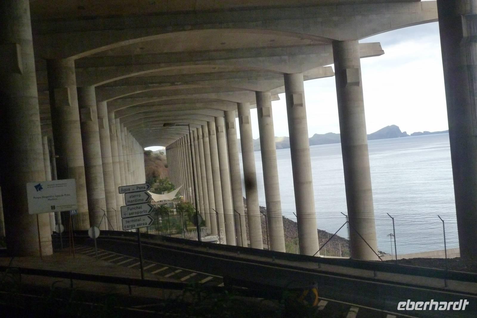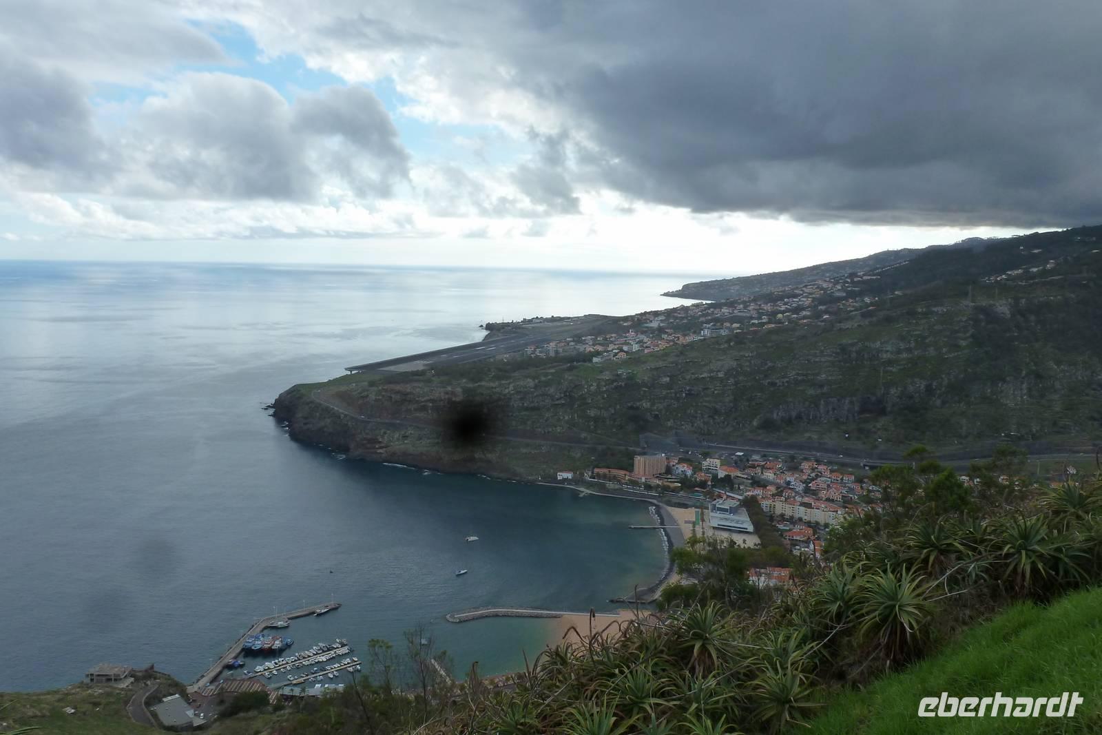 Am Mittag erkundeten wir das Örtchen Santana, besonders bekannt durch die Traditionshäuschen - den strohgedeckten Casas de Colmo. Über Macchio ging die Fahrt weiter auf den Pico do Facho an der Südküste. Einst gaben dort die Feuer den Insulanern Nachricht über Eindringlinge und Piraten, heute dient das Leuchtfeuer dem nahe liegenden Flughafen. Auf der Rückfahrt nach Canico wurde jedem die architektonische Meisterleistung beim Bau des Flughafens bewusst, denn die Autobahn verläuft direkt unter der Startbahn.