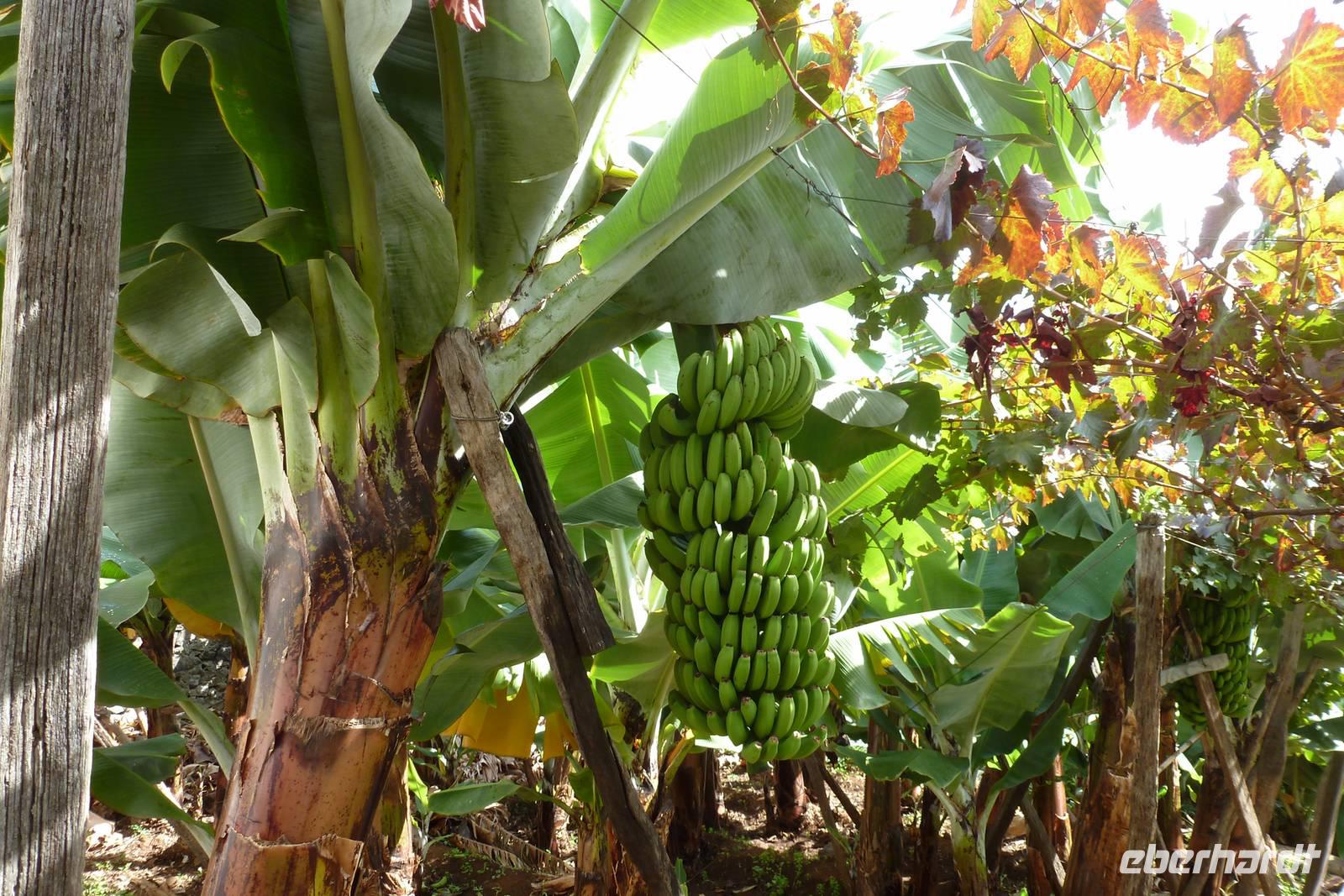 Tief dunkle Wolken deuteten schon das Wetter für unsere Lavada-Tour am. Wegen heftigen Regenschauers im Nordosten Madeiras wurde kurzfristig eine andere Route gewählt. Größtenteils unter dem Schutz eines Laubdaches erlebten wir den Wechsel von Sonne, Wind und kurzen Schauern. Entlang der Strecke wurden wir in die Geheimnisse der Botanik Madeiras eingeführt und es blieb auch Zeit zum Ernten von Obst und Maronen. Am Ende genehmigten wir uns zur Vorbeugung einer Erkältung das Traditionsgetränk Poncha.