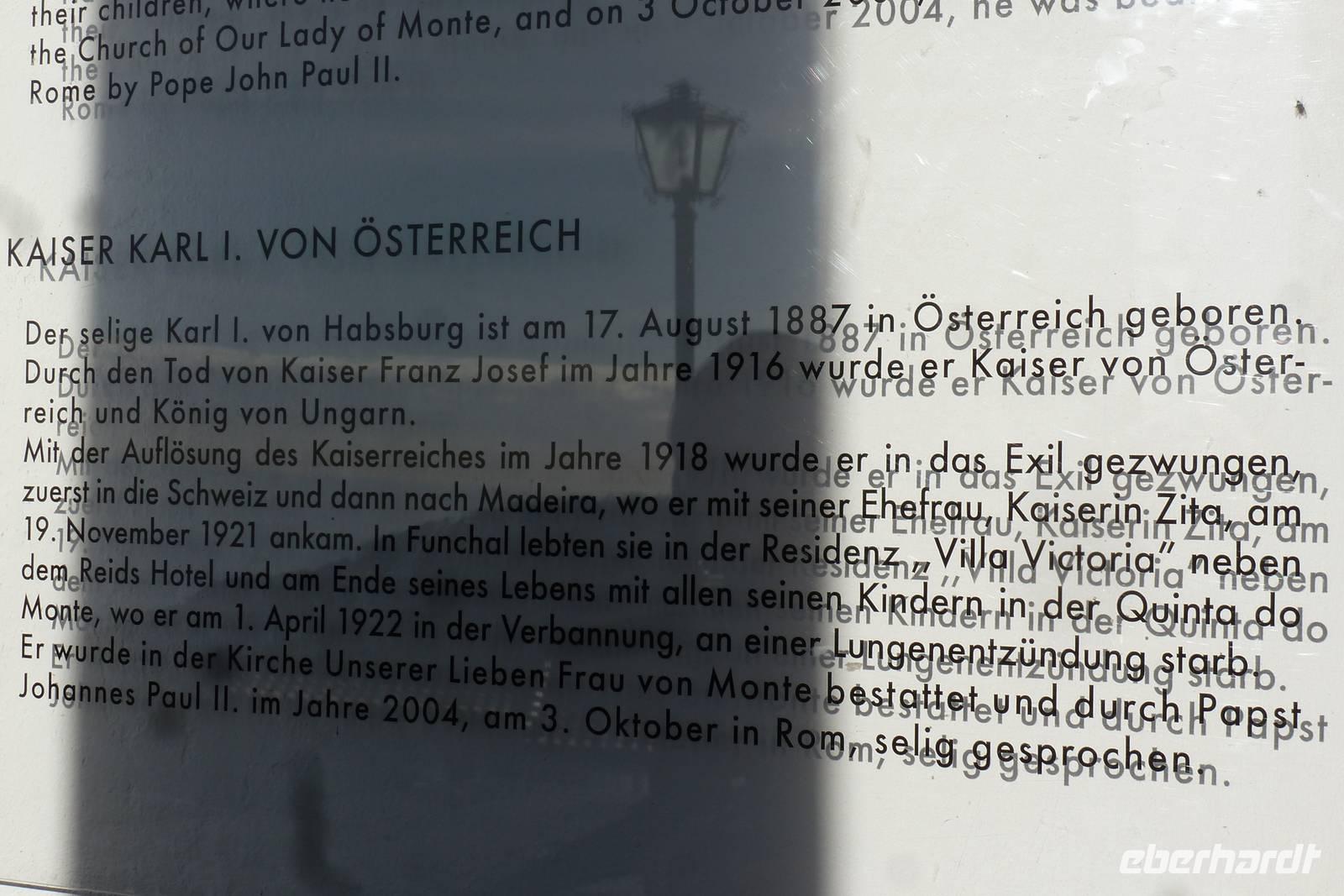 Bei Kaiserwetter besichtigten wir die Wallfahrtskirche in Monte. Wie bei einer Prozession ging es die Stufen hinauf zur Kirche. Ein schlichter Sarkophag als letzte Ruhestätte des letzten Habsburger Kaiser Karl V und die Schlichtheit der Kirche erwartete uns dort.