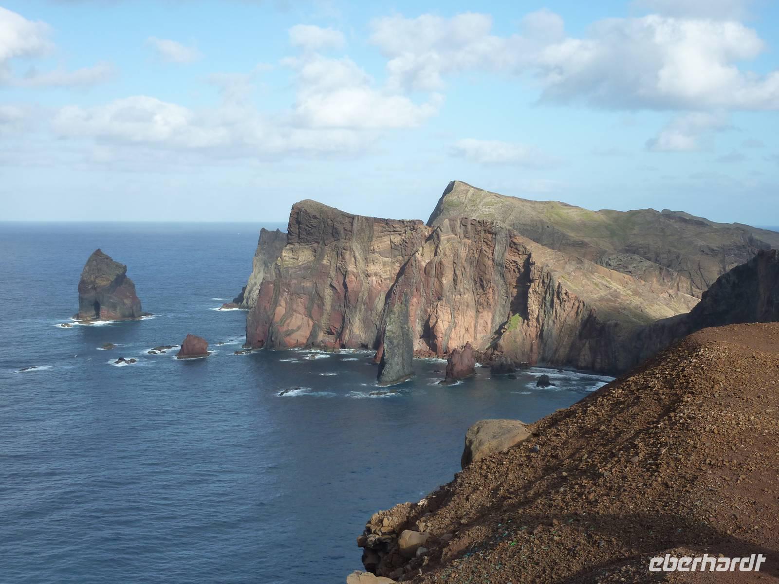 Danach fuhren wir nach Santana. Diese Kleinstadt ist bekannt für die bunten, strohgedeckten Bauernhäuschen, den Casas del Colmo. Nach dem von allen gelobten Mittagessen hatten wir noch Zeit um die hübschen Häuschen zu fotografieren und uns auf dem kleinen Bauernmarkt umzuschauen. Die weitere Fahrt erfolgte über Faial und zum Aussichtspunkt Penha de Águia, wo einige Gäste die Frucht Annona Cherimoya verkosteten und gemeinsam ihr Pflanzenwissen erörterten. Über den Portela Pass schließlich gelangten wir zum Punta do Rosto. Von diesem Aussichtspunkt bekommt man einen Eindruck von der etwas anderen Ostspitze der Insel. Hier auf der warmen und trockenen Halbinsel Ponta de Sao Lorenco herrscht der vulkanischer Ursprung vor. Danach fuhren wir zurück ins Hotel und einige Gäste ließen mit mir in einem nahe gelegenen Restaurant den Abend ausklingen.