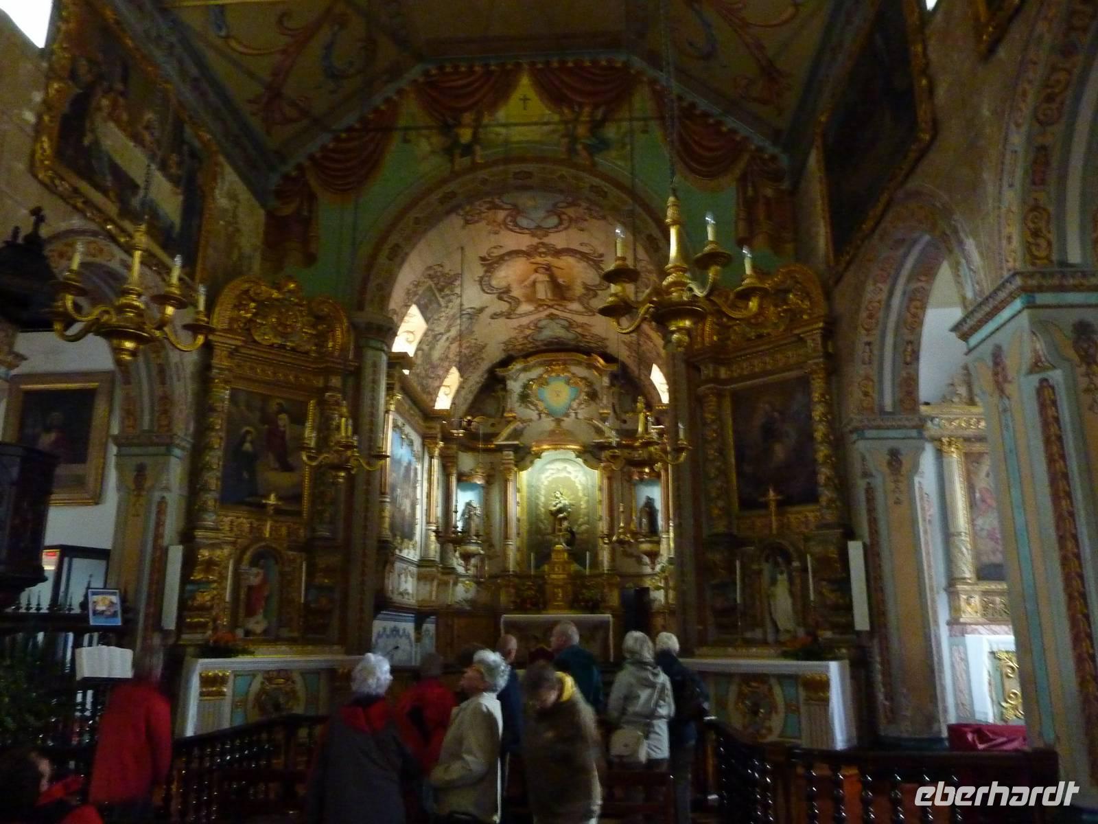 Nun fuhren wir zum nächsten Höhepunkt, im wahrsten Sinne des Wortes: den Aussichtpunkt des Cabo Girao mit neuer gläserner Besucherterrasse: in 580 m über dem Meeresspiegel blickten wir die steile Klippe hinab. WOW! Viele Serpentinen und Fotos später kamen wir in Camara de Lobos an, dem Fischerstädtchen, das Winston Churchill gerne malte. Hier besuchten wir die kleine Kapelle, errichtet 1420, genossen einen Kaffee oder probierten Nikita, einem köstlichen Mixgetränk aus Bier, Ananassaft und Vanilleeis. Zum Abschluss des Ausfluges besuchten wir ein kleines Weingut samt Herrenhaus, Kapelle, Bananen- und Weingarten. Hier bekamen wir eine Kostprobe vom 38 (!) Jahre alten Madeira, die wir uns mit einem Stückchen hausgebackenen Bolo de Mel -dem inseltypischen Honigkuchen- schmecken ließen. Das romantische Herrenhaus ließ uns staunen und die Fotoapparate klicken. Gelegentlich wird dieses Haus durch den Gutsbesitzer vermietet. Aber in unserem Hotel war es auch recht komfortabel und das Abendessen ließen wir uns heute im Restaurant Le Buffet servieren.