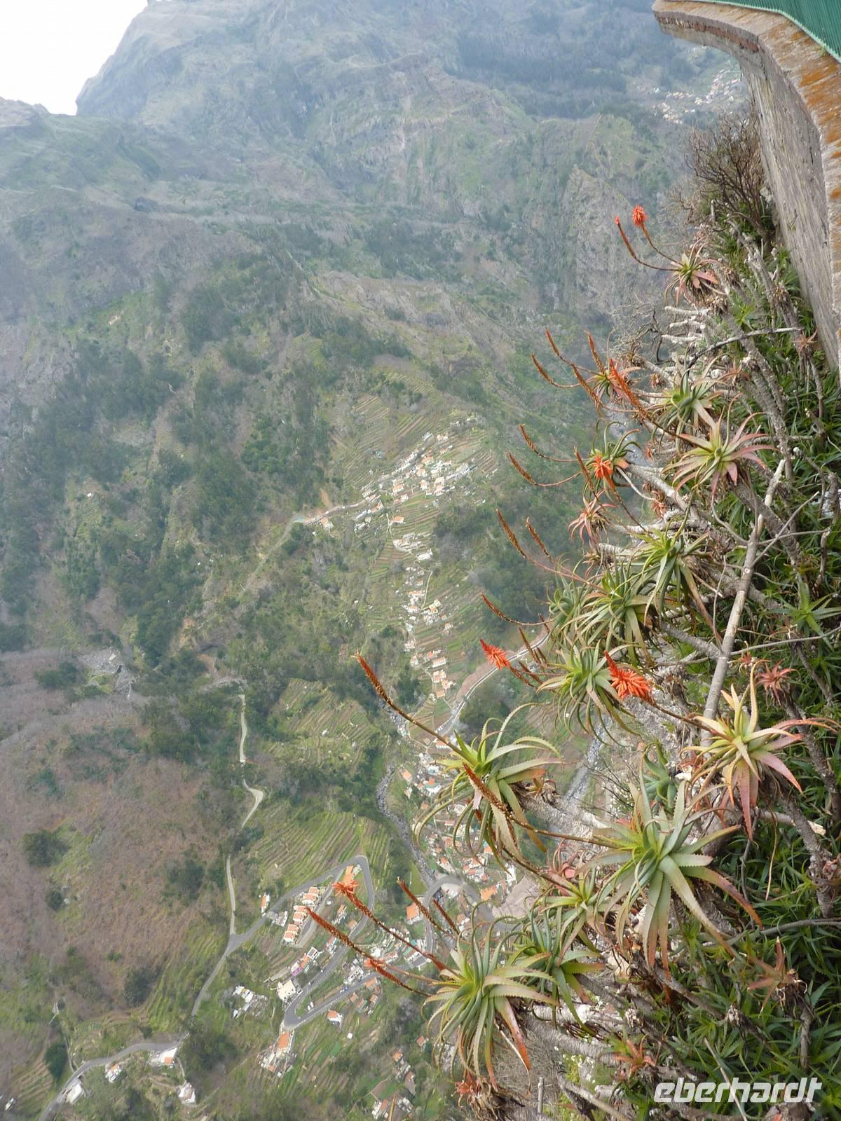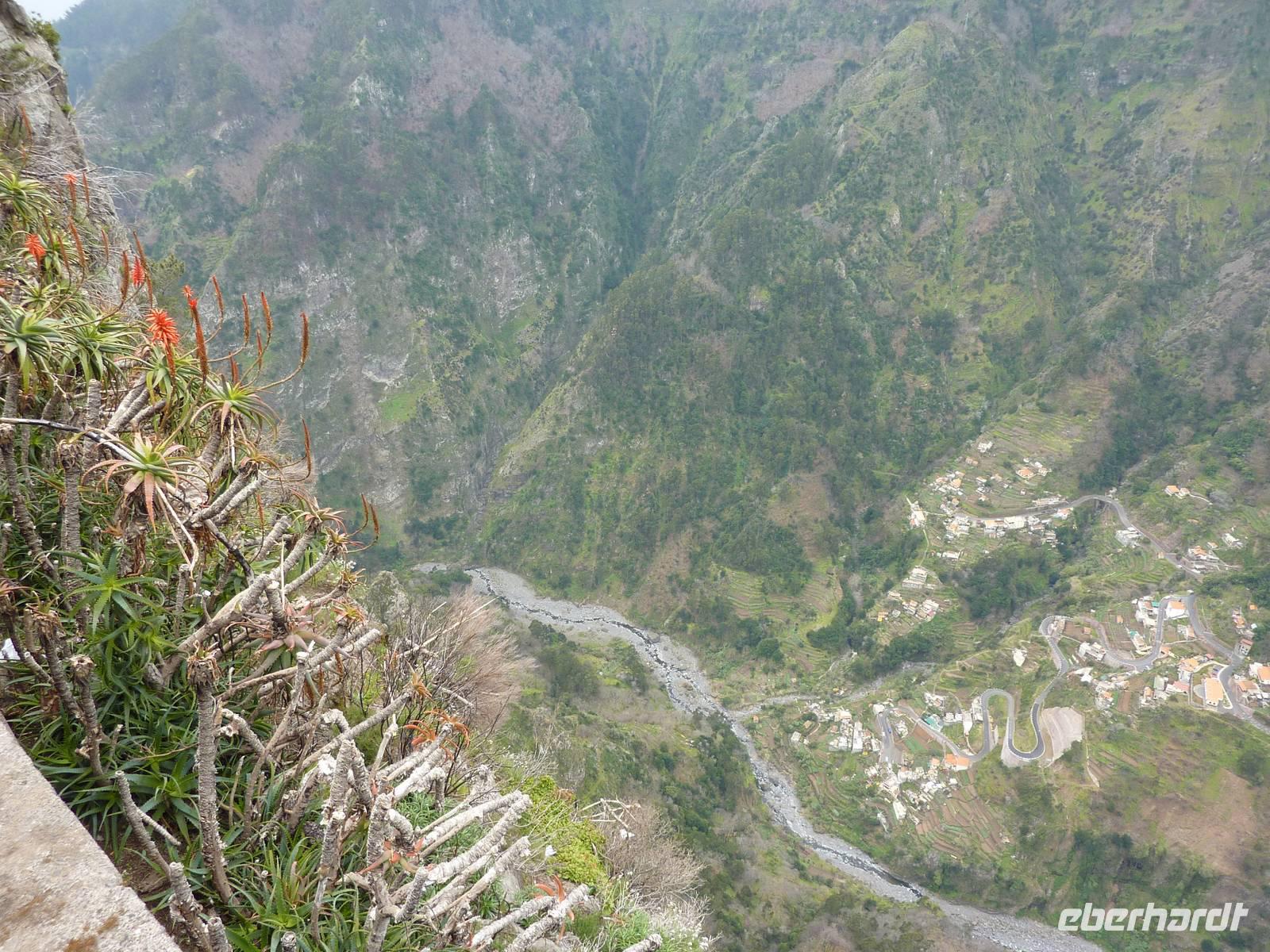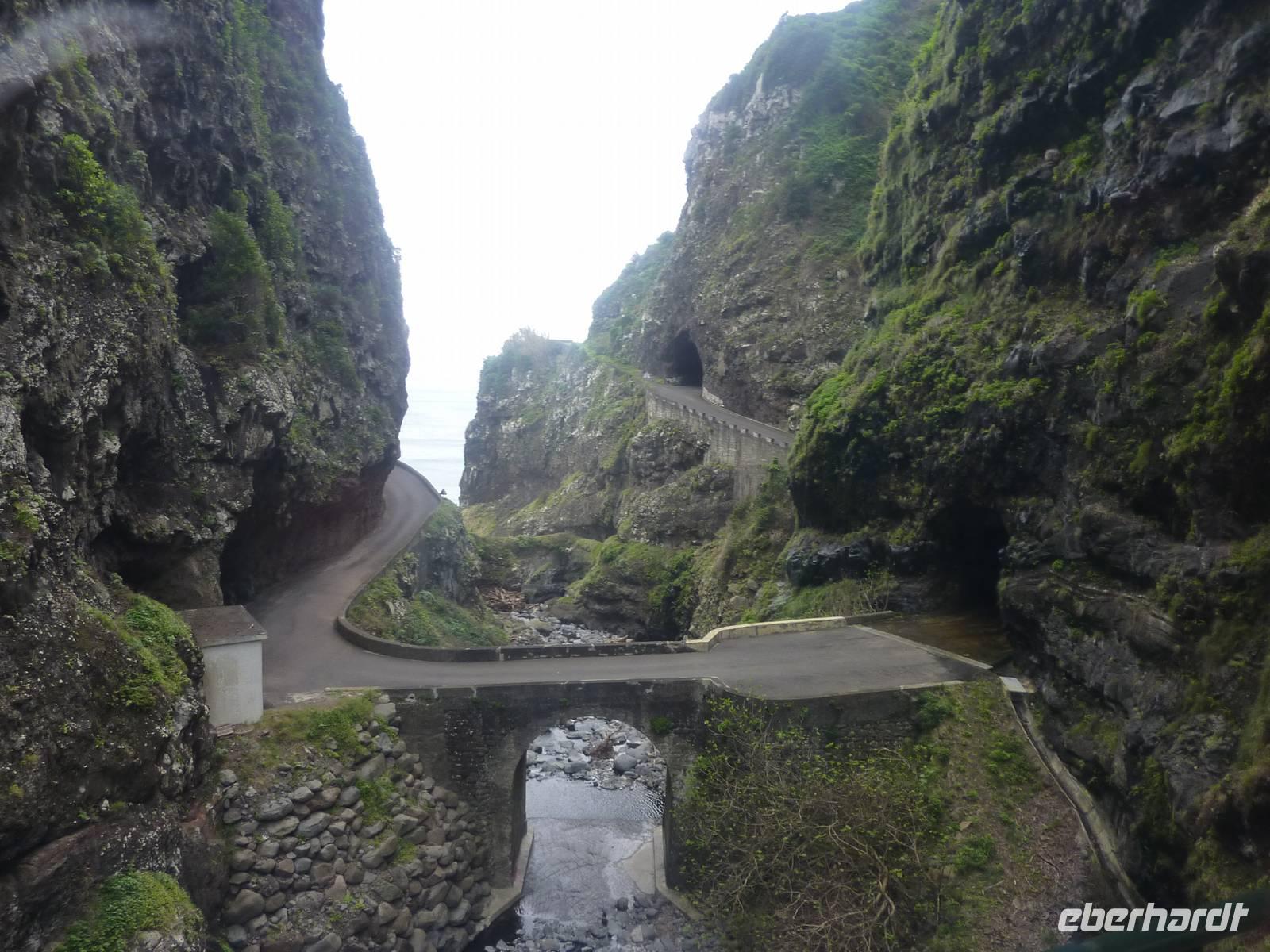 Durch die Berge hinauf ging nun unsere Fahrt zum Eiro do Serado, dem "Herz der Insel". Über einen kurzen Waldweg erreicht man hier die Aussichtsplattform hoch über dem Nonnental. Der Blick fällt aus Schwindel erregender Höhe in den tiefen Tal-Kessel und konnten den kleinen Ort gut überblicken! Hier sollte man unbedingt die leckeren Maronen-Spezialitäten testen.