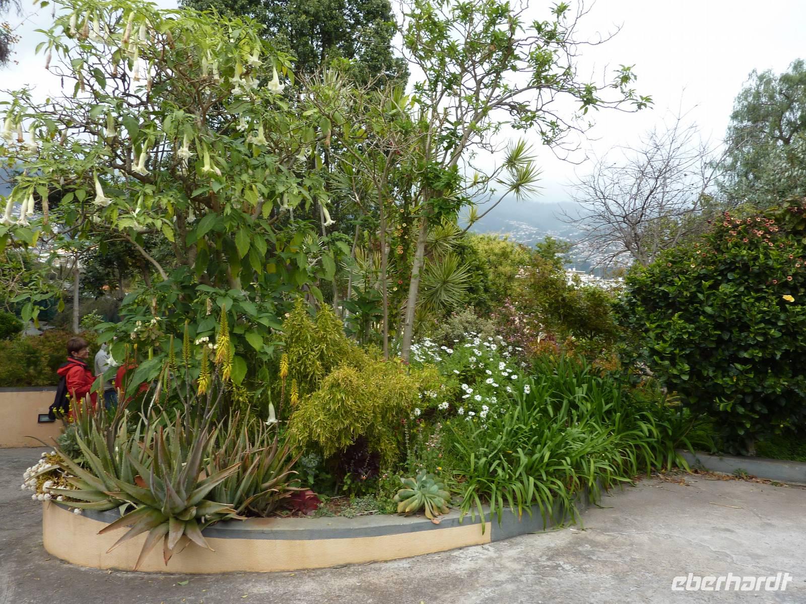 Heute erfuhren wir wieder erneut, warum Madeira seinen Beinamen als Blumeninsel mehr als verdient hat. Marbelia führte uns durch den eindrucksvoll bepflanzten Botanischen Garten, der oberhalb der Stadt liegt und einen wundervollen Blick auf Funchal samt Hafen bietet. Sie zeigte uns Frauenschuhe, Araucaria, Philodendron-Monstera samt Früchten, Leberwurstbäume und noch vieles mehr. Hübsche Papageien verschiedenster Arten beobachteten wir noch in einem Teil des Gartens.