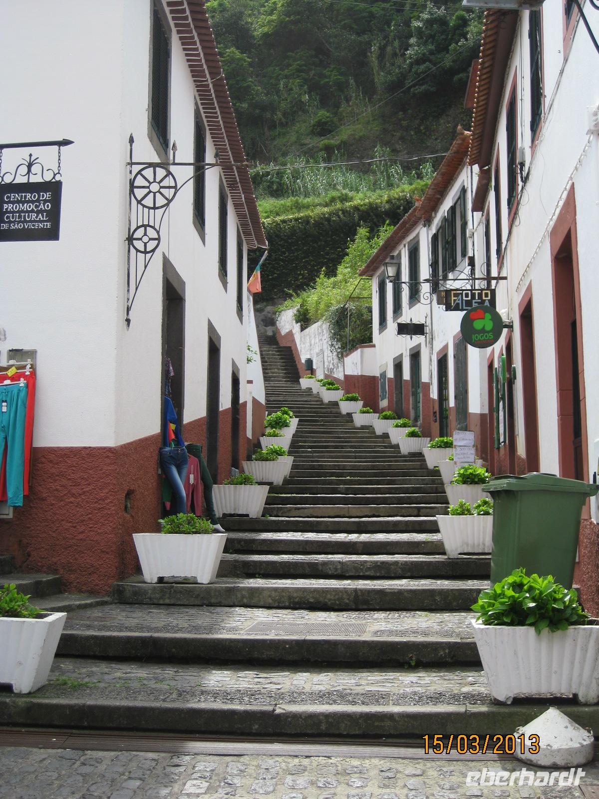 Der Osten stand bereits diese Woche auf unserem Programm. Heute möchten wir noch die Gelegenheit nutzen einen Teil des Westens sowie des Nordens der Insel zu erkunden. Dabei begeben wir uns geradewegs nach zur Ribeira Brava. Zuvor unternehmen wir aber noch einen kurzen Stopp auf dem Pico dos Barcelos, um noch einmal die sagenhafte Aussicht auf Funchal zu genießen. An der Ribeira Brava angekommen begeben wir uns auf einen kleinen Rundgang entlang der Markthalle sowie der Kirche durch die Stadt. Die Ortschaft zählt zu den Ältesten Madeiras und liegt direkt am Fluss Brava (Wilder Fluss). Die Folgen der der Letzten Überschwemmung des Flusses sind noch deutlich sichtbar und geben dem Namen alle Ehre. Immer entlang der Küste über Ponta do Sol und dann über das Landesinnere der Paul da Serra begeben wir uns nach Porto Moniz. Auf unserem Weg durchqueren wir zahlreiche Eukalyptus Kulturen. Der Eukalyptus kam etwa 1800 nach Europa und ist ein sehr robuster Baum. Leider gewannen die Bestände schnell an Überhand und man musste die Wälder eindämmen. In diesem Zusammenhang spricht man deshalb heute auch von Kulturen, das heißt kontrollierten Baumbeständen. In über 1000 Metern Höhe auf der Paul da Serra erkennen wir schnell die Veränderung in der Vegetation. Hier sind vor allem Stechgingster und Baumerika zu Hause. In Porto Moniz legen wir eine größere Pause ein. Und wie bestellt, lässt uns hier die Sonne auch wieder nicht im Stich und wir genießen bei strahlendem Sonnenschein einen Spaziergang entlang der Prommenade. Porto Moniz liegt im äußersten Nordwesten der Insel und ist vor allem für seine zahlreichen wunderschön angelegten Naturschwimmbäder bekannt. Im Sommer sind hier zahlreiche Einheimische und Touristen zu Besuch. In kleineren Cafés und Restaurants, welche direkt am Meer gelegen sind und traumhafte Ausblicke bieten, kann man einen kleinen Snack genießen. Unser Rückweg am Nachmittag führt uns weiter entlang der Westküste und in Sao Vicente wieder in das Landesinnere in Richtung Ribeira Brava, von wo aus es dann wieder nach Canico geht. Auf diesem Weg gehört es unbedingt dazu, einen Blick auf den Wasserfall Brautschleier in Seixal zu werfen. Seixal selbst ist Herkunftsort einer der besten Weine Madeiras (der Sercial), dessen Trauben erst im November geerntet werden. Nicht unweit von Seixal durchqueren wir den kleinen Ort Sao Vicente und genießen einen kleinen Rundgang durch den Ortskern der Stadt. Sao Vicente gleicht einem Bergdorf. Um den Ort herum befinden sich zahlreiche kleine Höhlen, welche durch vulkanische Tätigkeit entstanden. Sehr sehenswert im Ortsinneren ist die Pfarrkirche Igreja de São Vicente, welche aus dem 18. Jahrhundert stammt.