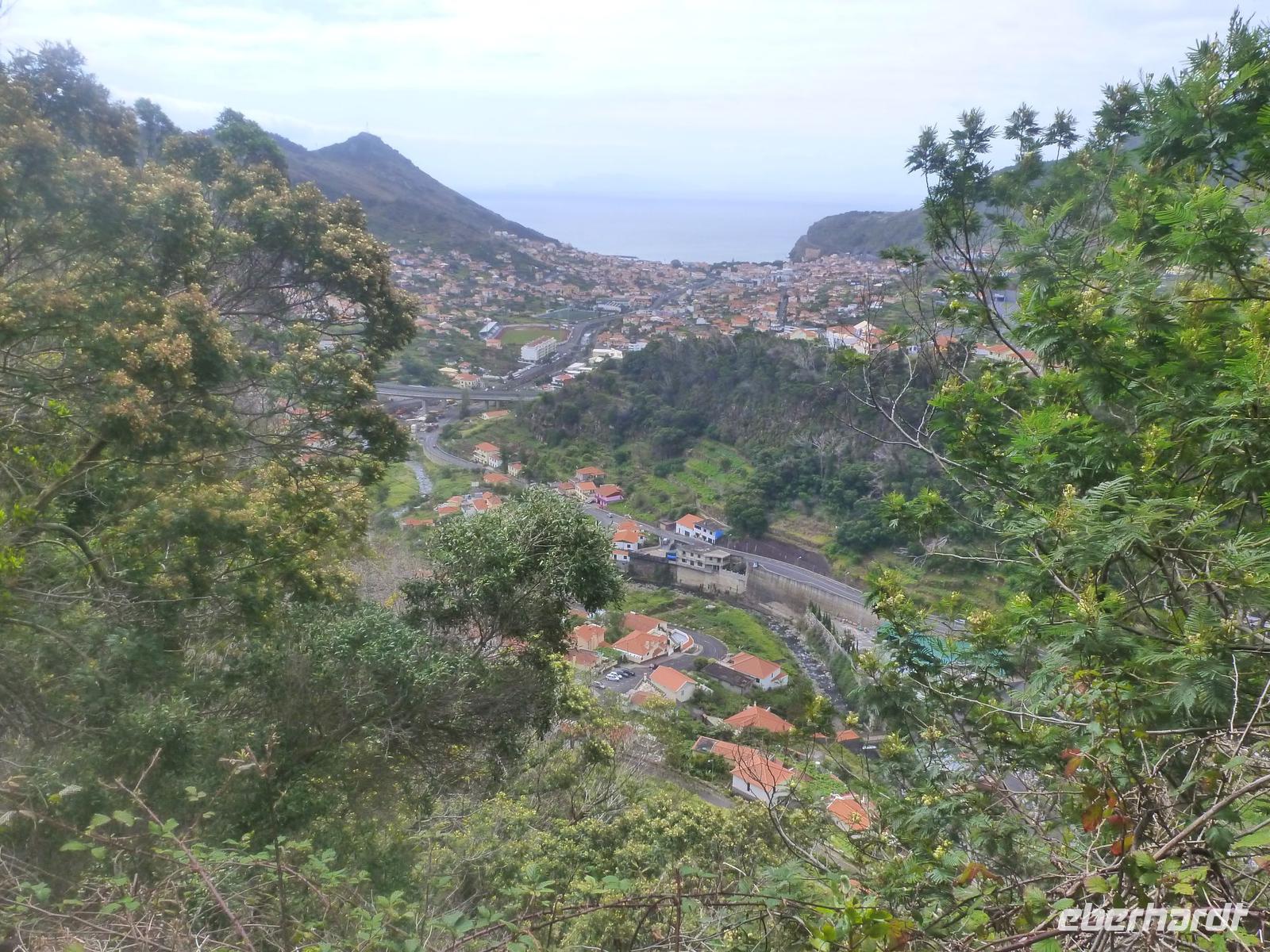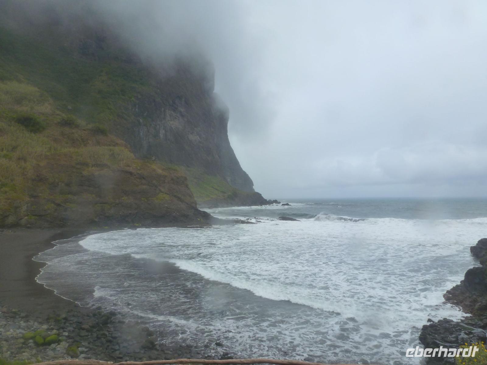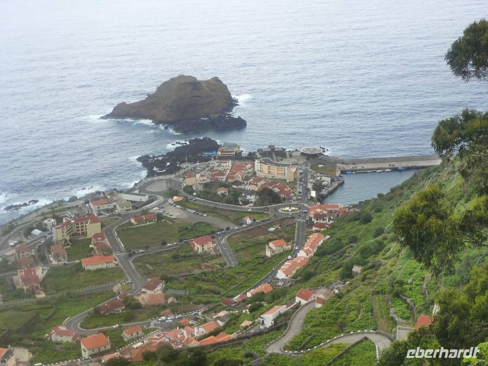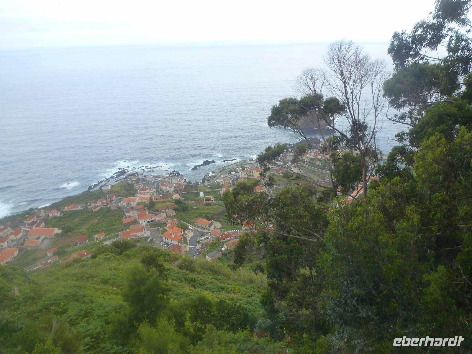 Weiter ging es zu Hoch Ebene „Paul da Serra" auf 1.400 Meter. Überraschend gäbe es keine Serpentinen, sondern es ging gerade bergauf so dass wir in kurze Zeit die Höhe erreichen. Leider konnte sich hier die Sonne gegenüber dem Nebel nicht durchsetzen. Deshalb verlegten wir den Foto-Stopp 400 Meter niedriger und hatten so ein ersten herrlichen Blick auf „Porto de Moniz".