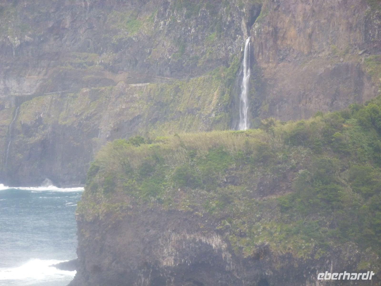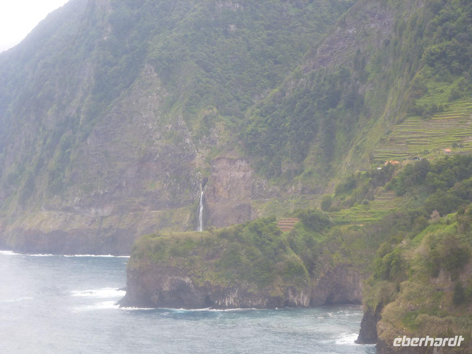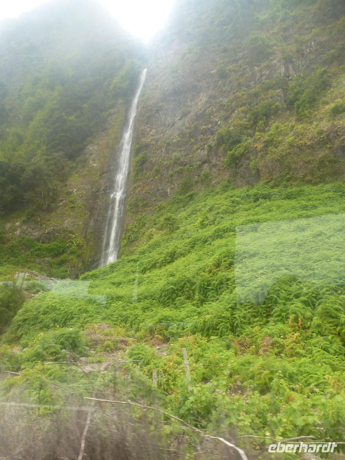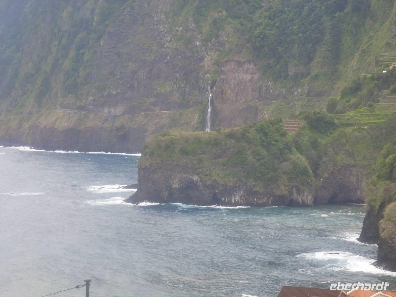 Angekommen in Puerto Moniz machten wir unsere Mittagspause und jeder könnte sich ein eigenes Bild von den „Lava Pools" machen. Benjamin fand hier sogar eine Möglichkeit zum einem ersten Bad. Gestärkt ging es der Küste entlang nach Sao Vicente. Unterwegs machten wir einen Foto-Stopp am Wasserfall „Brautschleier" und sahen wie man einen Kuhstall in einem Bungalow verwandeln konnte.