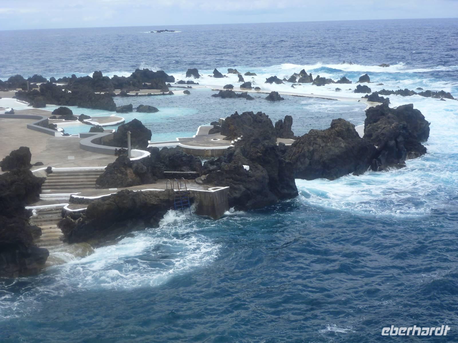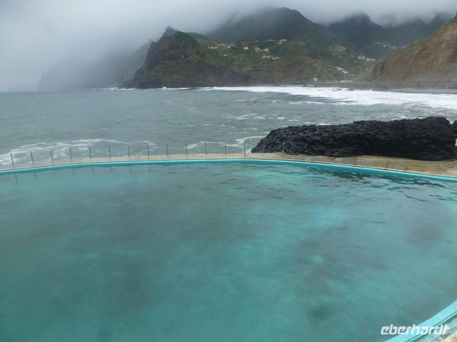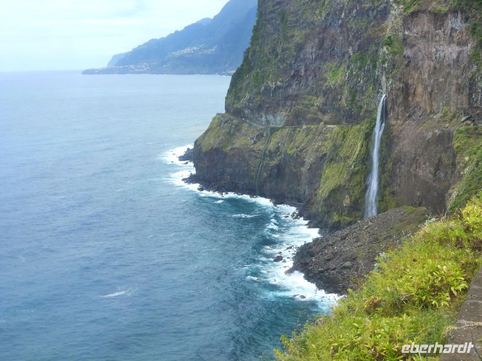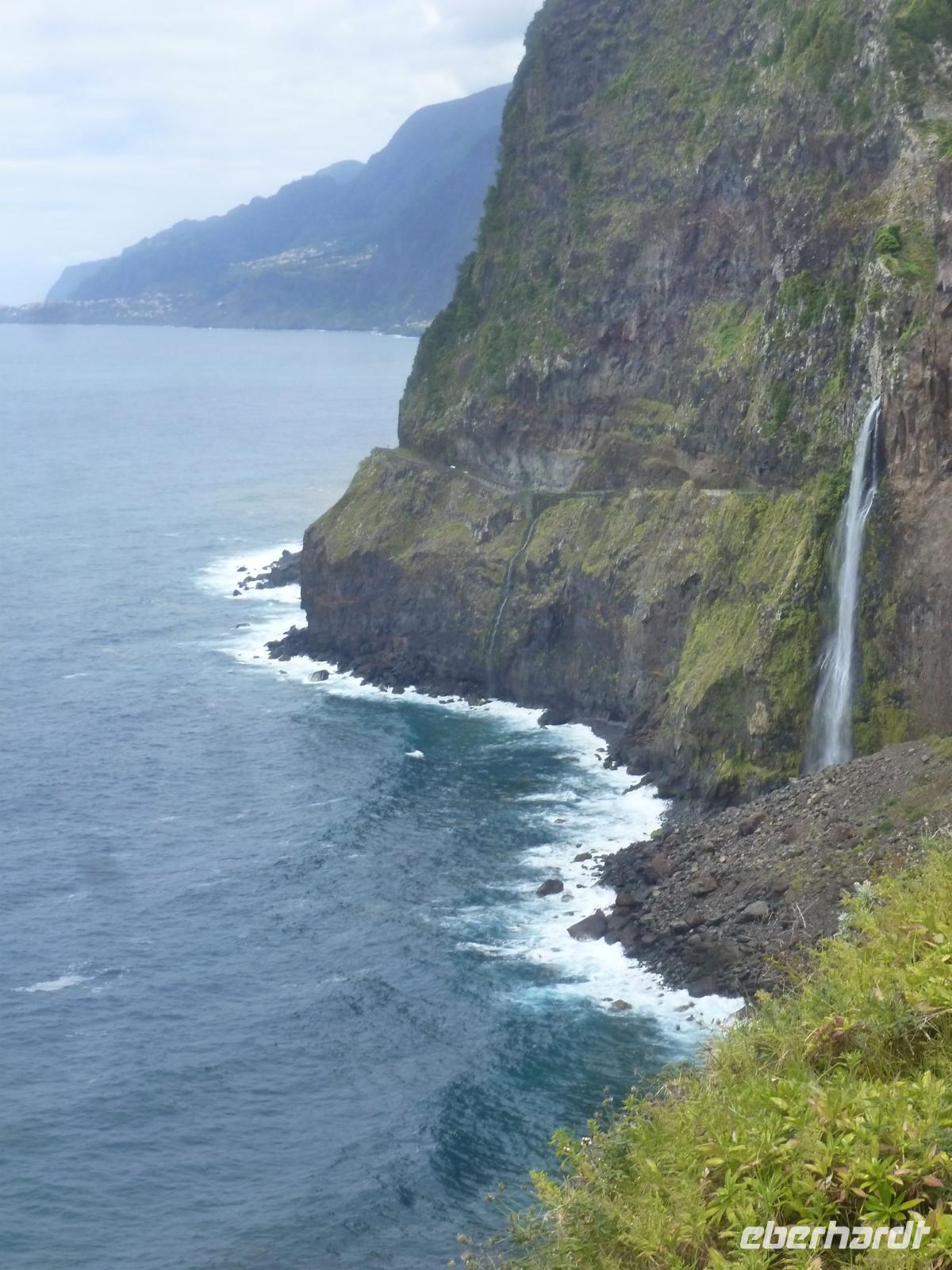 Angekommen in Puerto Moniz machten wir unsere Mittagspause und jeder könnte sich ein eigenes Bild von den „Lava Pools" machen. Benjamin fand hier sogar eine Möglichkeit zum einem ersten Bad. Gestärkt ging es der Küste entlang nach Sao Vicente. Unterwegs machten wir einen Foto-Stopp am Wasserfall „Brautschleier" und sahen wie man einen Kuhstall in einem Bungalow verwandeln konnte.