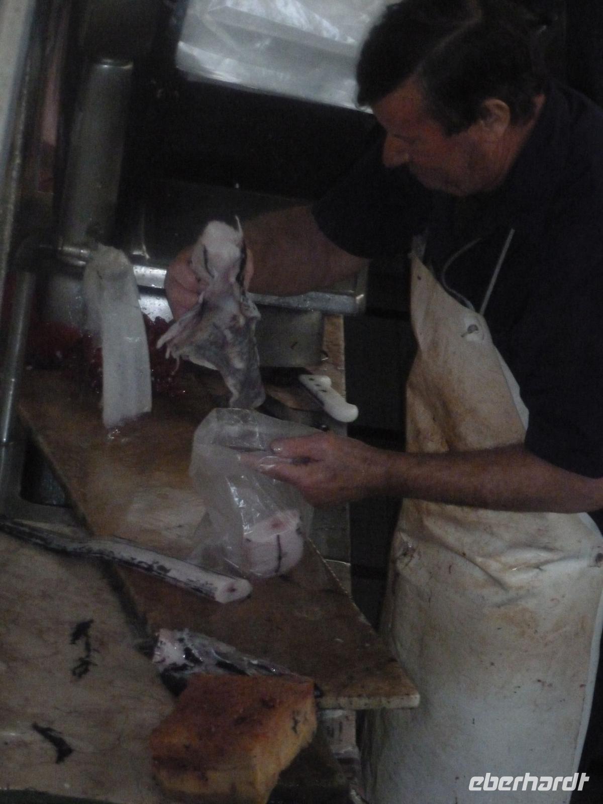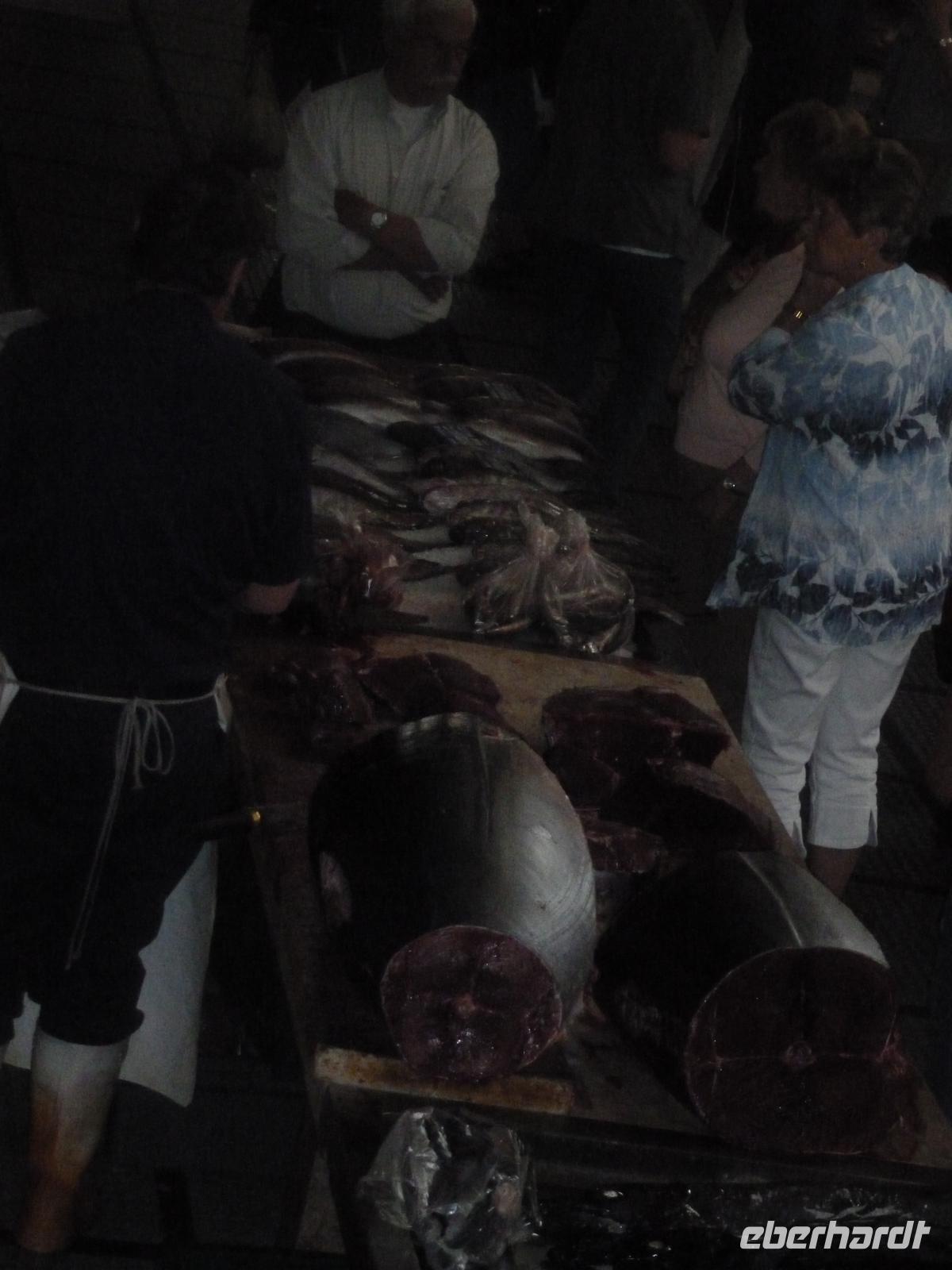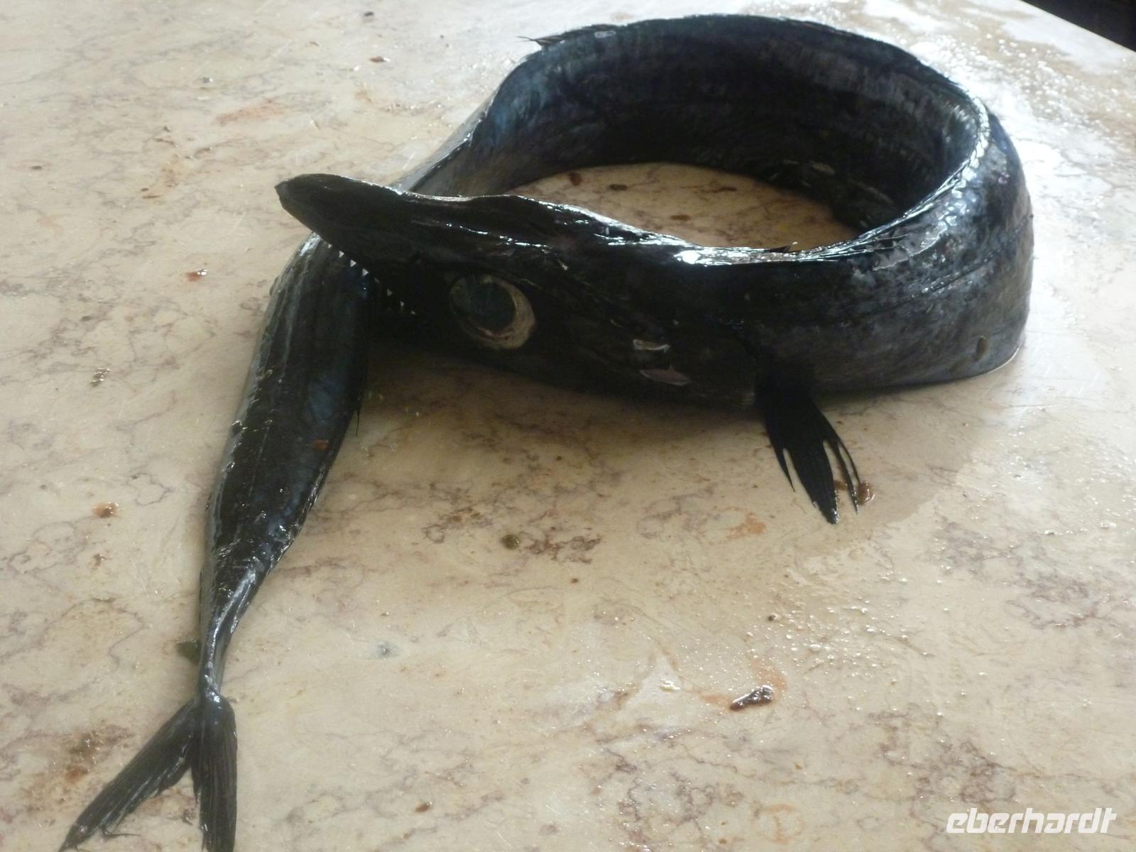 Anschließend fuhren wir in das Zentrum. Nach einen kleinen Bummel durch die Altstadt ging es in die Markthalle Funchals. Hier sahen wir den typischen schwarzen „Degenfisch" in Natur, welcher nur nachts gefangen wird und hier von den Fischer zum Verkauf anboten wird. Wir kosteten von den vielen Früchten Madeiras wie zum Beispiel Papaya, Maracuja, die süßen Bananen und Anoa.