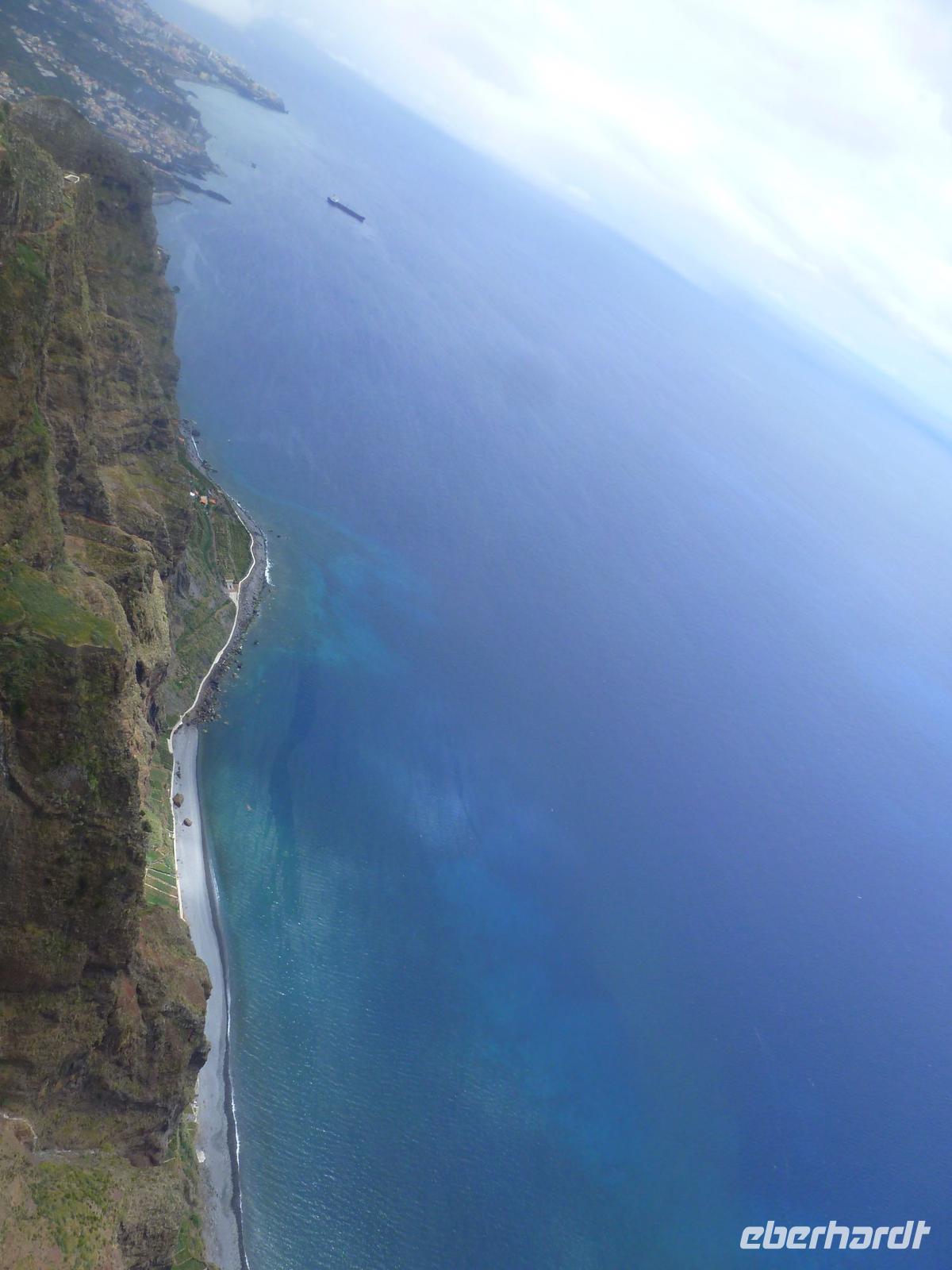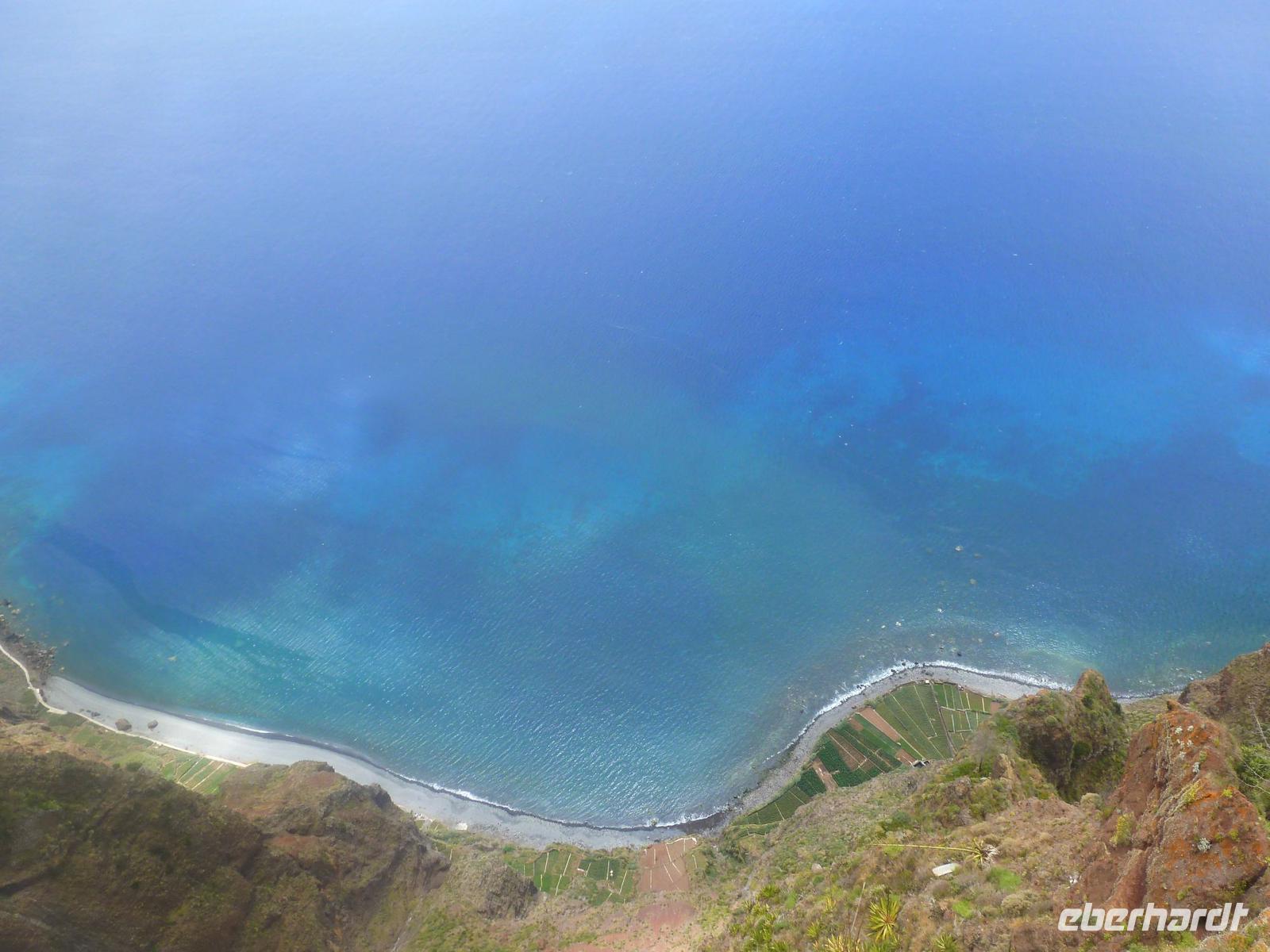 Gestärkt mit einem Snacks auf der Terrasse der Markthalle ging es weiter zur höchsten Steilklippe Europas „Cabo Girao". Durch die Glass Plattform konnte man 589 Metern tief hinunter ins Meer schauen. Wir fühlten uns wie auf der „Sky Walk" im Gran Canyon, Colorado. Weiter ging es auf ein kleines privates Weingut, welches wir besichtigten und eine kleine Kostprobe von einem mehr als 30 Jahre alten Madeira-Wein erhielten. Letzter Stopp für heute war das kleines Fischerdorf „Camara de Lobos", der Heimat des Schwarzdegenfisches und „Poncha", den typischen Likör Madeiras. Eine Verkostung war für uns ein „Muss".