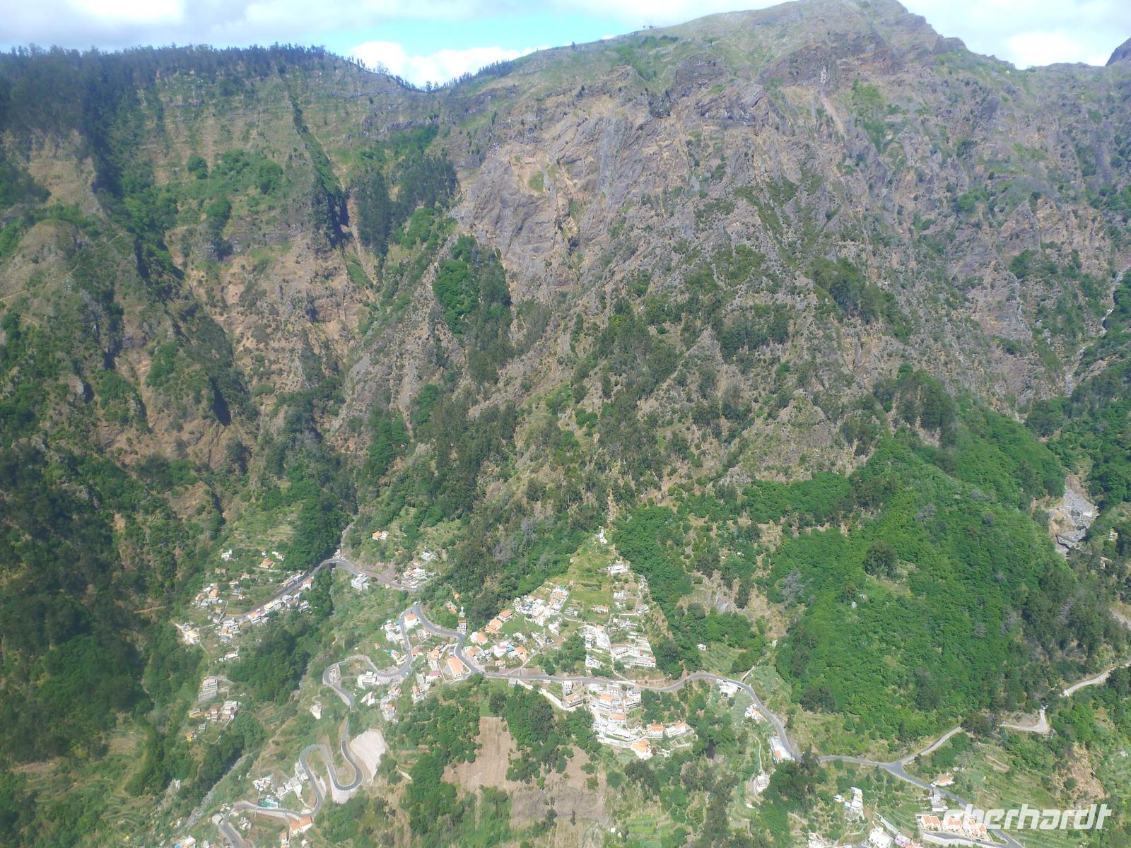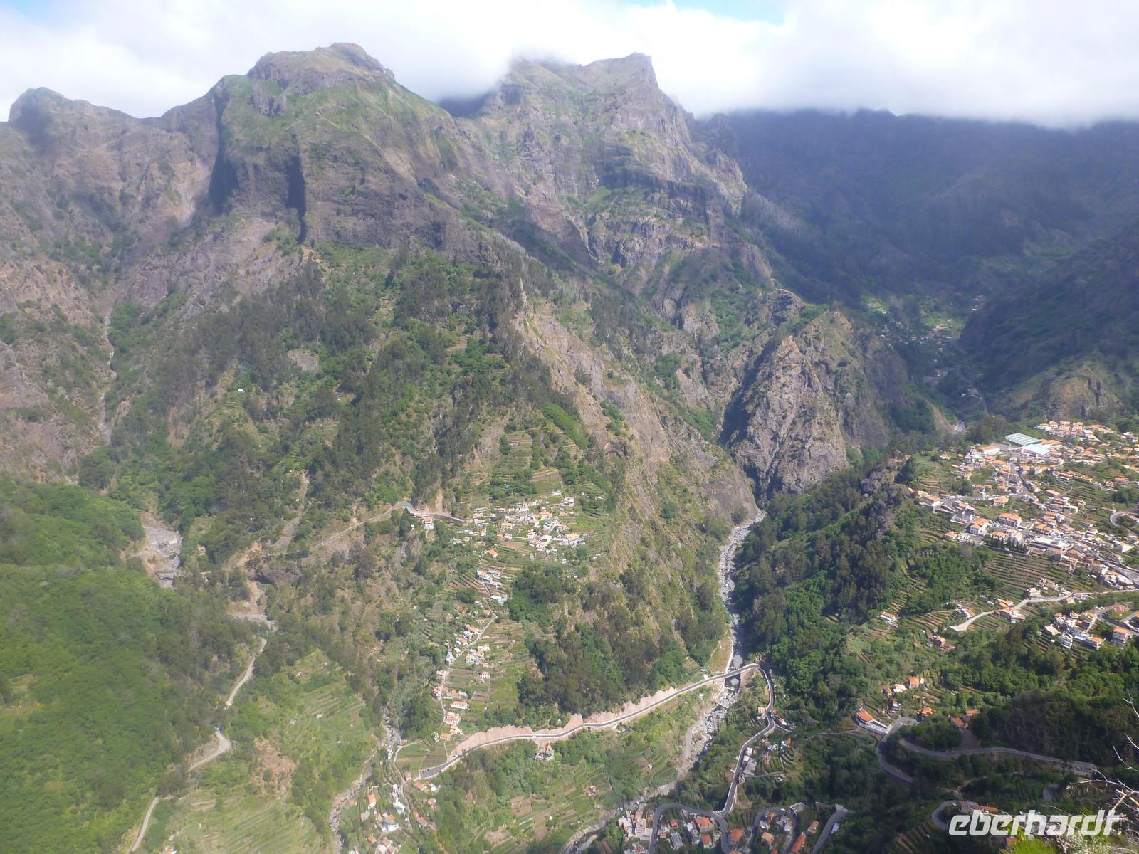 Danach brachte uns unserer Busfahrer Ricardo auf 1.094 Meter Höhe zum Aussichtspunkt „Neblige Tanne", von wo sich uns ein fantastischer Blick auf das berühmte Nonnental bot. Von hier oben sah alles wie im „Reich der Lilieputs" aus. Das Wetter meinte es heute besonders gut mit uns, denn die Sonne strahlte ohne Hindernisse auf uns herab. Abgerundet wurde dieser herrliche Moment mit der Einladung von Eberhardt Travel zur Verkostung eines madeirischen Kirsch-Likörs.