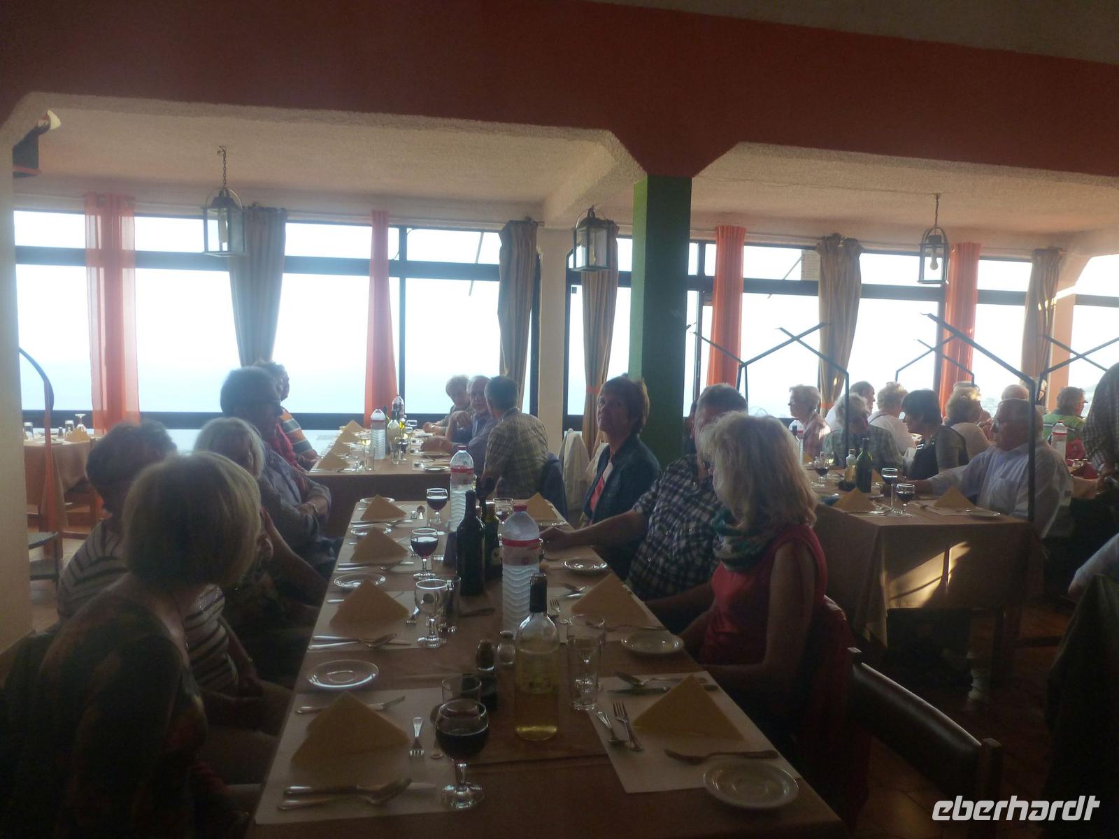 Danach fuhren wir auf einen Aussichtspunkt in 1.000 Meter Höhe und genossen einerseits die herrliche Aussicht auf die Nordwest Küste und anderseits den „Nikita de Maracuya", welche sehr lecker schmeckte. Von dort ging es zurück ins Hotel und dort trafen wir uns dann um 19 Uhr zu Beginn unsere gastronomische Reise im Canixo de Baxo. Heute stand Villa Ventura auf dem Programm wo wir einen ersten Eindruck von den „Espetata" (Fleischspieß) und den berühmten „Degenfisch" Madeiras erhielten.
