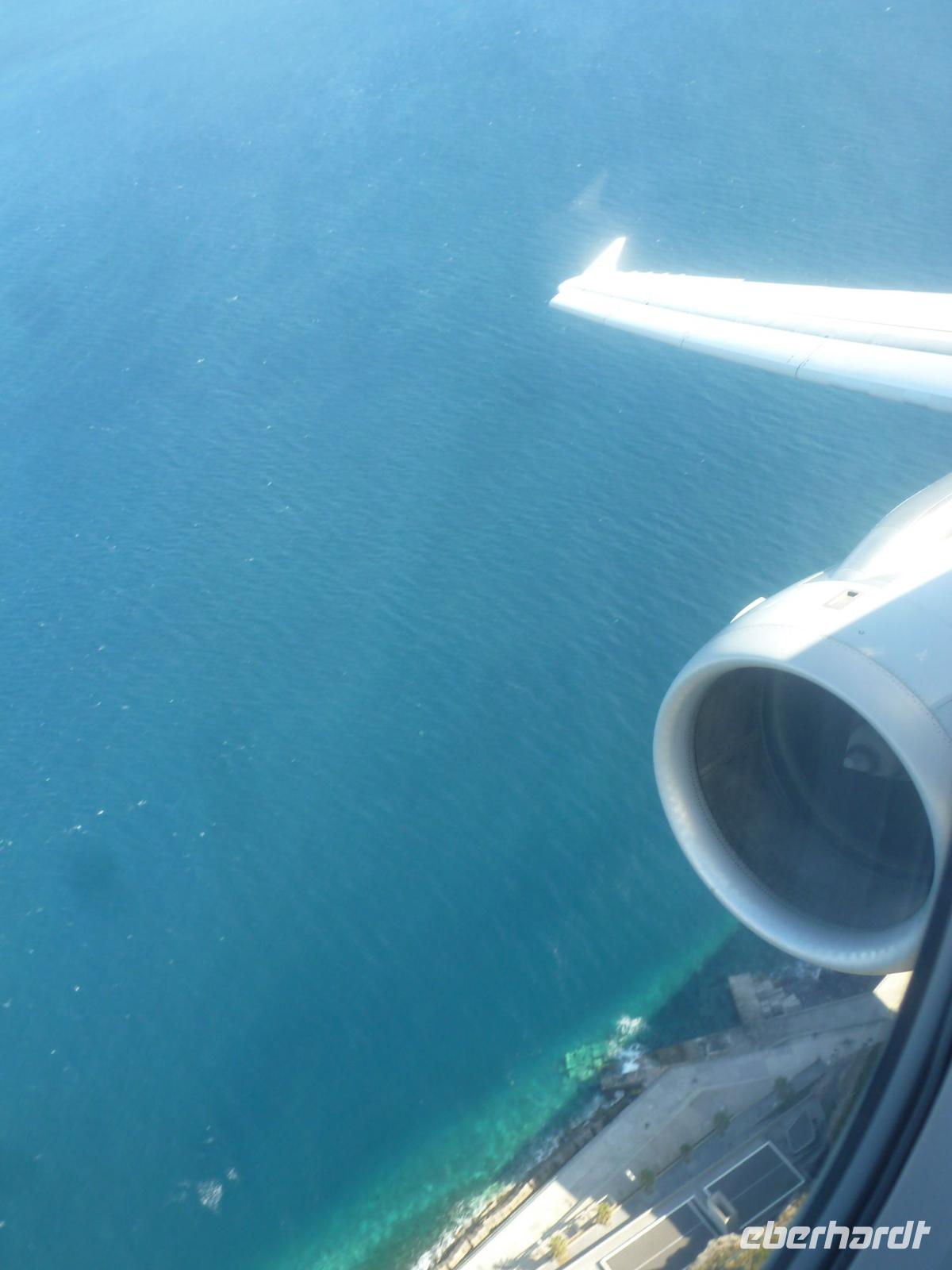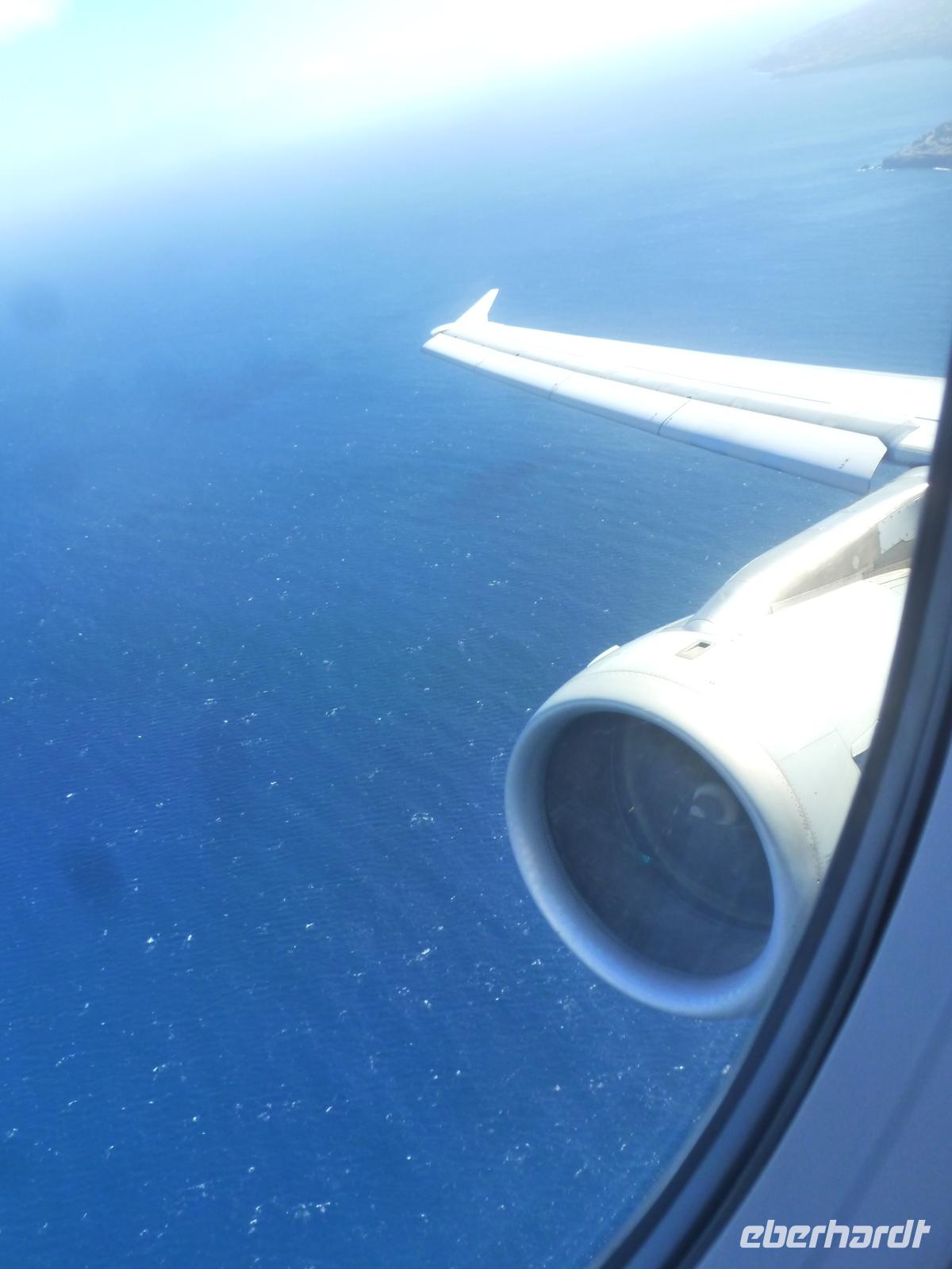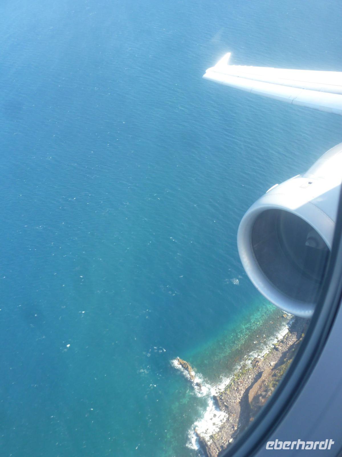 Am Tag vorher hatte ich schon das Check-in online gemacht damit wir alle gute Sitzplätze kriegen. Es ist eine große Lufthansa Maschine und wir sitzen alle ganz vorne. Da die Maschine Fußball Fans nach London für heute Champion League Finale Nacht gebracht hat, müssten wir warten, aber nicht viel. Mit nur 20 Minuten Verspätung fliegen wir zu der Insel des ewigen Frühlings. Eine Frau von unseres Gruppe ist das erste Mal geflogen ist.