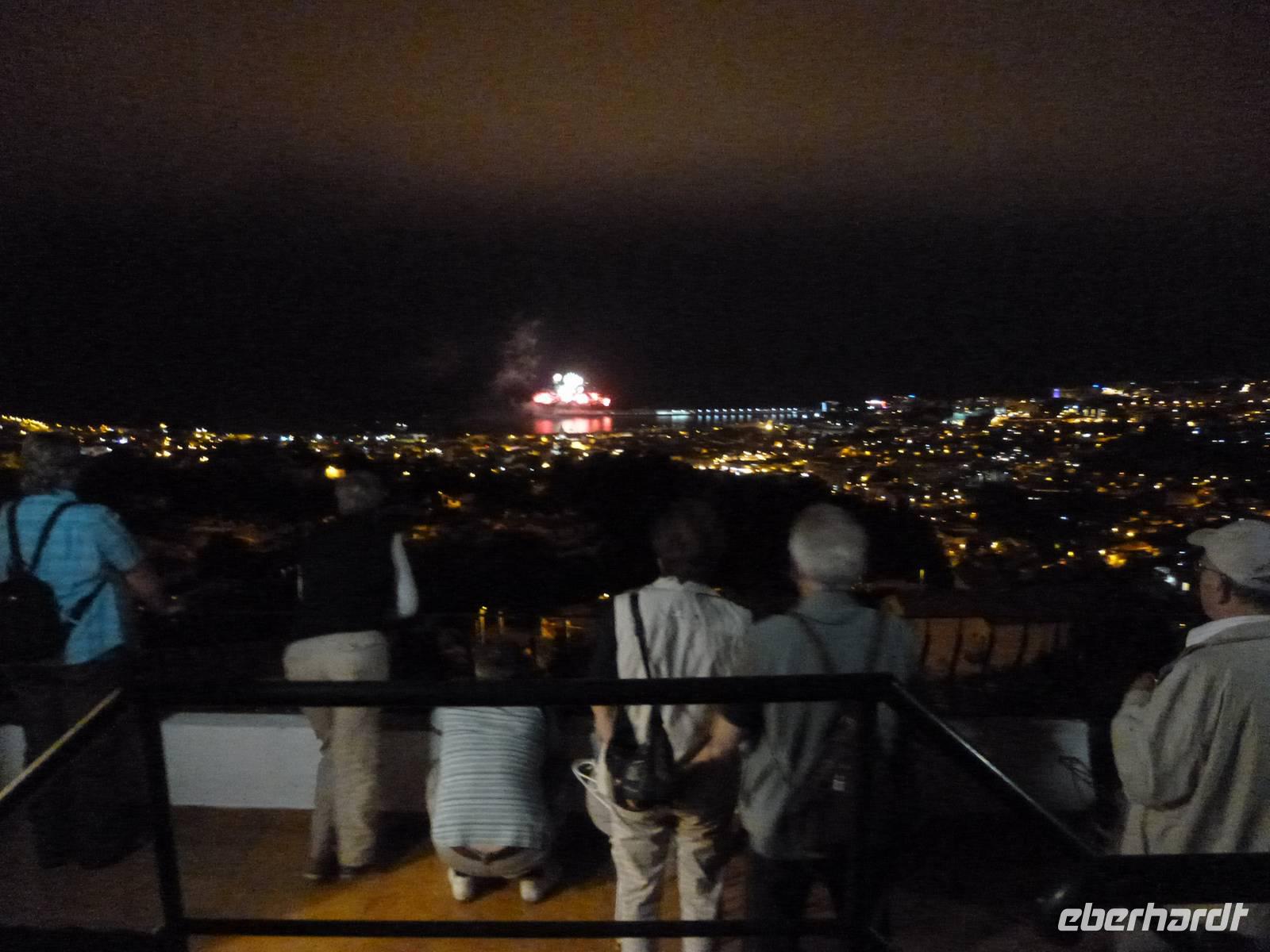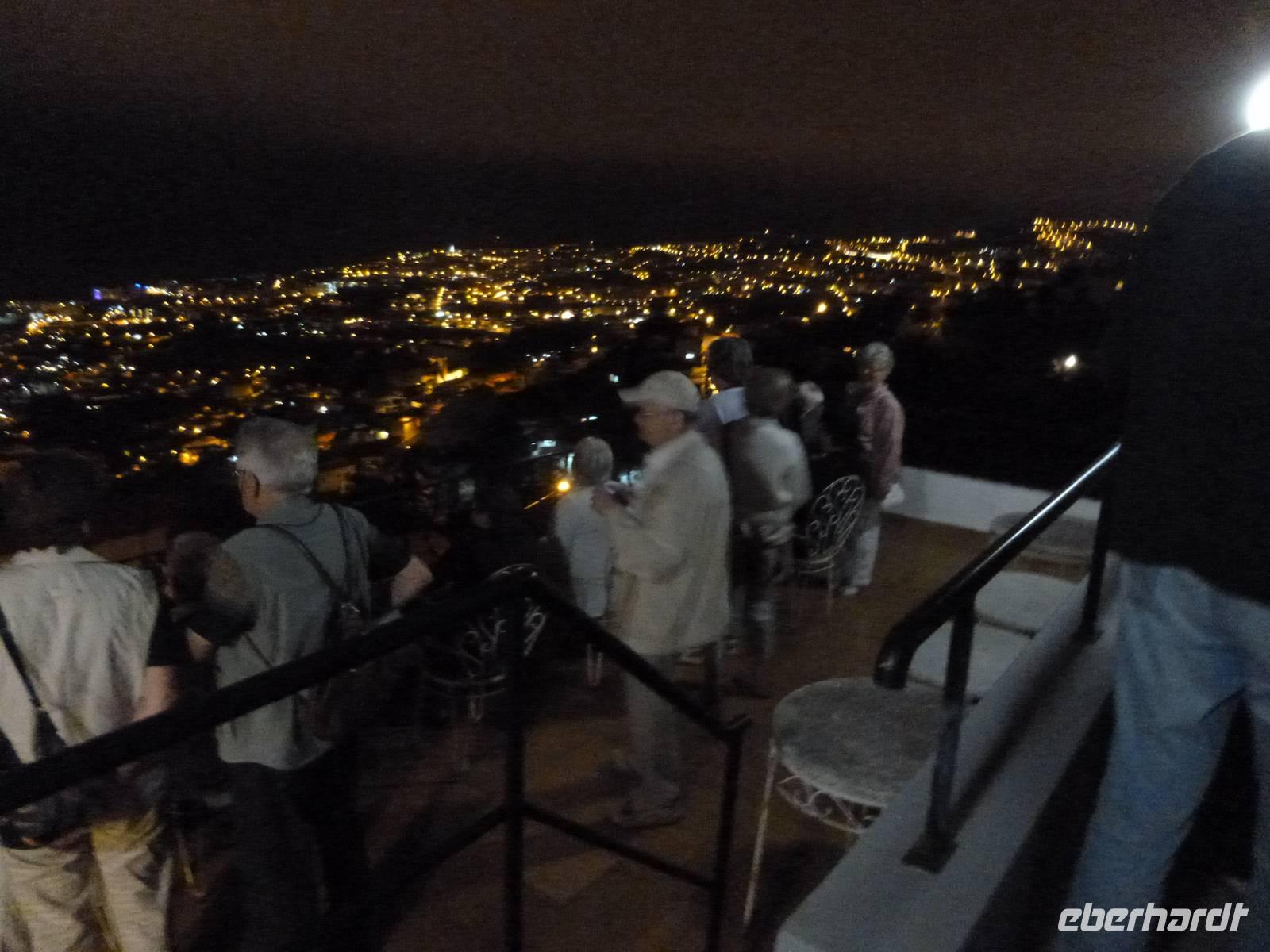 Gemeinsam mit Helena besprechen wir bei einem Glas Madeira-Wein die kommende Woche. Bereits 1,5h später werden wir von unserem Bus abgeholt und zum Restaurant Vasco da Gama gebracht, welches hoch über den Dächern von Funchal liegt. Das Fleisch ist teilweise sehr spanisch, aber wir haben trotzdem einen schönen Abend und können uns gegenseitig kennenlernen. Von Weitem sehen wir abends das Feuerwerk des Atlantikfestivals. Wir sind aber einstimmig der Meinung, daß wir lieber an den Hafen hätten fahren sollen, um einen eindrucksvolleren Blick zu haben. Das nächste Mal - wir wollen ja alle nochmal wiederkommen. Müde kehren wir nach dem ersten Tag ins Hotel zurück.
