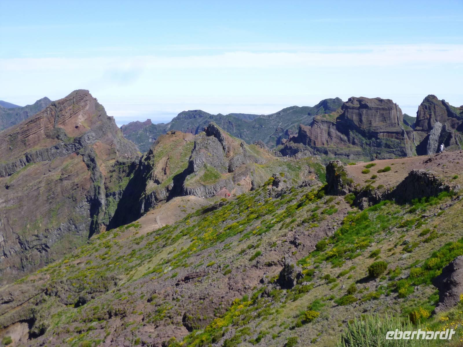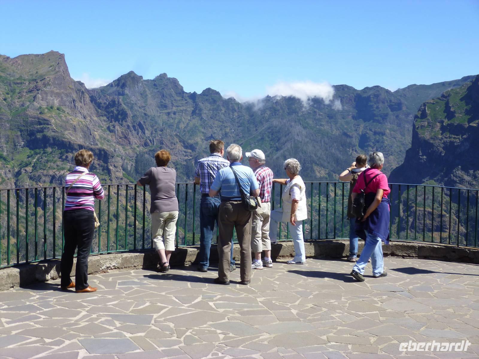 Wir starten pünktlich und fahren als erstes nach Camacha in eine Korbflechterei. Wir schauen einem Arbeiter über die Schulter. Helena erzählt uns, daß er die Arbeit als Zuverdienst ausübt - neben seiner Anstellung als Beamter. Einige Gästen nutzen die Möglichkeit und kaufen gleich ein Souvenir, da es hier eine gute Auswahl an Mitbringseln gibt. Weiter geht unsere Fahrt in die Mitte der Insel zum Pico D`Areiro. Wir haben noch tolles Wetter uns genießen die Aussicht. Weiter fahren wir nach Ribeiro Frio, wo wie die Forellenzucht bestaunen und eine kleine Wanderung unternehmen. Helena punktet mit hervorragenden botanischen Kenntnissen. Wir spazieren durch den Urlaub und genießen die gute Luft. Nach einem kurzen Abstieg machen wir noch kurz Stop an einer Bar, um mit dem Nationalgetränk Poncha auf unsere geimeinsame Reise anzustoßen. Weiter führt unsere heutige Fahrt nach Santana, wo wir unser Mittagessen einnehmen und anschließend etwas Freizeit haben. Die strohgedeckten Häuschen in Santana sind ein beliebtes Fotomotiv. AUf unserer weiteren Fahrt lassen wir die Landschaft an uns vorüber ziehen und lauschen dem Klang von madeirensischer Fadomusik. Am Aussichtspunkt an der Ostspitze haben wir noch einmal einen schönen Blick auf diesen Teil der Insel - wenn auch ein paar Regentropfen ein paar Grautöne ins Bild zeichnen. Am Abend spazieren wir an der Promenade entlang und die meisten Gäste essen mit mir in der Villa Ventura.