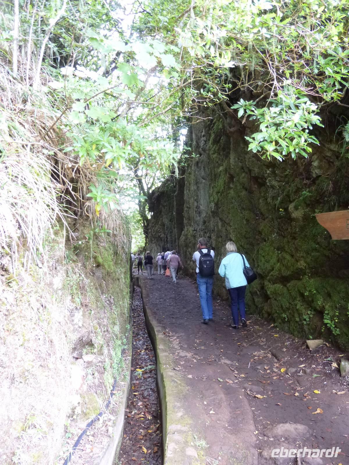 Fast alle Gäste haben den Halbtagesausflug gebucht und so machen wir uns gutgelaunt auf den Weg zum Ausgangspunkt unserer Levadawanderung. Schön Früh war der Himmel dunkel, von Sonne weit und breit nichts zu sehen. Wir versuchen es trotzdem, entscheiden aber auf Grund der Witterunng eine alternative Route zu gehen, in der Hoffung auf besseres Wetter. Da wir eine sehr große Gruppe sind, kommt Paula Lina als 2. Reiseleterin dazu.