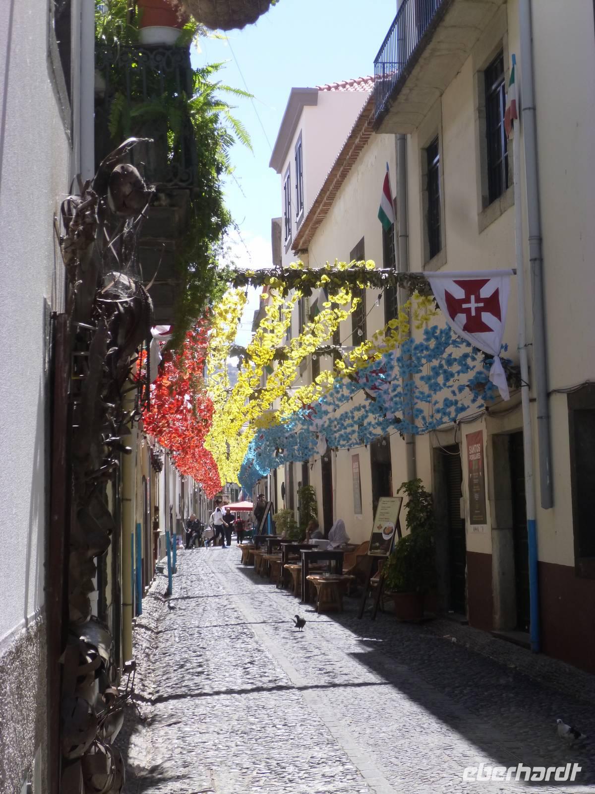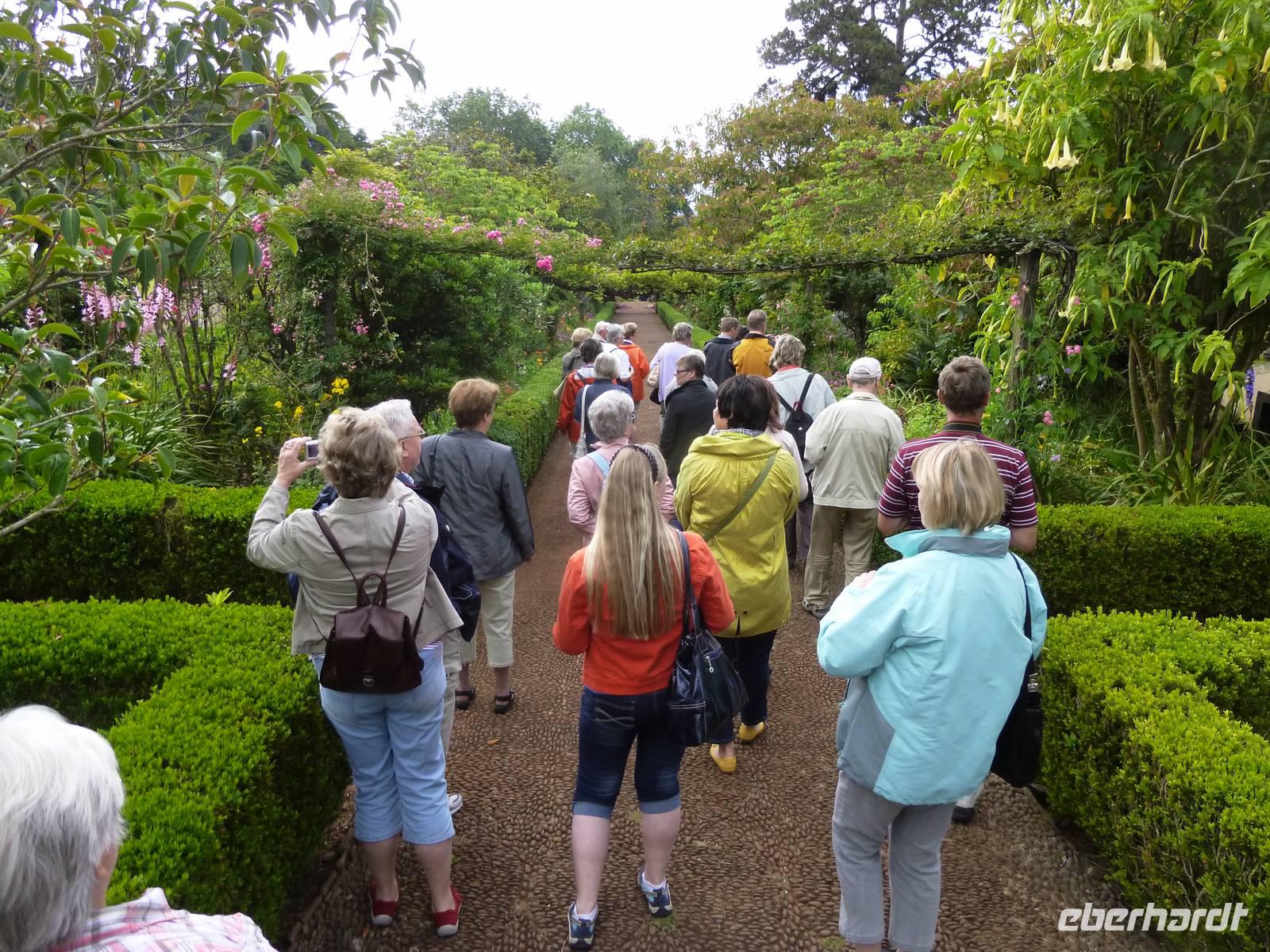 Alle Gäste nehmen am Zusatzausflug zu den "Gärten Madeiras" teil und so starten wir wieder pünktlich 9 Uhr. Zuerst besuchen wir die Quinta do Palheiro und begeben uns auf eine ausführliche Besichtigung durch diesen wunderschön angelegten Garten. Von Weitem versuchen wir einen Blick auf Familie Blandy beim Frühstück zu erhaschen, was auf Grund der Entfernung doch zu schwierig ist und so genießen wir den "Garten Eden" mit seiner einzigartigen Natur - und Pflanzenwelt. Anschließend fahren wir weiter zum Jardim Botanico. Der Weg vom Bus bis dorthin ist bei der sehr warmen Temperaturen sehr anspruchsvoll und so genießen wir den Schatten des Anwesens. Helena zeigt uns den liebevoll angelegten Garten und gibt wertvolle Tips zur Pflege der Orchideen zu Hause. Danach essen wir leckeren selbstgebackenen Kuchen und trinken einen Kaffee oder frisch gepressten Saft auf der Terrasse des Hauses, die uns wiederum einen fantastischen Asublick auf Funchal gewährt. Der Nachmittag steht heute zur freien Verfügung. Einige Gäste kehren zum Hotel zurück, ein großer Teil kommt mit mir noch einmal in die Stadt. Mit dem Roten Citybus wollen wir eine kleine Sightseeingtour durch Funchal machen und uns auf dem Sonnendeck den Wind ins Gesicht wehen lassen. Bei der ca. 1,5 h Rundfahrt entdecken wir noch einige schöne Ecken der Stadt, bevor wir am Hafen wieder aussteigen und durch die Fußgängerzone wieder zurück in die Altstadt laufen, wo wir in einem netten Restaurant ein Päuschen einlegen. Nun wollen wir natürlich testen, wie die von Helena uns ans Herz gelegten Linienbusse fahren. Der Busfahrer will uns vehement in einen anderen Bus schicken: "Express Bus über Autobahn", aber wir wollen über die Dörfer nach hause "tingeln". So schlimm wie erwartet ist es nicht, aber unser kleines Abenteuer hat viel Spaß gemacht und wir konnten etwas mehr vom Leben der Madeirenser mitbekommen.