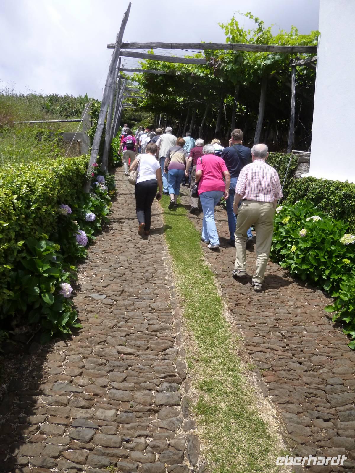 Mit Regenjacke ausgerüstet laufen wir los und genießen unsere Wanderung durch kleine Dörfer entlang der Levada. Bei einem kurzen Stop an einer Bar warten wir einen Schauer ab, entscheiden uns dann aber weiterzugehen. Wir können Arbeiter beim Säubern einer Levada zusehen und erfahren von Helena viel aus deren Leben. Trotz des schlechten Wetters hatten wir einen wunderbaren Tag.