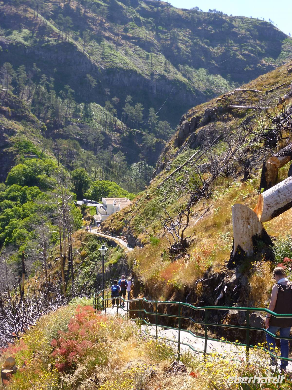 Weiter gehts auf einer serpentinenreichen Strecke ins Nonnental. Bei schöner Sicht genießen wir vom Aussichtspunkt Eira do Serado den Blick ins Nonnental und lauschen Helenas Erzählungen über den Ursprung der Besiedlung dort. Unser Busfahrer Paulo bringt uns wieder sicher in die Hauptstadt zurück, wo unser nächster Reisehöhepunkt wartet: Wir besuchen Esmeralda in ihrem wunderbaren Kräutergarten. Als wir ankommen, ist der Tisch schon für uns gedeckt und wir essen Walnußkuchen und tringen Zitronentee unter schattenspendenden Sonnensegeln - hier läßt sichs aushalten und wir würden gerne noch etwas bleiben. Bei einer kleinen Führung durch ihren Garten, weiht uns Esmeralda in die Kräuterheilkunde ein und wir kehren mit neuem, interessanten Wissen UND dem Rezept für den Kuchen und einen Maracuja-Pudding zurück. Am Abend treffen wir uns alle zum gemeinsamen Abendessen im Fischrestaurant Atlantis. Wir bummeln gemütliche die kleine Promenade entlang und genießen den lauen Abend. Das Essen im Restaurant schmeckt köstlich - es gibt die madeirensische Spezialität Degenfisch mit Banane.