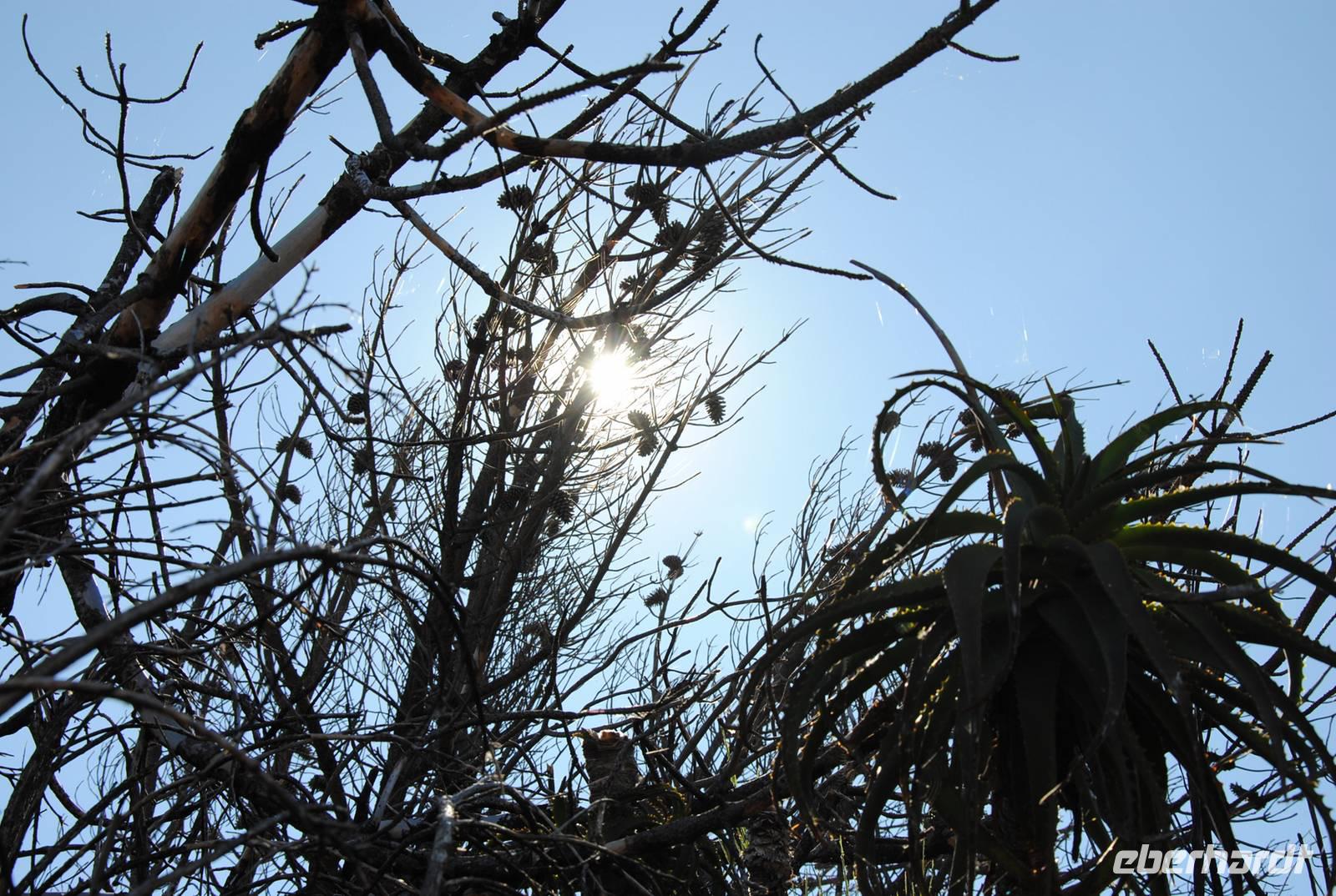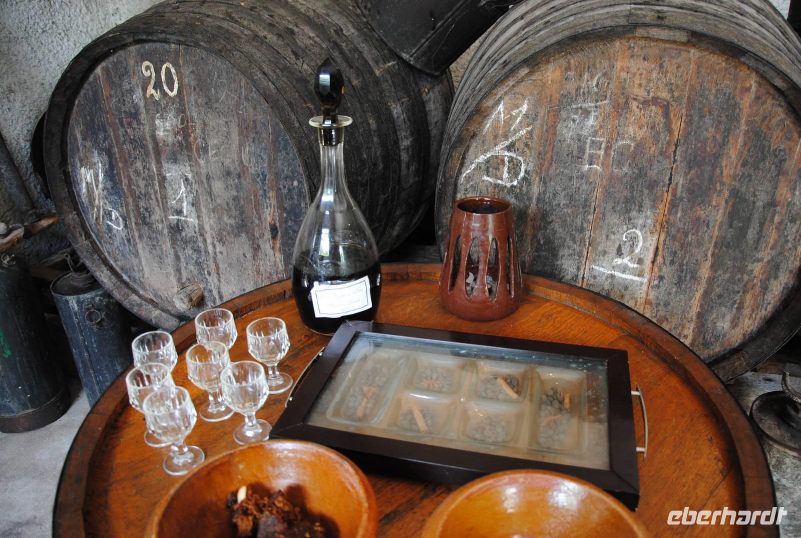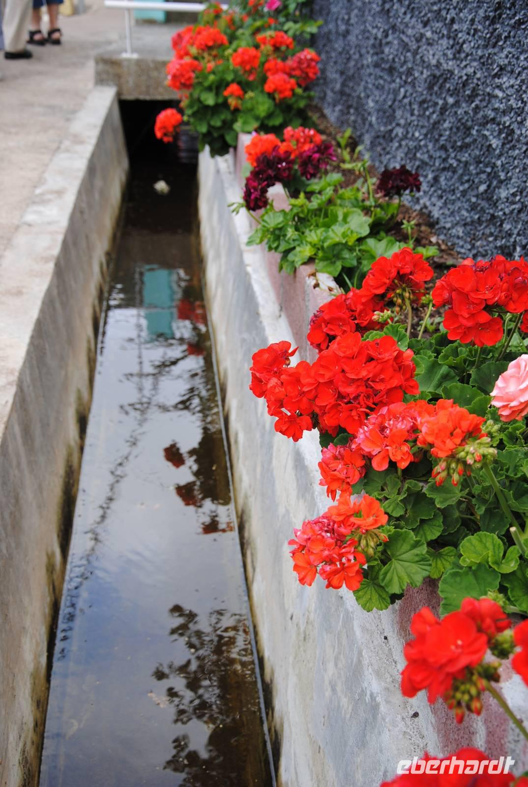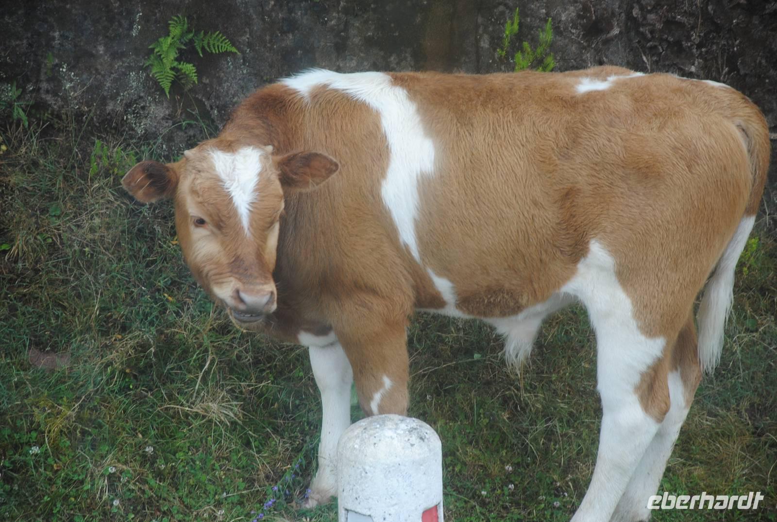 Nach dem Frühstück trafen sich alle, wie gewohnt vor dem Hotel. Der Bus war schon zum Einstieg bereit und nun wurde Herr Schmitz, unser Reisebegleiter, in den am Vorabend entwickelten Plan eingeweiht. Auch für ihn etwas ganz neues und besonderes auf einer Flaschenpost mit unterschreiben zu dürfen. Für viele Portogassen und damit auch für die Bewohner von Madeira gilt die Einheit der drei „F´s" - Fatima, Fußball und Fado. Am heutigen Morgen stand das Moto ganz im Zeichen von Fatima. Unser erster Weg führte uns nach Monte zur Barockkirche, in der der letzte österreichische Kaiser Karl begraben ist - aber wie Helena erzählte ohne sein Herz. Der Aufstieg zur Kirche war für uns als Nichtpilger etwas einfacher - nur flache Stufen. Gerade zum Marienfest am 15. August pilgern viele Gläubige die steilen Stufen zur Kirche auf Knien. Gott sei dank ersparte uns dies unsere Reiserführerin Helena. Vieles erzählte sie uns dann über die Kirche und die einzelnen Schutzheiligen und ihre Bedeutung für die Gläubigen. Danach teilte sich die Gruppe - und zwar in die „Mutigen" und in die etwas weniger „Mutigen". Die „Mutigen" nutzten die Gelegenheit mit den traditionellen Korbschlitten ins Tal zu fahren. Ursprünglich als Lastentransportmittel und später dann als eine Art öffentliches Verkehrsmittel genutzt, sind sie heute nur mehr eine Touristenattraktion. Die Mutigen wurden beim Einstieg in den Bus mit viel Applaus belohnt. Wer glaubte, dass dies das Highlight des Tages war, wurde eines Besseren belehrt. Über abenteuerliche Wege führte der Weg ins Nonnental. Enge Serpentinen und eine schmale Straße führte auf den Aussichtpunkt Eira do Serrado in 1050m. Am Anfang fürchteten wir, dass die Sicht schlecht sein würde - aber je weiter wir nach oben kamen, desto besser kam die Sonne durch und am Ende war schließlich stahlblauer Himmel. Mit einer herrlichen Sicht ins Nonnental wurden wir entschädigt. Auch durfte die Kostprobe des Sauerkirschlikörs nicht fehlen. Gut gelaunt ging es wieder in Richtung Funchal zurück. Helena lenkte die Truppe mit einigen Informationen, aber ganz besonders mit ihren Nonnenwitzen ab. So merkte man gar nicht, wie schnell wir wieder in Funchal waren. Bevor wir zu Besuch im Kräutergarten von Esmeralda waren, legten wir noch einen kurzen Fotostopp am Pic dos Barcelos ein. Zur Mittagszeit kam der Imbiss mit leckerem Zitronengrastee und Walnusskuchen gerade recht. Wer es etwas feuriger wollte, machte sich ein Butterbrot mit selbst gemachter Apfel-Chili-Konfitüre. So gestärkt ging es dann in den Kräutergarten. Dort erzählte Esmeralda vieles über Kräuter und ihre positiven Wirkungen. Am Nachmittag hatte alle wieder die Möglichkeit eigene Vorstellungen zu realisieren. Um 19 Uhr ging es zum Abendessen. Diesmal auch wieder außerhalb des Hotels und zwar ins Restaurant Atlantis. Heute stand das 2. Nationalgericht der Insel auf der Karte. Leider war der Aufzug außer Betrieb. Aber für uns kein Problem. Wir gingen die Außentreppen zum Restaurant hinunter und wurden mit einem schönen Blick auf die Klippen und das Meer entschädigt. Im Restaurant genossen wir den Degenfisch und den Blick aufs Meer. Langsam setzte die Dämmerung ein und gut gelaunt kehrten wir gegen 22 Uhr ins Hotel zurück. Viele gingen gleich zu Bett, denn morgen war schon für 8 Uhr 30 die Abfahrt geplant. Ziel sollte hier die Hochalm sein, wo die „Milka-Kühe" zu Hause sind.