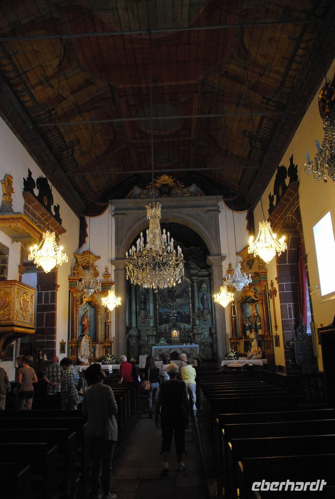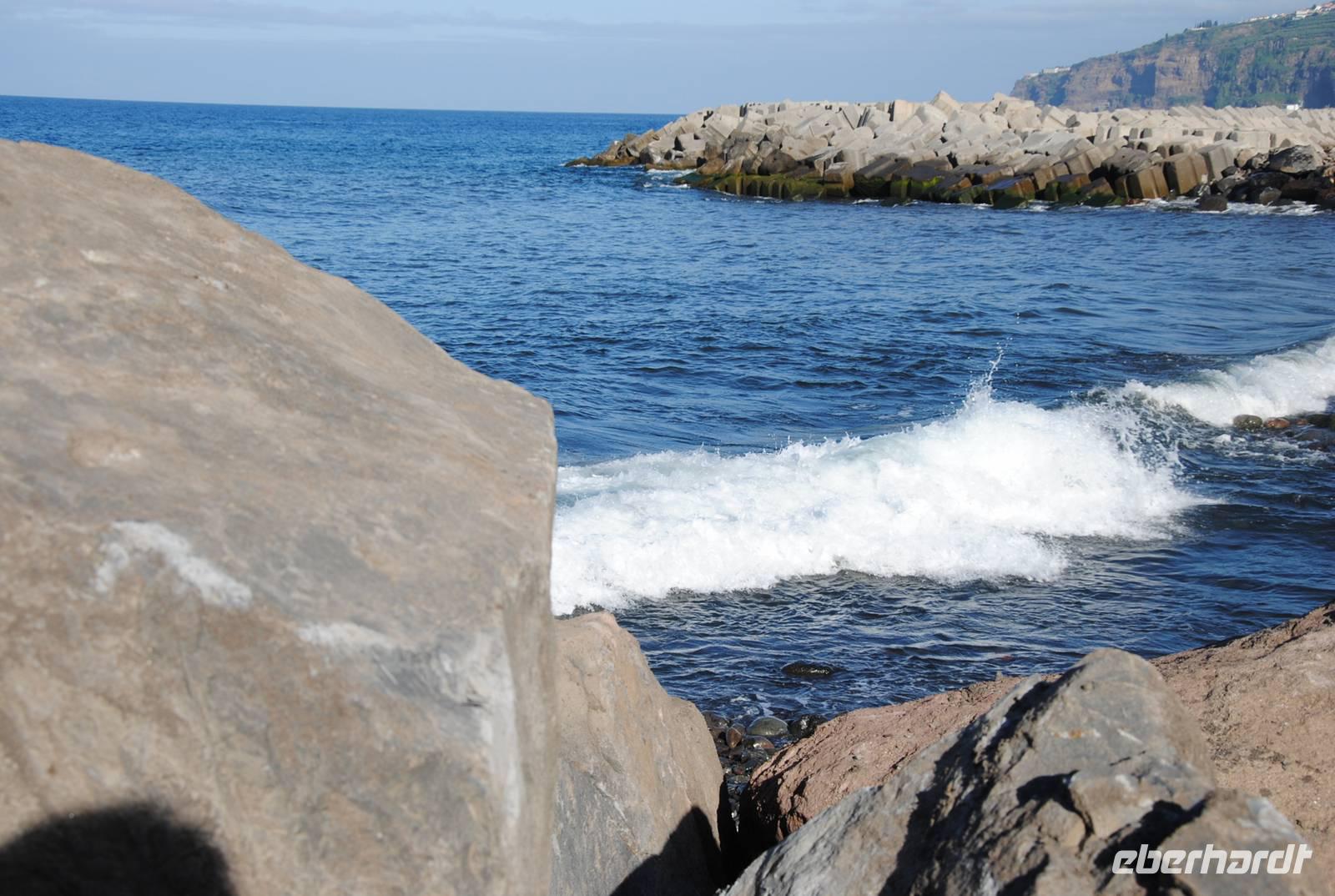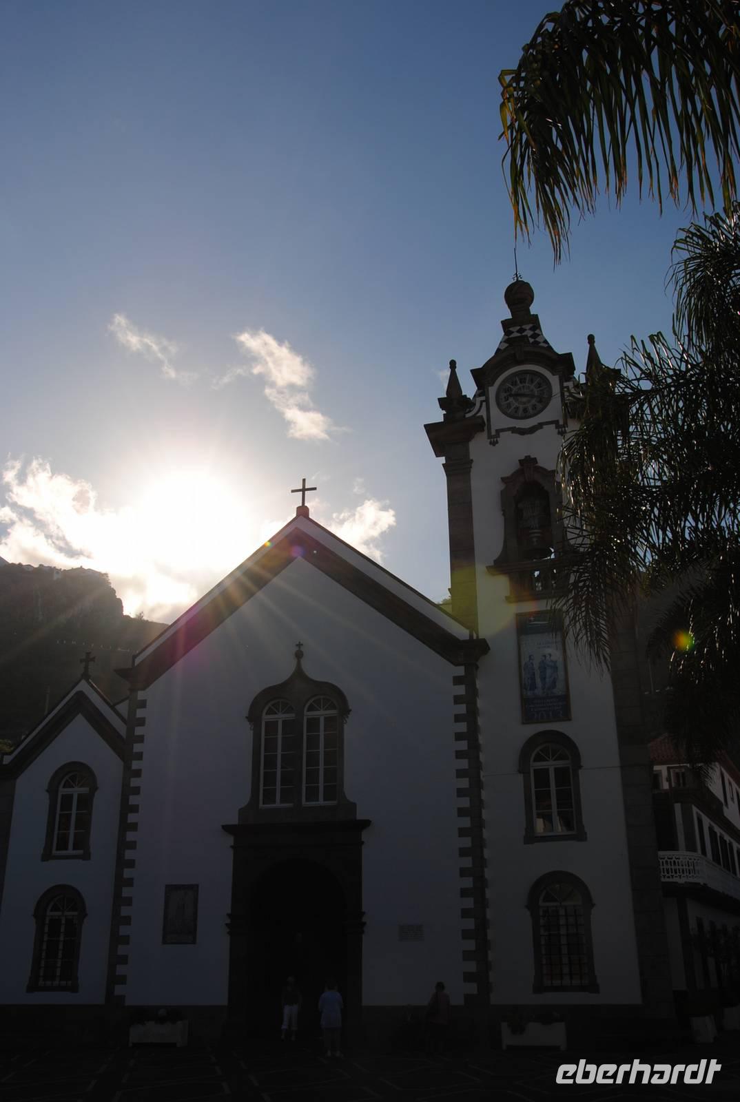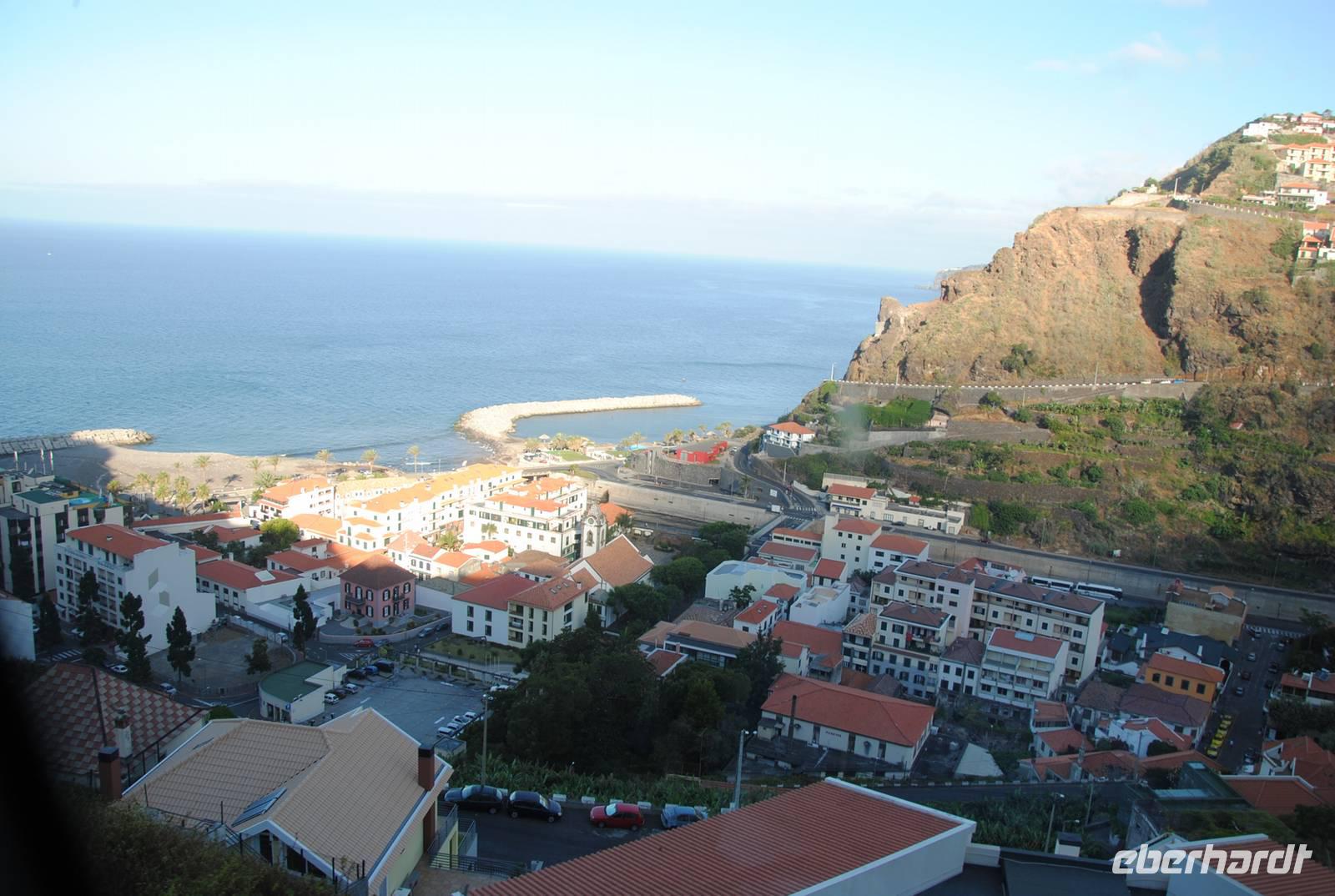 Heute musste die Gruppe schon etwas zeitiger in der Hotellobby sein, denn heute sind einige Kilometer bergauf und bergab zu bewältigen. Voll Erwartung starten wir unsere heutige Tour in Richtung Westen. Unser erster Stopp war der Ort Ribeira Brava. Bei Sonnenschein machten wir einen kleinen Rundgang durch das Dorf und vor allem war die Kirche des Ortes sehenswert. Schon als wir die Kirche betraten fielen die zwei Kronleuchter aus böhmischen Glas ins Auge. Sie gaben dem Gotteshaus etwas Prunkvolles und Edles. Aber auch der Rest der Kirche war wunderschön. Helene erzählte, dass sie ein Geschenk eines reichen Einwohners von Madeiras waren. Durch viele Bananenplantagen ging es immer bergauf in Richtung Paul da Sera auch Hochmoor genannt. Leider mit jedem Meter Höhe wurde das Wetter schlechter - zuerst nur Nebenschwaden setzte dann auch noch etwas Nieselregen ein. Das Hochmoor heute ein Naturschutzgebiet und Weidefläche für Kühe ist es aber nach wie vor wichtig für die Wasserversorgung der Insel. In Porto Moniz angekommen hatte sich das Wetter leider noch nicht gebessert. Kurz vor dem Mittagessen noch ein Fax in Richtung Himmel gesandt und uns blieb nur noch die Hoffnung auf eine Besserung. Und tatsächlich zum Ende unseres köstlichen Mittagsmahls riss der Himmel auf und das Meer und die natürlichen Schwimmbecken im Vulkangestein zeigten sich in herrlichen Farben. Kurzer Hand wurde die Abfahrtszeit um eine halbe Stunde verlängert, so dass jeder genügend Zeit hat im kühlen Nass einige Runden zu drehen. Erfrischt und bei weiterhin schönem Wetter verließen wird Porto Moniz in Richtung Sao Vincente. Leider geht heute die Fahrt nur zum Teil entlang der Küste. Aber dank unseres Busfahrers konnten wir immer einen Blick von dieser Landschaft und das Meer erhaschen. Ob es der Fensterfelsen oder der Brautschleier war, im Licht sah alles beeindruckend aus. Als wir dann aber die frühere Straße direkt sahen, waren wir dankbar, dass heute so ein sicherer Weg über die Insel führt. In Sao Vincente machten wir einen gemeinsamen Rundgang durch das Dorf. Auch hier eine schöne Kirche mit herrlichem Dekor am Vorplatz. Diese erzählt die Geschichte von Vincente, dem Märtyrer. Schon am Morgen teilte Helena die Rezepte des Maracuja-Puddings und Walnusskuchens aus. Ein wichtiges Produkt ist dabei die Gelatine mit Ananasgeschmack. In einem kleinen Kramerladen war diese erhältlich. Blitz schnell erwarben einige dieses Produkt, so dass es schon nach kurzer Zeit ausverkauft war. Nun ging es in Richtung Süden wieder bergauf und der letzte Stopp war in einer Höhe von 1007 Meter am Encumeda. Dieser Ort wird auch das Herz Madeiras genannt, da es genau in der Mitte der Insel liegt. Von dort aus kann man als einzigen Ort das Meer sowohl aus Richtung Süden aber auch aus Norden gleichzeitig sehen. Genau der Richtige Ort ein letztes Mal die köstlichen Nationalgetränke zu sich zu nehmen. Schon jetzt setzte eine wenig Wehmut ein, denn in ca. einer halben Stunde war unsere Tour zu Ende und wir erreichten mit vielen Eindrücken unser Hotel. Ein letztes Mal Abendessen im Hotel und dann mussten die Vorbereitungen für den Abreisetag getroffen werden. Das Packen wird für so manchen bei so vielen Geschenken keine leichte Herausforderung sein.