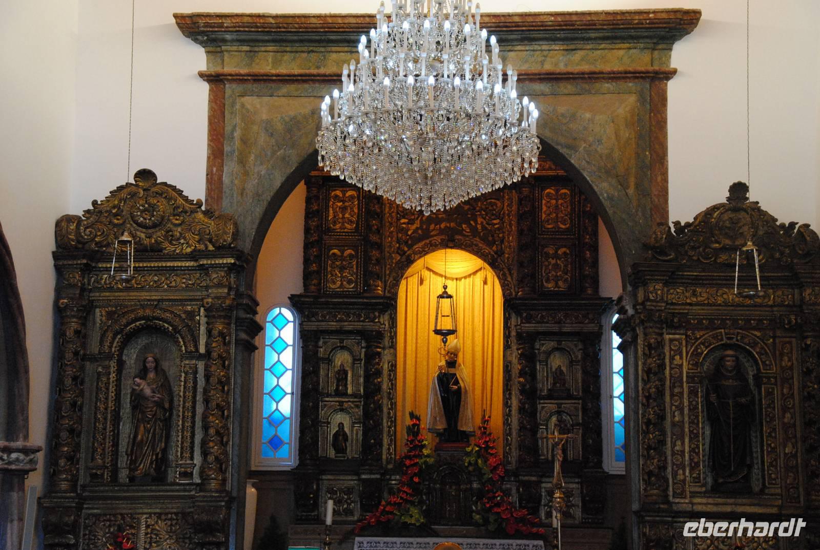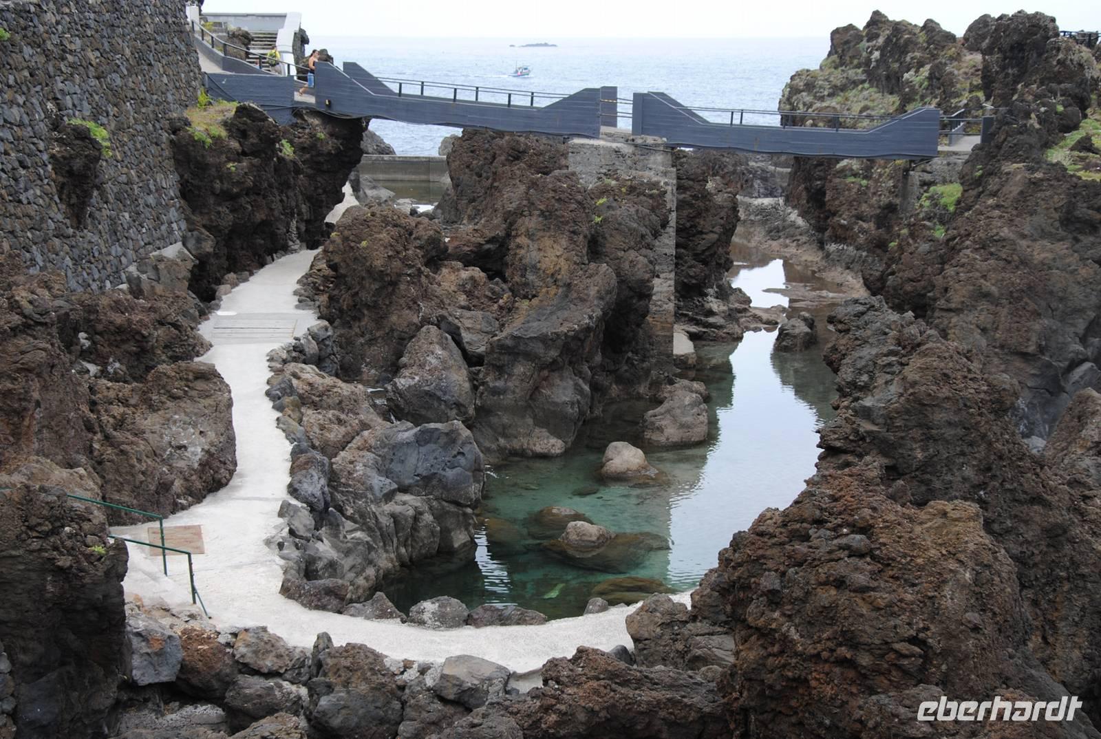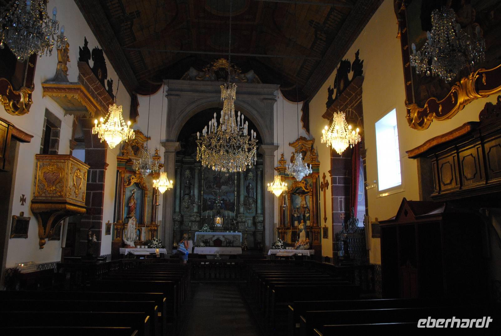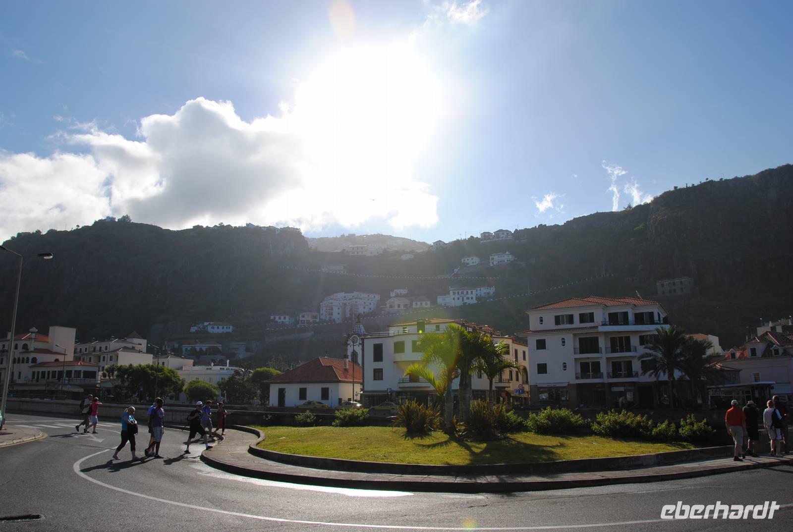 Heute musste die Gruppe schon etwas zeitiger in der Hotellobby sein, denn heute sind einige Kilometer bergauf und bergab zu bewältigen. Voll Erwartung starten wir unsere heutige Tour in Richtung Westen. Unser erster Stopp war der Ort Ribeira Brava. Bei Sonnenschein machten wir einen kleinen Rundgang durch das Dorf und vor allem war die Kirche des Ortes sehenswert. Schon als wir die Kirche betraten fielen die zwei Kronleuchter aus böhmischen Glas ins Auge. Sie gaben dem Gotteshaus etwas Prunkvolles und Edles. Aber auch der Rest der Kirche war wunderschön. Helene erzählte, dass sie ein Geschenk eines reichen Einwohners von Madeiras waren. Durch viele Bananenplantagen ging es immer bergauf in Richtung Paul da Sera auch Hochmoor genannt. Leider mit jedem Meter Höhe wurde das Wetter schlechter - zuerst nur Nebenschwaden setzte dann auch noch etwas Nieselregen ein. Das Hochmoor heute ein Naturschutzgebiet und Weidefläche für Kühe ist es aber nach wie vor wichtig für die Wasserversorgung der Insel. In Porto Moniz angekommen hatte sich das Wetter leider noch nicht gebessert. Kurz vor dem Mittagessen noch ein Fax in Richtung Himmel gesandt und uns blieb nur noch die Hoffnung auf eine Besserung. Und tatsächlich zum Ende unseres köstlichen Mittagsmahls riss der Himmel auf und das Meer und die natürlichen Schwimmbecken im Vulkangestein zeigten sich in herrlichen Farben. Kurzer Hand wurde die Abfahrtszeit um eine halbe Stunde verlängert, so dass jeder genügend Zeit hat im kühlen Nass einige Runden zu drehen. Erfrischt und bei weiterhin schönem Wetter verließen wird Porto Moniz in Richtung Sao Vincente. Leider geht heute die Fahrt nur zum Teil entlang der Küste. Aber dank unseres Busfahrers konnten wir immer einen Blick von dieser Landschaft und das Meer erhaschen. Ob es der Fensterfelsen oder der Brautschleier war, im Licht sah alles beeindruckend aus. Als wir dann aber die frühere Straße direkt sahen, waren wir dankbar, dass heute so ein sicherer Weg über die Insel führt. In Sao Vincente machten wir einen gemeinsamen Rundgang durch das Dorf. Auch hier eine schöne Kirche mit herrlichem Dekor am Vorplatz. Diese erzählt die Geschichte von Vincente, dem Märtyrer. Schon am Morgen teilte Helena die Rezepte des Maracuja-Puddings und Walnusskuchens aus. Ein wichtiges Produkt ist dabei die Gelatine mit Ananasgeschmack. In einem kleinen Kramerladen war diese erhältlich. Blitz schnell erwarben einige dieses Produkt, so dass es schon nach kurzer Zeit ausverkauft war. Nun ging es in Richtung Süden wieder bergauf und der letzte Stopp war in einer Höhe von 1007 Meter am Encumeda. Dieser Ort wird auch das Herz Madeiras genannt, da es genau in der Mitte der Insel liegt. Von dort aus kann man als einzigen Ort das Meer sowohl aus Richtung Süden aber auch aus Norden gleichzeitig sehen. Genau der Richtige Ort ein letztes Mal die köstlichen Nationalgetränke zu sich zu nehmen. Schon jetzt setzte eine wenig Wehmut ein, denn in ca. einer halben Stunde war unsere Tour zu Ende und wir erreichten mit vielen Eindrücken unser Hotel. Ein letztes Mal Abendessen im Hotel und dann mussten die Vorbereitungen für den Abreisetag getroffen werden. Das Packen wird für so manchen bei so vielen Geschenken keine leichte Herausforderung sein.