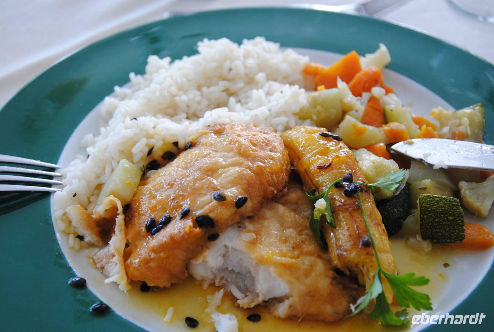 Die Lavada-Wanderung im Zeichen von Land und Leuten wurde heute durch Lina geführt. Schon im Bus erzählte sie viel über die Geschichte und Bedeutung der Levadas. Am Zielort angekommen überquerten wir die Straßen und schon ging es entlang eines solchen Kanals. Teilweise war der Weg so schmal, dass wir diesen nur im „Gänsemarsch" bewältigen konnten. Zwischendurch erzählte Lina auch etwas zu den vielen Pflanzen entlang des Weges. Ganz aus der Nähe konnte man die Bauern bei ihrer mühevollen Arbeit beobachten und sogar einen Bauern beim Ziegenhüten beobachten. Es kam uns so vor, als ob er sich mit seinen Tieren unterhielt und diese auch eine passende Antwort gaben. An jeder Ecke konnten wir einen Blick ins Tal und seinen terassenförmigen Feldern werfen. Und manchmal konnten wir auch an diesem Tag die Starts und Landungen der Maschinen sehen. Dann wieder einen Blick in den Lauf der Lavanda und plötzlich schwammen Kadaver von Ratten und Fröschen vorbei. Gott sei dank hatte uns Helena gestern auf dieses Phänomen vorbereitet. Was sie aber nicht erwähnte waren die Muscheln, die wir dort gefunden haben. Das Sammlerfieber brach sofort aus. Leider fungierten wir hier nur als Reinigungstrupp, da diese Muscheln normaler Weise nur am Vulkangestein wächst. Hier müssen wohl die Wanderer bei einer Rast ein köstliches Mal gehabt haben und die Schalen in den Levada geworfen haben. Am Ende der Strecke konnten alle eine Rast am Cafe vertragen. Zur Belohnung gab es Eukalyptusbonbon. Begonnen haben wir die Tour bei Kilometer 12 und diese endete nach ca. 2 1/2 Stunden bei Kilometer 8,5. Jetzt nur noch einen steilen Berg hinunter und schon waren wir am Bus, der uns zurück zum Hotel brachte. Die Rückfahrt ging über den Hafen von Funchal, wo einige Gäste den Nachmittag verbringen wollten oder eine Fahrt mit der Seilbahn nach Monte machten. Der größte Teil der Gruppe fuhr aber bis zum Hotel und genoss die Annehmlichkeiten dieses Hauses. Nach einem guten Abendessen trafen sich alle noch einmal an der Hotelbar und man gönnte sich einen der vielen zur Auswahl stehenden Cocktails. Es war sehr einfach, einen Grund für das Treffen zu finden. Wir stellten diesen Abend unter das Motto „Der Koffer ist da" und alle freuten sich zusammen mit dem betroffenen Reisegast, der endlich nach 2 Tagen seinen Koffer wieder hatte.