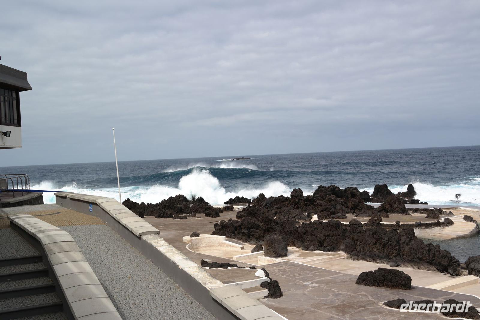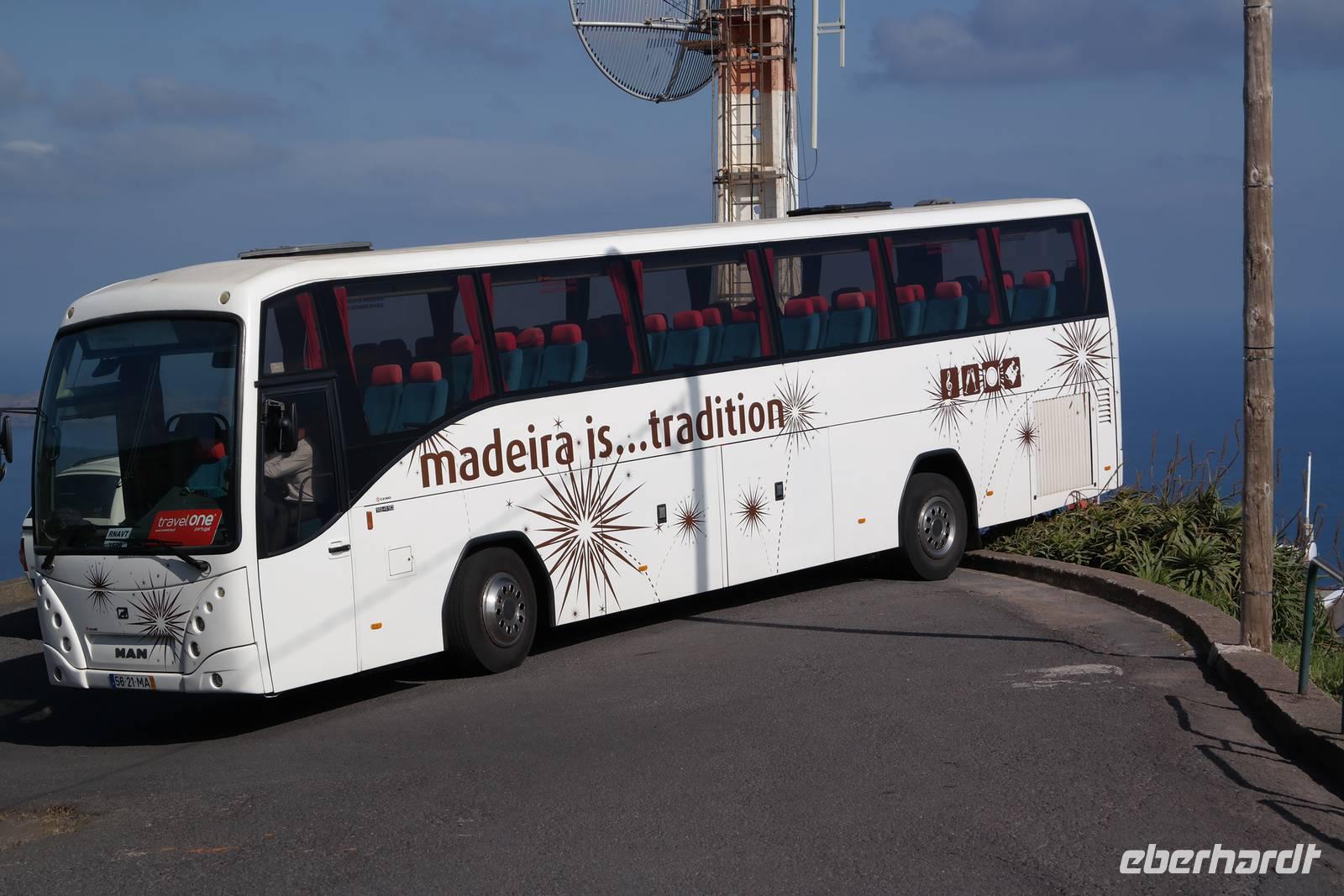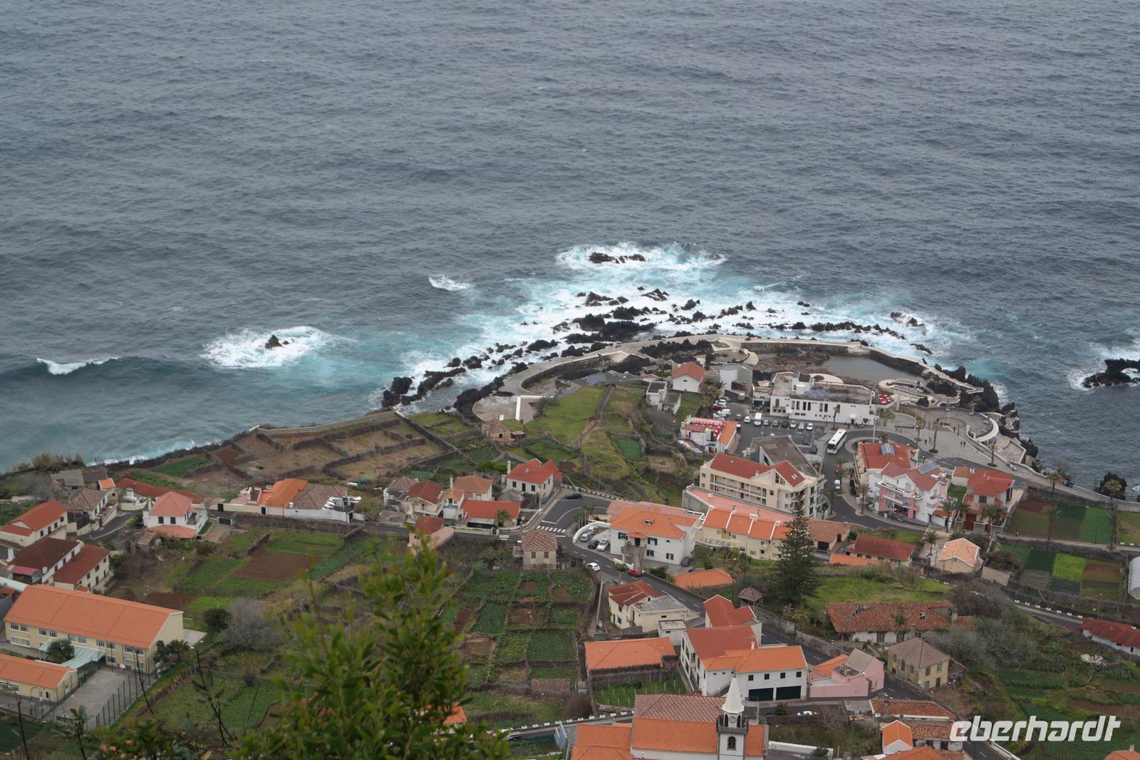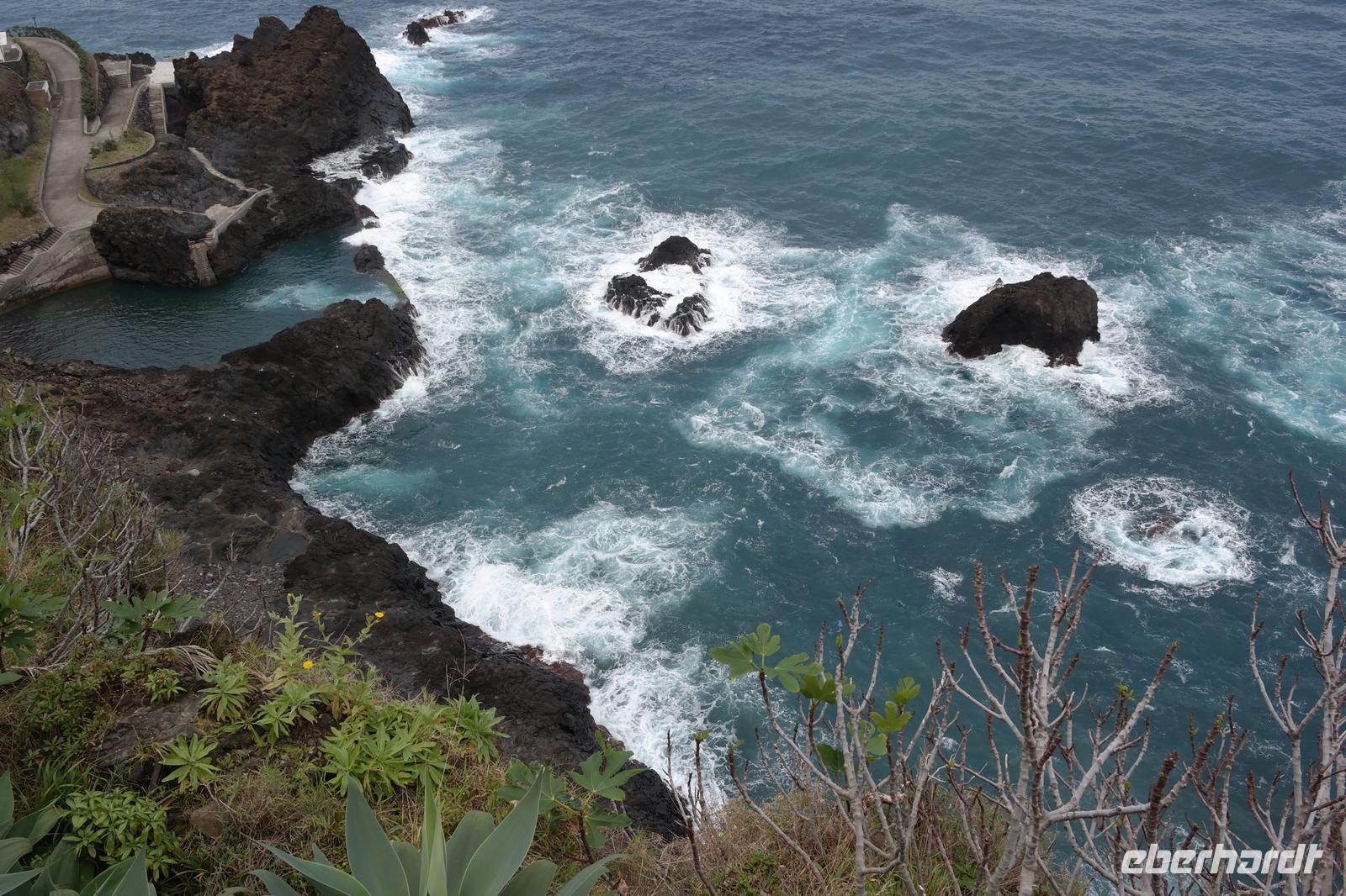 Auf dem Weg nach Ribeira Brava (die Kirche des Ortes liegt einen halben Meter unter dem Meeresspiegel) erzählt uns Fernanda noch einmal von der Kunst des Garten- und Straßenbaus auf Madeira, die wir inzwischen ausgiebig bewundern konnten. Über 100 km Tunnel und artemberaubende Brücken haben das Straßennetz auf Madeira modernisiert - aber die Einheimischen scheinen die alten Straßen zu lieben und so verlassen wir den kleinen Ort Ribeira Brava um auf direktem Wege zur Hochebene Paúl da Serra auf rund 1.400 m Höhe zu gelangen. Bei uns festigt sich der Eindruck: Straßen unter 14 % Steigung verdienen auf Madeira selten ein Hinweisschild, interessant wir es ab etwa 17 %. Zu unserer Verwunderung verläuft die Straße von der Hochebene zur Nordwestspitze ziemlich gerade. Dafür geht es in wenigen Serpentinen dann hinab in das pittoreske Porto Moniz. Heftige Brandung schlägt gegen Klippen und Küste, im vulkanischen Gestein haben sich natürliche Meereswasserbecken gebildet, bei manchen hat der Mensch etwas nachgeholfen und gleich ein Schwimmbad oder Hotel drum herum errichtet. Auf dem Weg nach Sao Vicente machen wir kleine Fotostopps am "Fensterfelsen" und "Brautschleier" - und von dort geht es wieder hinauf zum Encumeada-Pass auf 1.007 m Höhe. Wir blicken von hier zur Südküste und zur Nordküste der Insel - machen unser Erinnerungsfoto und fahren über Funchal wieder zurück nach Canico de Baixo. In die Koffer, die nun wieder zu packen sind, gehören für uns nun auch viele schöne Erlebnisse, tolle Panoramen und atemberaubende Fotomotive.