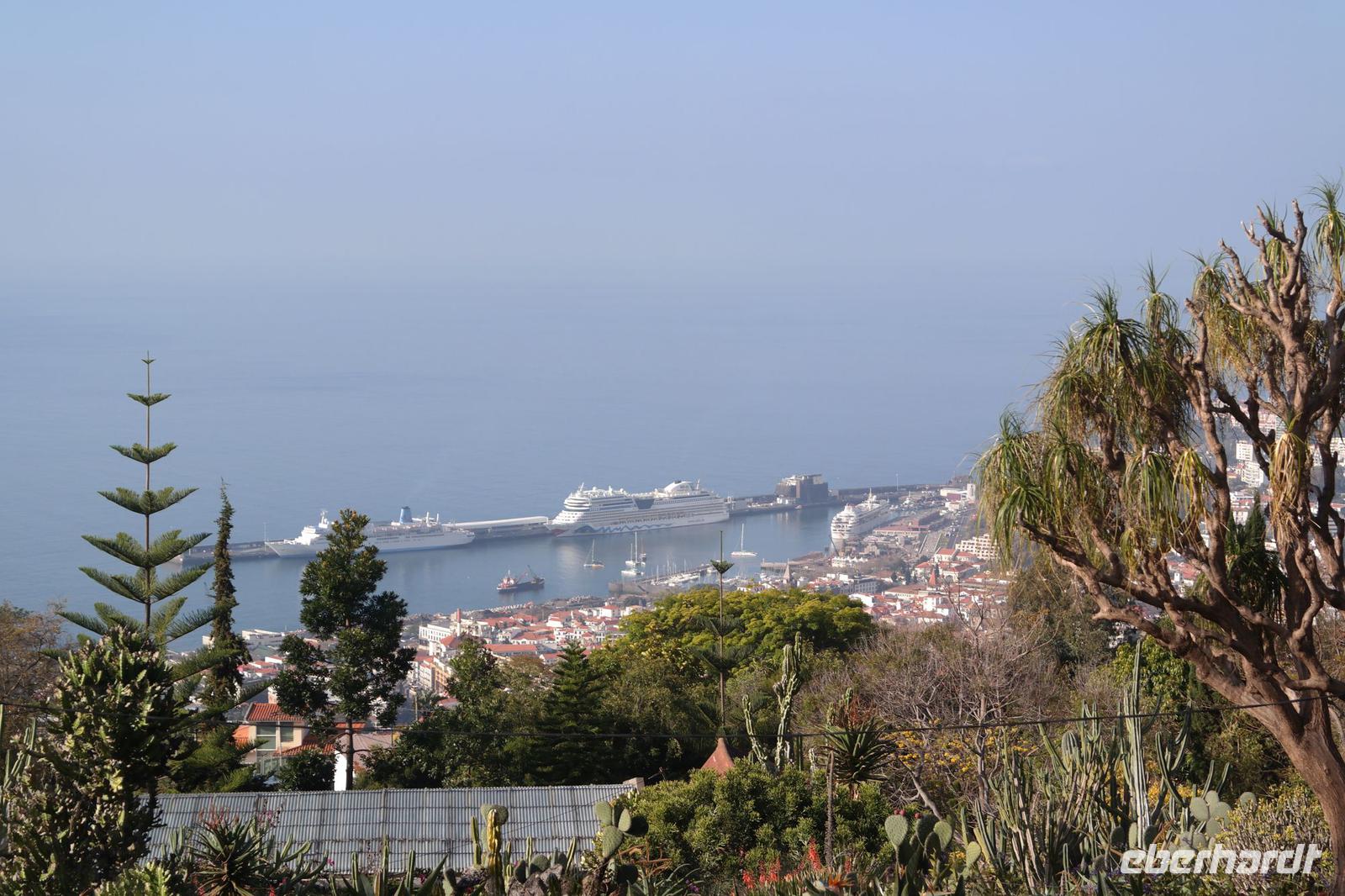 Schon am frühen Morgen starten wir mit einer Boeing 757 vom Flughafen Leipzig und erblicken nach ca. viereinhalb Stunden Flug die kleine Insel im Atlantik. Noch eine 180-Grad-Kurve und unser Pilot setzt die Maschine sicher auf der nur 2777 m kurzen Landebahn auf, die z.T. auf Beton-Stelzen ins Meer und aus der Bucht von Santa Cruz hinaus ragt. Ein kurzer Bustransfer nach Canico de Baixo und schon werden wir von unserer Reiseleiterin Fernanda im Hotel begrüßt. Bei einem Madeira-Wein stellt sie das Programm der nächsten Tage vor und wir unsere Uhren um eine Stunde zurück. Unser Hotel "Four Views Oasis" liegt direkt am Meer, die gepflegte Uferpromenade, das Rauschen des Atlantik und exotische Pflanzen lassen schnell Urlaubsstimmung aufkommen.