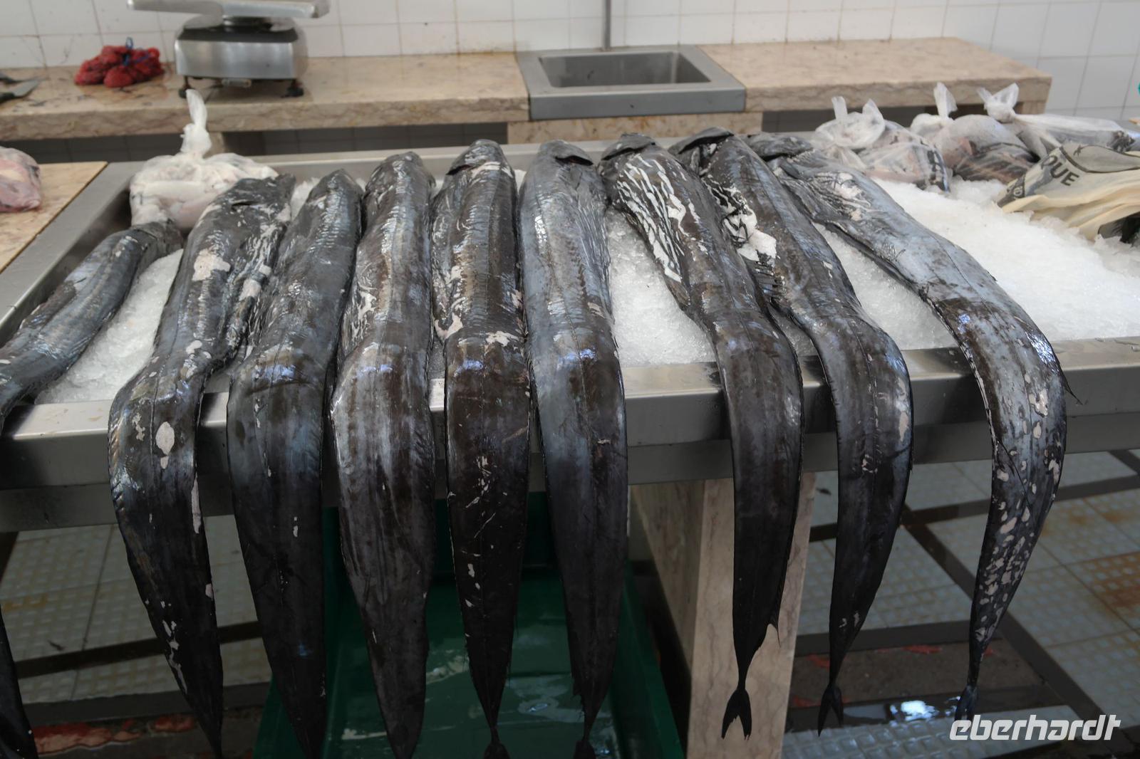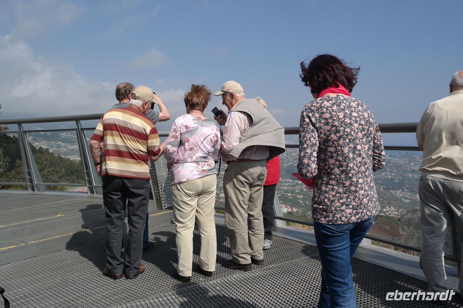Rund 500 m über der Stadt Funchal wartet der Botanische Garten mit über 2000 exotischen Blumen und Pflanzen auf seine Besucher. Mit herrlichem Panoramablick hinunter zur Stadt und auf den Atlantik ist dies ein besonderes Vergnügen. Wieder unten in der Hauptstadt schlendert Fernanda mit uns durch die engen Gassen der Altstadt bevor sie uns in den Markt von Funchal mit seiner Farbenpracht und dem geschäftigen Treiben eintauchen lässt. Hier sehen wir auch zum ersten Mal den "Espada", schauen den Fischhändlern bei ihrer Arbeit zu und sind überwältigt von der Fülle und Farbenpracht der angebotenen frischen und getrockneten Früchte, des Gemüses, der Blumen und allem, was es hier sonst noch gibt. Zur Mittagszeit haben wir im Hafen von Funchal vor der Kulisse der großen Kreuzfahrtschiffe und unzähliger kleiner Boote und Katamarane bei bestem Sonnenschein eine kleine Erholungspause. In Camara de Lobos, dem wohl berühmtesten Fischerort (Sir Winston Churchill fand hier Inspirationen zum Malen) legen wir einen kleinen Fotostopp ein bevor wir hinauf zum Gabo Girao fahren. Von einer der höchsten Steilklippen Europas blicken wir fast 590 m senkrecht hinunter auf den handtuchbreiten Strand - atemberaubend, auch wenn die Aussichtsplattform durch Plexiverglasung bereits "entschärft" wurde. Kurz danach sind wir zu Gast auf einem privaten Weingut und erfahren "kleine" Geheimnisse rund um den Madeira-Wein, den wir auch verkosten und dazu ein kleines Stück vom typischen Madeira-Lebkuchen (mit Honig und Nüssen) genießen. Wegen des hohen Alkoholgehaltes und der besonderen Herstellung ist dieser Wein sehr lange haltbar und auch angebrochene Flaschen noch über ein Jahr zu genießen ( ob das in Wirklichkeit vorkommt ? schmeckt doch viel zu lecker...) Beeindruckt von dem Erlebten sind wir am späten Nachmittag zurück im Hotel. Einige machen sich noch einmal auf und probieren im Restaurant "Varrandas Mar Lojas" eine weitere Fischspezialität: den Red Snapper, der zu den Raub-Barschen gehört. Frisch gegrillt wird er im Ganzen gereicht - für Freunde feiner Filets eine kleine Herausforderung. Trotzdem schmeckt er prima. Auch hier dürfen wir dem Kellner beim kleinen "Ein-mal-Eins" helfen und die Rechnung auf 12 Gäste "aufteilen".