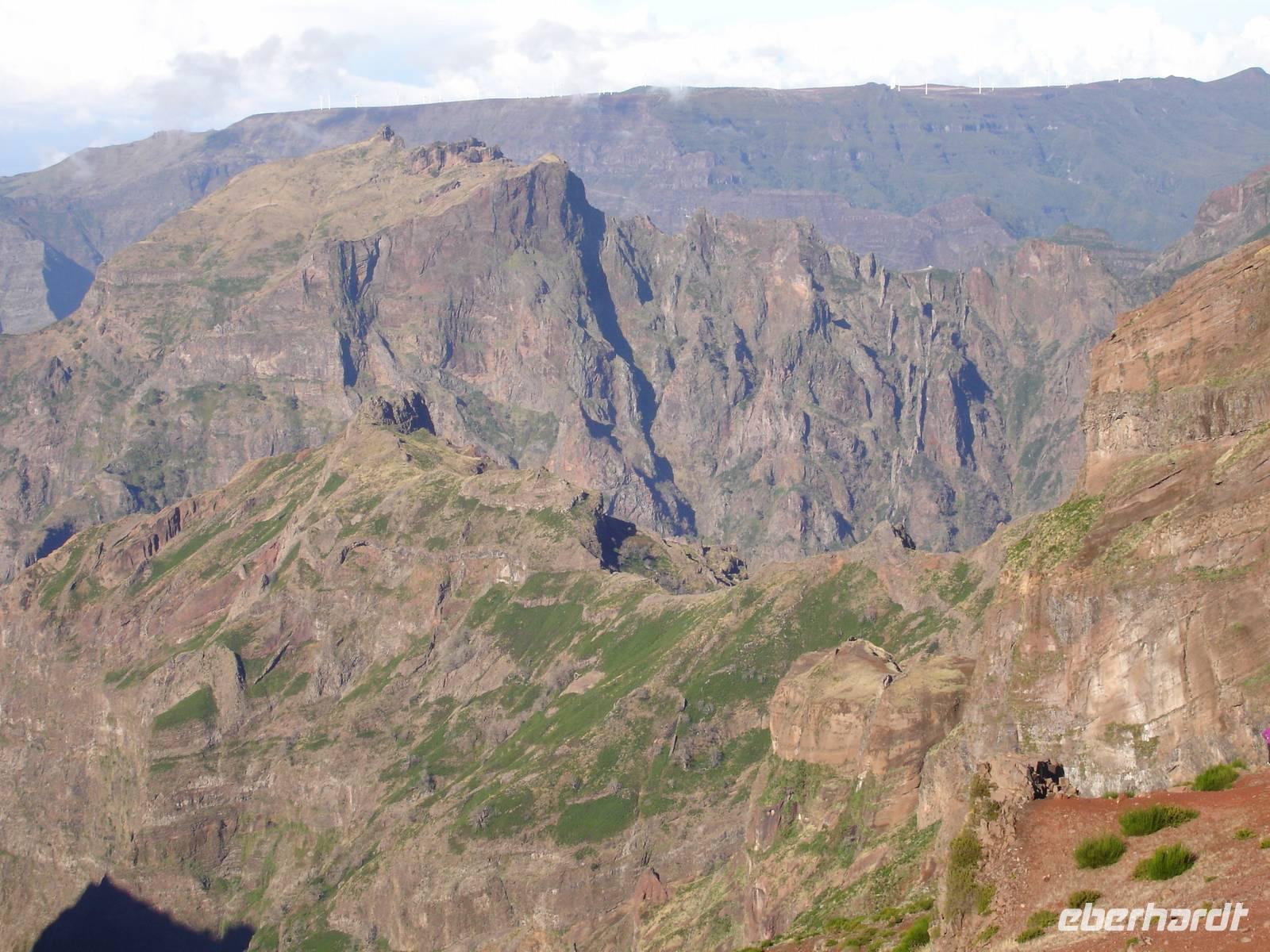 Bei herrlichem Sonnenschein fuhren wir weiter zum Gipfel des dritthöchsten Berges auf Madeira - dem Pico de Areiro auf 1818 Meter Höhe. Von hier bot sich uns eine phantastische Sicht auf das Nonnental und den östlichsten Zipfel der Insel. Weiter ging es in das Naturschutzgebiet "Ribeiro Frio"(kalter Bach), wo wir als Generalprobe für unsere morgige Levada-Wanderung mit der Mini-Levada-Wanderung zum Aussichtspunkt "Balcoes" eine Trainingseinheit absolvierten. Dafür wurden wir wieder mit tollen Aussichten u.a. auf den höchsten Berg Madeiras - dem Pico Ruvio(1862 Meter hoch) belohnt.