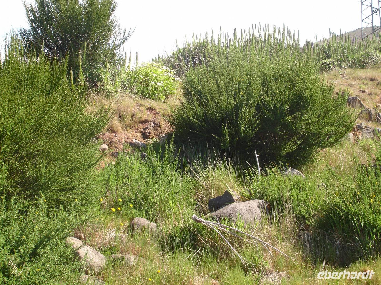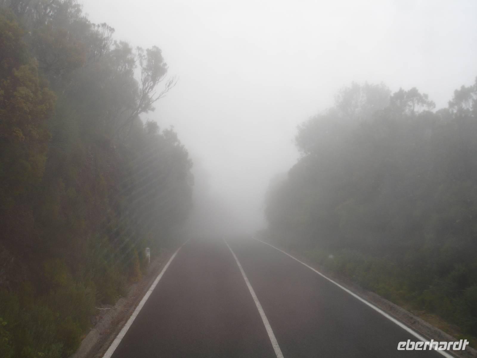 Entlang der süd-westlichen Küste vorbei an Ponta do Sol, einen "Wasserfall" auf der alten Küstenstraße durchfahrend, ging es zur Hochebene "Paula da Serra" auf 1600 Meter. Überraschend gab es keine Serpentinen, sondern es ging fast gerade bergauf, so dass in Kurzer Zeit die Höhe erreichten. Genau so überraschend empfing uns auf der Hochebene die Sonne, meistens ist die Hochebene nur im Nebel zu erahnen . Ja, so ist das, wenn Engel reisen...