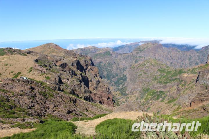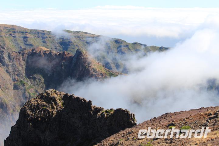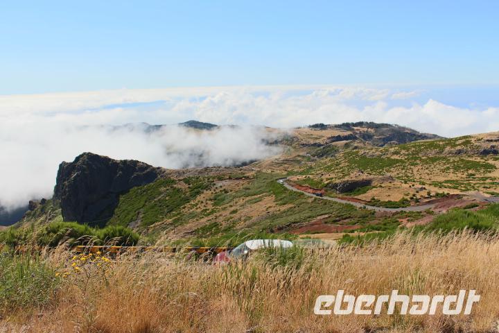 Schließlich fuhren wir weiter bis auf den mit 1818 Metern dritthöchsten Punkt der Insel, den Pico do Arieiro. Hier standen wir nun über den Wolken und genossen die traumhafte Aussicht bei bestem Wetter.