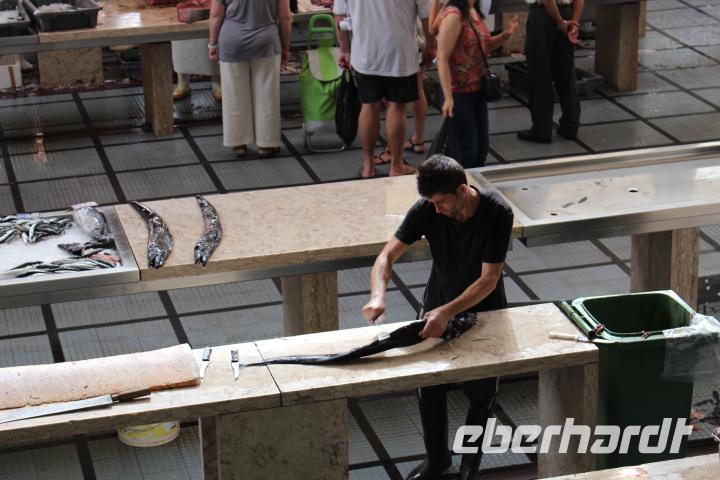 Schließlich fuhren wir ins Stadtzentrum, wo wir uns zunächst die Markthalle anschauten. Wir schlenderten entlang der verschiedenen Stände, wo Fisch, Obst, Blumen und verschiedene Souvenirs angeboten wurden und bekamen immer wieder die Gelegenheit, Maracujas in den verschiedensten Sorten zu verkosten.