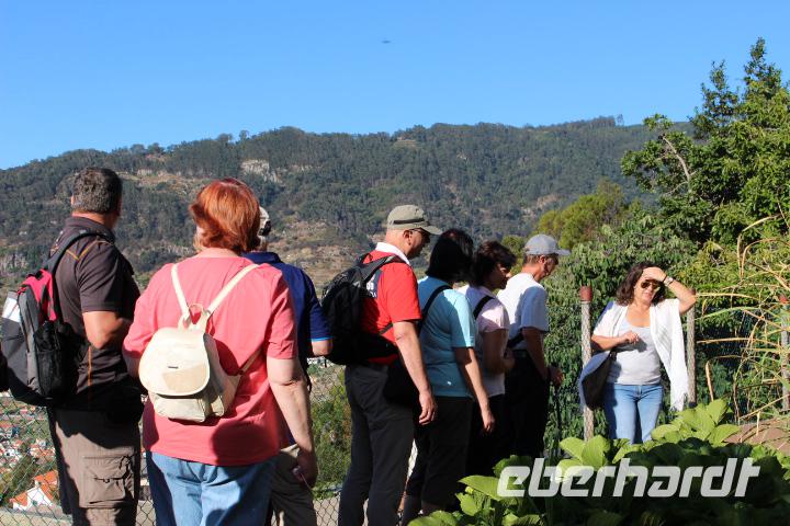 Nun fuhren wir zu einem hübschen Aussichtspunkt, von welchem wir einen fantastischen Blick über die Stadt Funchal genießen konnten, bevor wir weiter ins Landesinnere fuhren. Hier kamen wir einige Zeit später am Nonnental an. Vom Aussichtspunkt „Eira do Serrado", welcher sich 1.050 Meter über dem Meeresspiegel befindet, konnten wir bei wunderbarstem Wetter den fantastischen Blick auf das Nonnental genießen. Wir bestaunten die engen, gewundenen Straßen und die hohen Berge, die das Tal umgeben. Mit vielen Fotos im Gepäck ging es schließlich wieder zurück in Küstennähe und wir besuchten die „Kräuterhexe" Esmeralda in ihrem gemütlichen Kräutergarten. Zunächst wurden wir mit selbst gebackenem Nusskuchen sowie frischem Tee aus Ingwer und Zitronengras empfangen. Dazu probierten wir frisches Brot mit selbst gemachtem Apfel-Chili-Gelee. Schließlich führte uns Esmeralda durch ihren Garten und erklärte uns die Geheimnisse der verschiedenen Kräuter, die als Heilmittel verwendet werden.