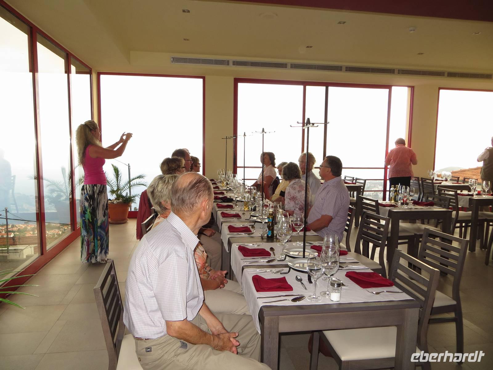 Gut erholt trafen wir uns am Abend wieder, um zum Abendessen in die Inselhauptstadt zu fahren. Über den Dächern Funchals genossen wir in 500 m Höhe eine Spezialität Madeiras, die „Espetatas". Darunter versteht man einen Fleischspieß, meist aus Rindfleisch. Gemeinsam saßen wir lange zusammen und genossen den fantastischen Blick auf die Stadt, welche sich uns bald auch beleuchtet zeigte. Von der Terrasse des Restaurants konnten wir wunderbare Fotos machen. Als wir das Lokal verließen, sahen wir den gerade am Nachthimmel erscheinenden Vollmond. Nun fuhren wir zum Hotel zurück, wo wir den Abend individuell ausklingen ließen.
