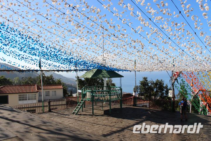 Nach einem wundervollen Sonnenaufgang und einem reichhaltigen Frühstück trafen wir uns mit unserer Reiseleiterin Teresa und unserem Busfahrer pünktlich um 9.00 Uhr am Hotel. Gemeinsam fuhren wir zunächst nach Camacha, wo wir eine kleine Korbflechterei besuchen konnten. Hier wurden verschiedenste Körbe und sogar Tiere hergestellt und im Untergeschoss konnten wir sogar ein paar Handwerker bei der Arbeit beobachten. Im Anschluss schauten wir uns eine moderne, aber sehr hübsche Kirche im Ort an.