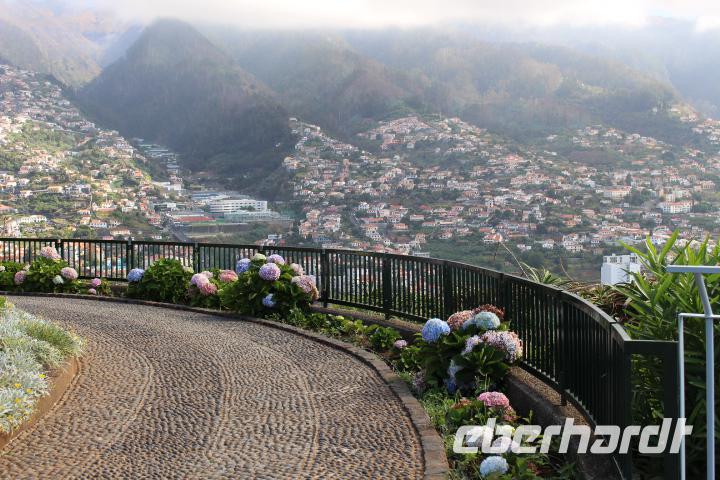 Heute trafen wir uns nach einem reichhaltigen Frühstück wieder um 9.00 Uhr, um gemeinsam die Gärten Madeiras zu erkunden. Dazu führte uns unsere Reise wieder in die Stadt Funchal. Am Stadtrand befindet sich die „Quinta do Palheiro", das Anwesen der englischen Familie Blandy. Dieses wollten wir uns zuerst anschauen. Im Garten, welcher von vielen Besuchern liebevoll als „Garten Eden" bezeichnet wird, zeigten sich uns einige seltene und exotische Pflanzenarten. Besonders berühmt ist der Garten für seine Kameliensammlung, welche wir aufgrund der Jahreszeit leider nicht zu Gesicht bekamen, da diese nur von November bis April blühen. Wir genossen die Zeit in dem schönen und sehr gepflegten Anwesen, bevor wir uns wieder zum Bus begaben.