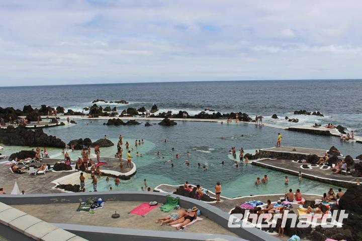 Wenig später hatten wir die wilde Steilküste im Norden der Insel erreicht und gelangten über Ribeira da Jonela nach Porto Moniz. Nachdem wir hier in einem hübschen Lokal zu Mittag gegessen hatten, konnten wir uns die natürlichen Meeresschwimmbecken im lavagestein anschauen, in welchen auch viele zum Schwimmen waren.