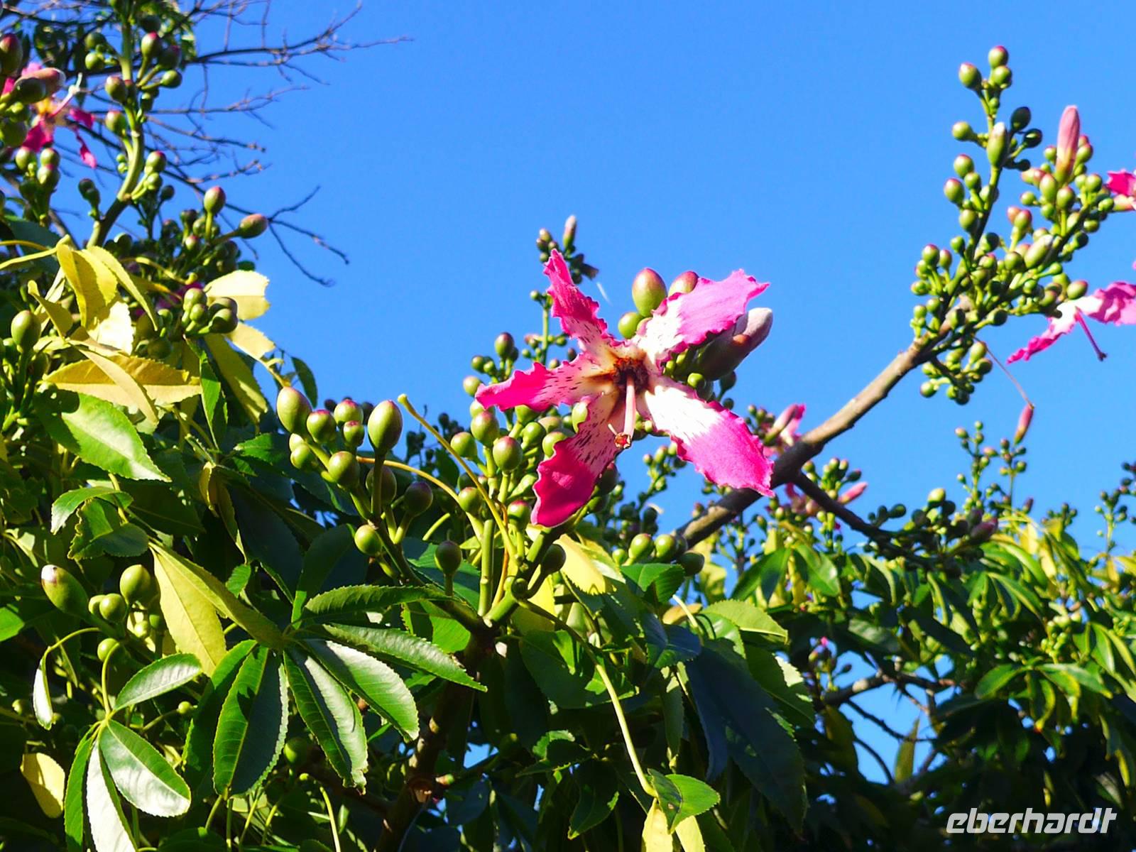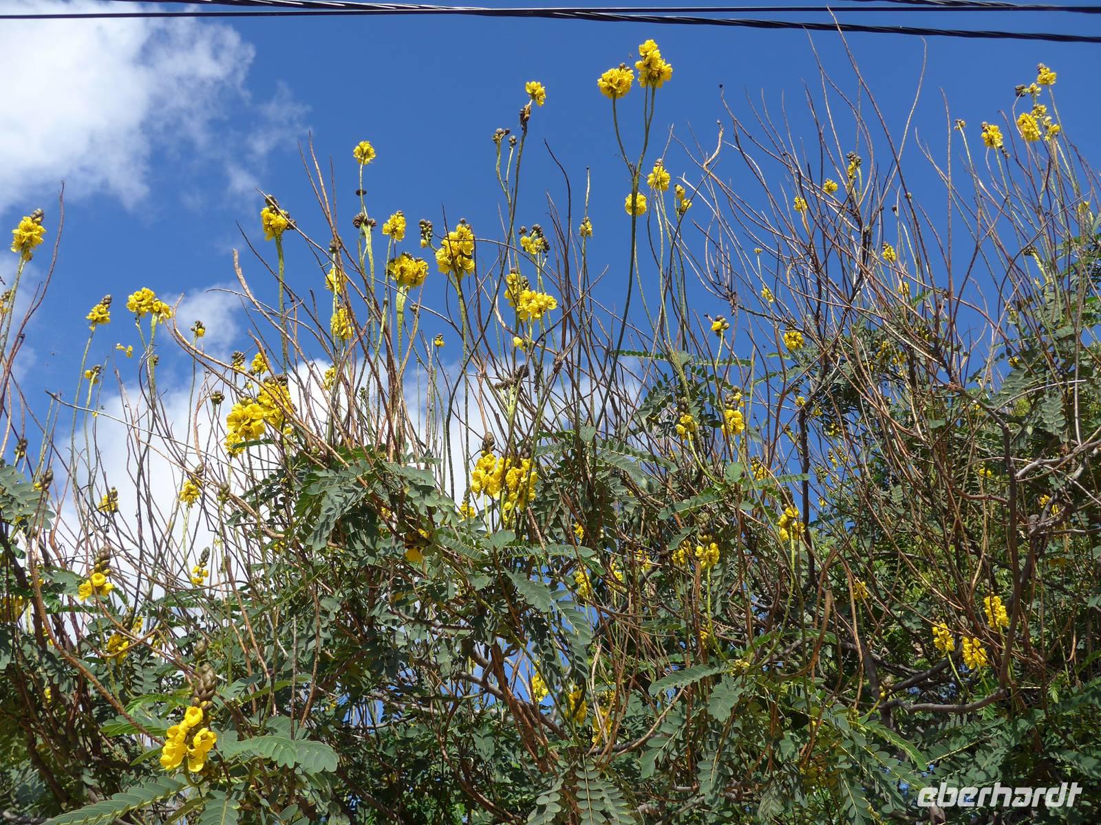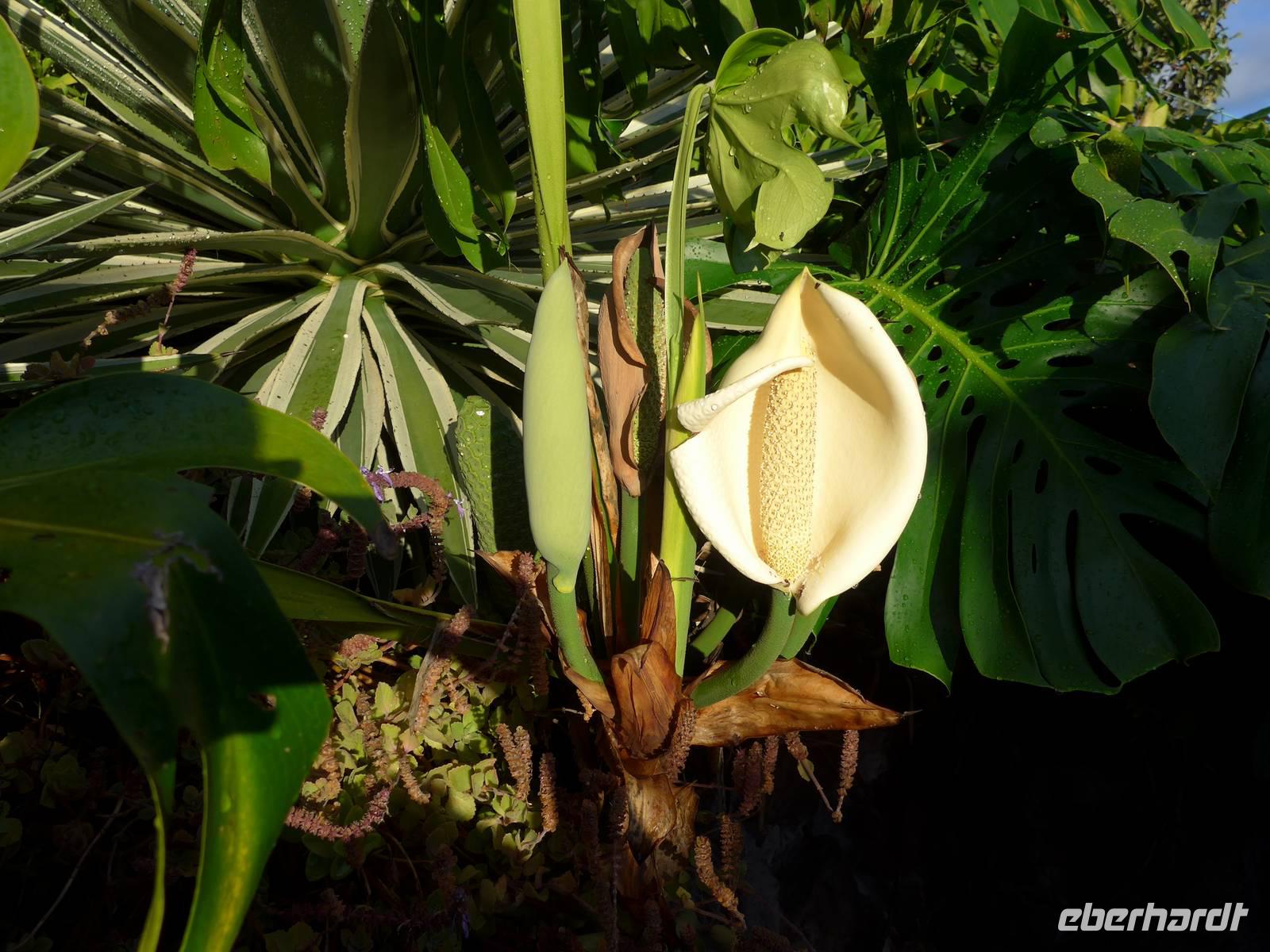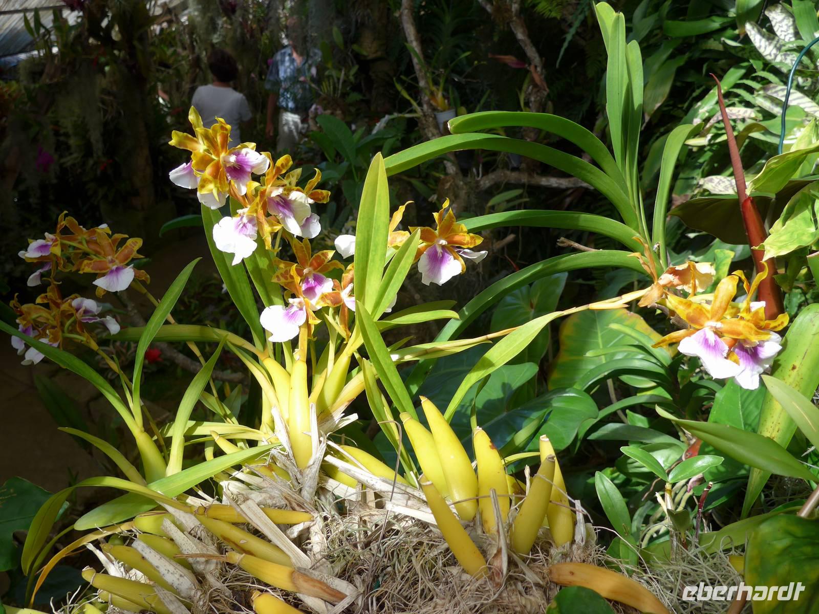 In unserer ersten Nacht auf Madeira bekommen wir ausreichend Schlaf und nach einem reichhaltigen Frühstück starten wir zur ersten Etappe unserer spannenden Reise. Wir werden von Helena und unserem Busfahrer Roberto abgeholt, um zum Zentrum der Korbflechtkunst nach Camacha zu fahren und die Korbflechter bei ihrer Arbeit zu bestaunen. Helena und Roberto werden uns auf unserer abenteuerlichen Reise begleiten und uns ihre wunderschöne Blumeninsel zeigen. Helena spricht sehr gut Deutsch und wir freuen uns schon, dass sie uns die kommenden Tage von Madeira verzaubern wird. Camacha ist ebenfalls eine Gemeinde von Santa Cruz und sie liegt rund 700 Meter hoch an der Verbindungsstraße der Hauptstadt Funchal mit Santo António da Serra. Nach unserem Besuch in der Korbflechterei und einen Blick in die moderne 2003 erbaute katholische Kirche folgt auch schon der nächste Programmpunkt, nämlich der Pico do Arieiro. Während der Fahrt erläutert uns Helena unter anderem den Fischfang des für Madeira bekannten schwarzen Degenfisches und sie zeigt uns Avocado-Bäume, Anone-Bäume mit der Frucht Cherimoya (oder auch Ochsenherz, Tutti-Frutti-Frucht, Zuckerapfel oder Zimtapfel genannt), Zuckerrohr, Mango, Papaya, Kaffeebohnen oder Feigen. Außerdem nennt sie uns die fünf wichtigsten Farben orange, weiß, grün, blau und schwarz der Insel und gibt wichtige Informationen zur landestypischen Fado-Musik. Bei unserer Ankunft auf dem mit 1818 Metern drittgrößten Berg Madeiras, den Pico do Arieiro, haben wir herrlichem Sonnenschein mit sehr guter Fernsicht. Das Besondere dieses Berges ist, das er gegenüber den zwei höheren Bergen Madeiras, den Pico Ruivo mit 1861 Metern und dem Pico das Torres mit 1851 Metern über eine befahrbare Straße mit dem Bus erreichbar ist. Dann fahren wir weiter nach Ribeiro Frio. Wir erfahren von Helena, welche Bedeutung die Flagge Madeiras hat. Der gelbe Streifen in der Mitte steht für Sonnenschein, Blau für Atlantik und das rot-weiße Kreuz als Templerorden. In Ribeiro Frio wandern wir den rund 3,5 Kilometer ebenen Weg Vereda dos Balcões durch dichten Urwald und an einer Levada entlang. Levadas sind künstlich angelegte Kanäle, um Regenwasser aus dem niederschlagsreicheren Norden zu den südlichen landwirtschaftlichen Anbaugebieten zu leiten. Bei unserer tollen Wanderungen sehen wir zum Beispiel Lorbeerbäume, Farne, Usnea barbata (Bartflechte), Douglasien, Koniferen, Thuja (Lebensbäume), Girlandenblume (auch als Falscher Ingwer bezeichnet) oder Yucca Palme. Rund eine Stunde später sitzen wir alle zusammen und genießen unseren ersten leckeren "Poncha" auf Madeira Poncha setzt sich zu je einem Drittel aus dem Zuckerrohrschnaps "Aguardente de cana", Honig und Zitronensaft zusammen. Natürlich gibt es auch vom Poncha verschiedene Varianten, klassisch mit Zitrone oder andererseits auch mit Maracuja oder Orange. Die nächste Etappe des Tages ist der wunderschöne Ort Santana mit seinen für Madeira bekannten mit Weizenstroh bedeckten Bauernhäuschen. Der Name Santana kommt von heiliger Santa Anna, der Mutter von Maria. Dieses Örtchen ist sowohl eine Cidade (Stadt) als auch Concelho (Kreis). Hier verbringen wir unsere Mittagspause und genießen eine leckere Suppe, (schwarzer) Degenfisch, Thunfisch oder Salat. Wir besichtigen die strohbedeckten Häuschen und schauen uns auf dem kleinen Bauernmarkt mit typischen Obst und Gemüse um. Helena zeigt uns unter anderem fünf verschiedene Sorten der Passiflora (Passionsblume) und ihren persönlichen Favorit, die Passiflora edulis oder Grenadilla (Maracuja-Passionsfrucht). Die prächtigen rosa Blüten der Passiflora mollissima (Bananen-Passionsfrucht) haben wir bereits bei unserer Wanderung gesehen ? Außerdem erhalten wir Informationen zu den als Paradiesfrucht, Philodendronfrucht oder Ananasbanane bezeichneten Früchte der Monstera deliciosa (Köstliches Fensterblatt), zu Süßkartoffeln, den Bananen und ihre Ernte nach Madeira-Art und auch zur für die Insel typischen Pipinella (auch Chayote, Chuchu oder Birnengemüse genannt). Im Anschluss fahren wir nach Portela, von wo wir einen wunderbaren Blick auf den Adlerfelsen Penha de Águia haben. Wir lassen uns schöne Blumen zeigen und einige Gäste kaufen ihre ersten Blumenzwiebeln. Den heutigen Abschuss bildet ein Foto-Stopp am Pico da Facho. Hier haben wir einen tollen Blick auf die Ostspitze Madeiras. Diese schmale Landzunge bezeichnen die Inseleinwohner liebevoll auch als Wurmfortsatz oder Blinddarm. Außerdem sehen wir die Landungsbucht Machico von Madeira und wir können sogar die Landung mehrerer Flugzeuge beobachten. Früher wurde die Start- und Landebahn von den Piloten gefürchtet, da sie mit 1.800 Metern sehr kurz war und sich direkt am Hang einer Steilküste befindet, wo Scherwinde vorkommen können. Im Jahre 2000 wurde sie auf 2.777 Meter ausgebaut, so dass eine Landung vieler Flugzeugtypen in Funchal möglich ist. Gegen 18.00 Uhr erreichen wir unser großartiges Hotel und entspannen bis zum gemeinsamen Abendessen in dem nur rund fünf Gehminuten entfernten Currascaria & Restaurante "a central". Heute essen wir eine typische Landesspeise, den für die Insel bekannten Fleischspieß Espetada und auch selbstgebackenes Knoblauchbrot. Als Aperitif trinken wir ein weiteres Mal den charakteristischen Madeira-Wein und leckere gegrillte Ananas als Nachtisch. Gegen 21.30 Uhr laufen wir zum Hotel zurück und lassen die Eindrücke des Tages Revue passieren